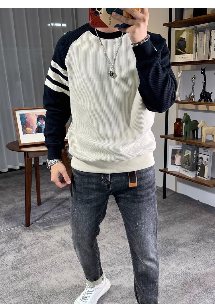 歐貨高級潮牌衛衣男秋冬季加絨加厚網紅時尚男裝圓領套頭長袖上衣