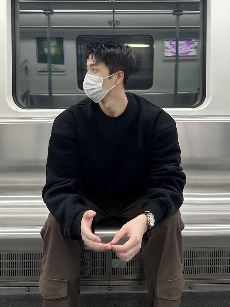 500g重磅黑色加絨衛衣男款秋冬季無帽套頭內搭打底衫美式ootd穿搭