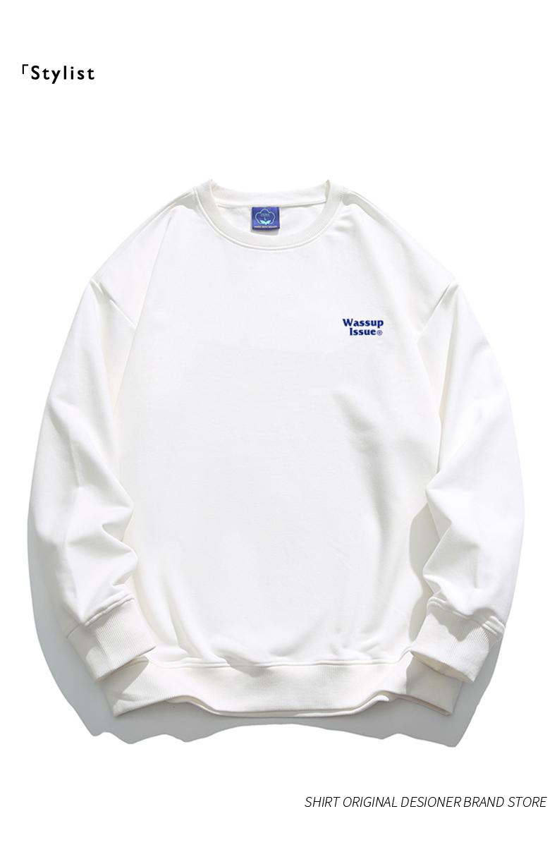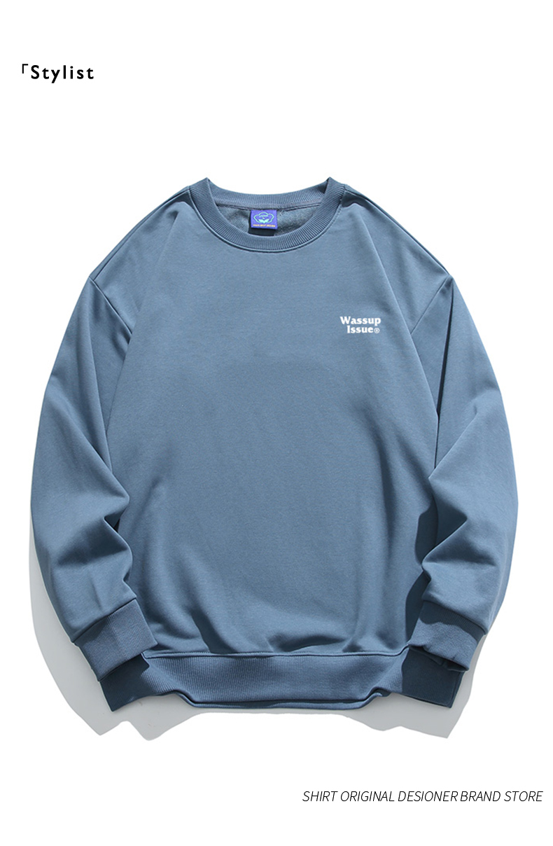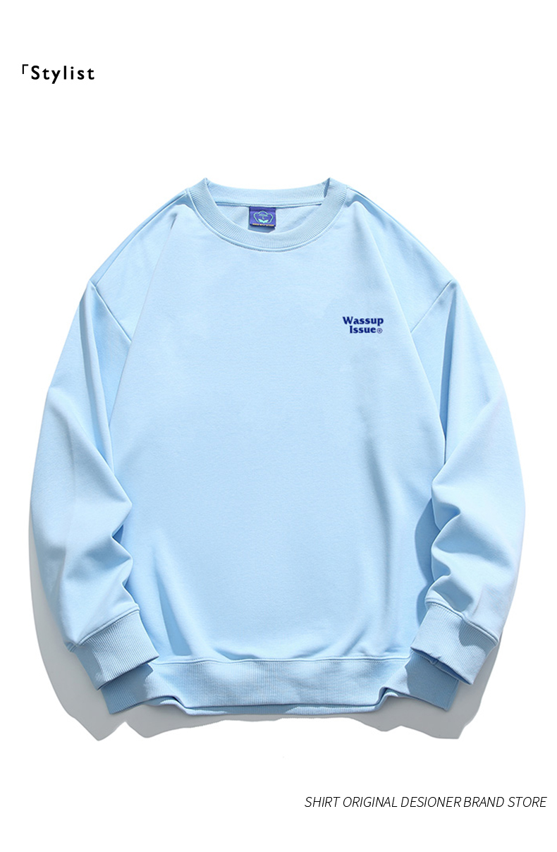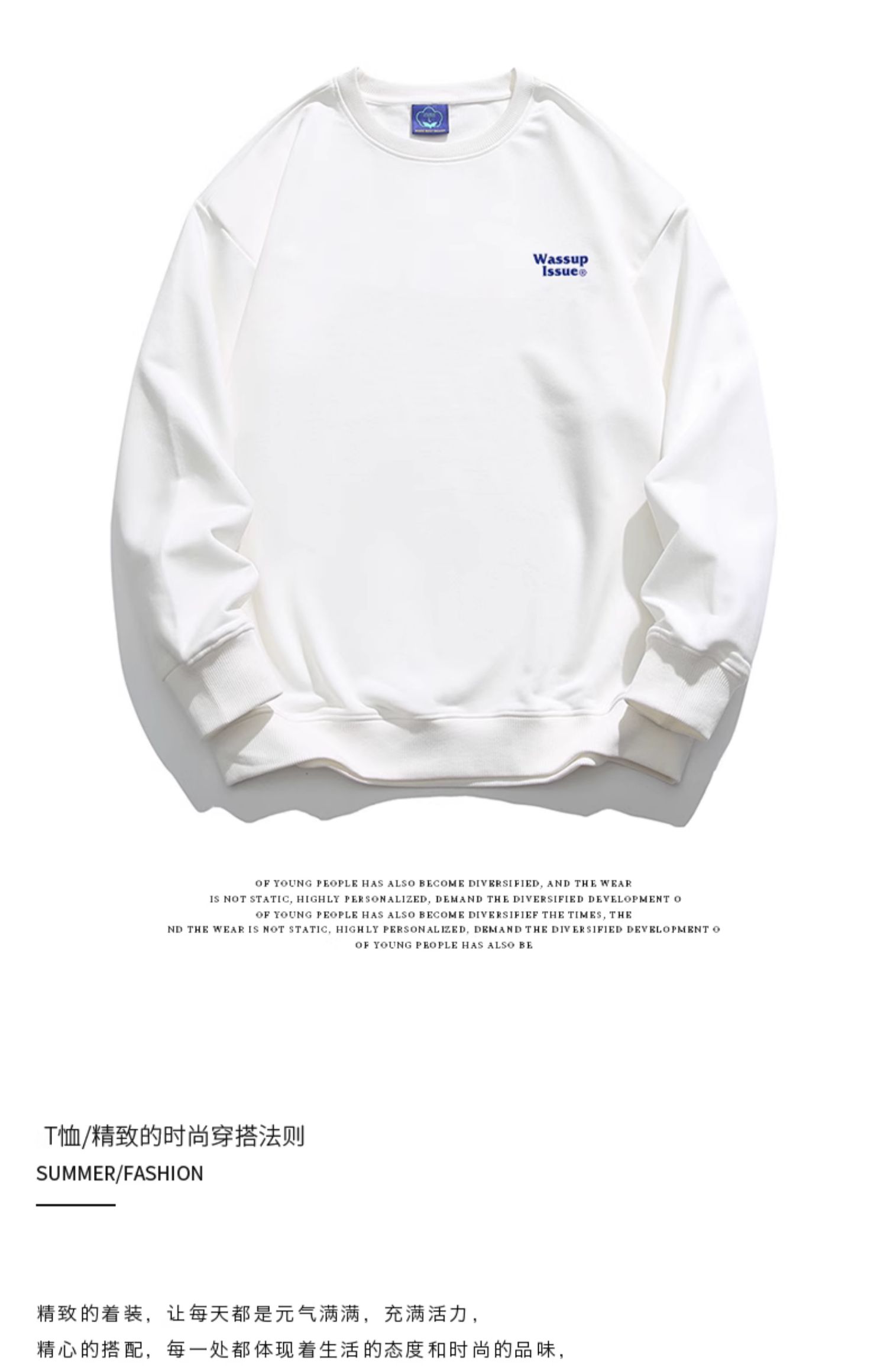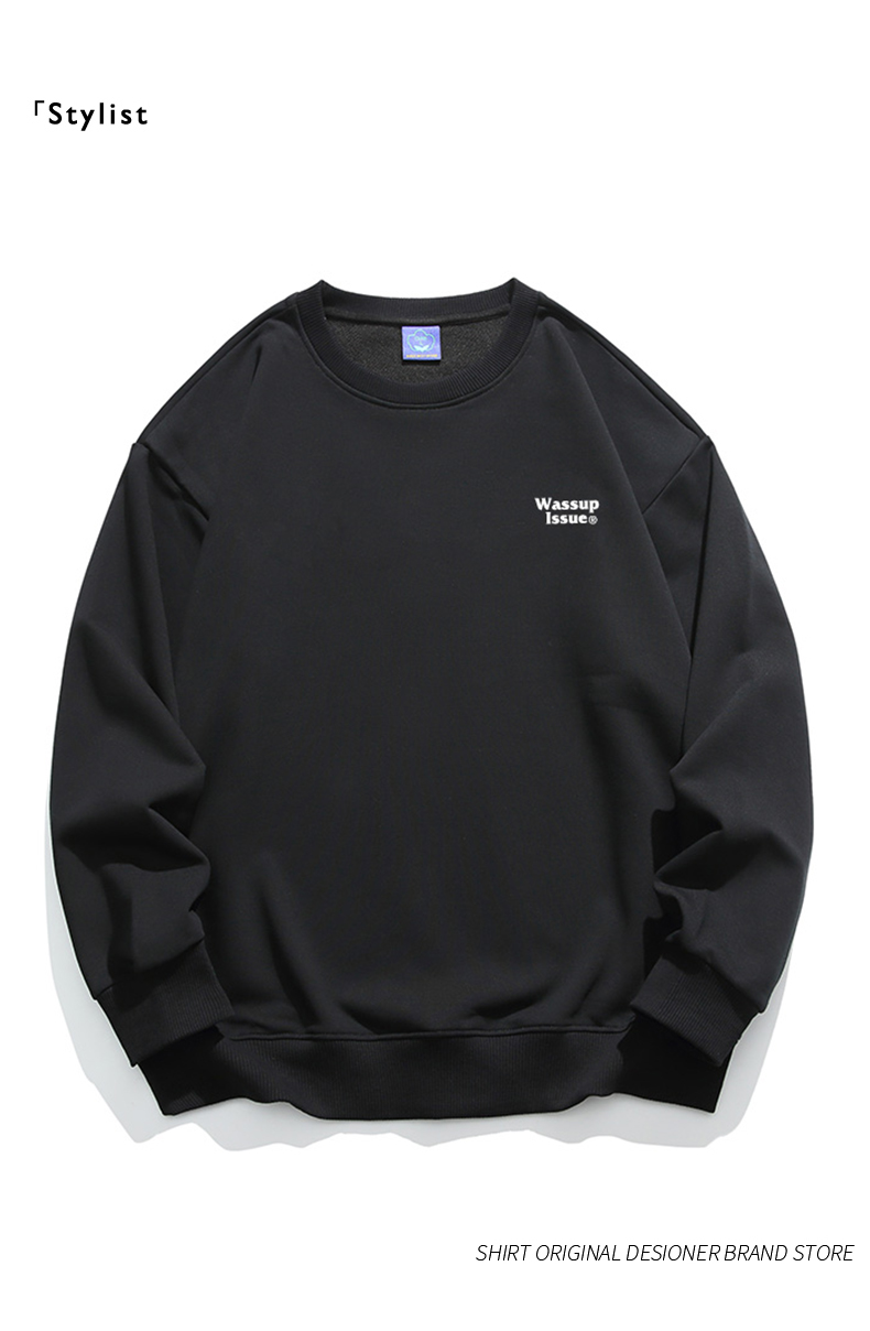 WASSUP ISSUE美式圓領衛衣男春秋季潮情侶打底衫寬松長袖t恤男款
