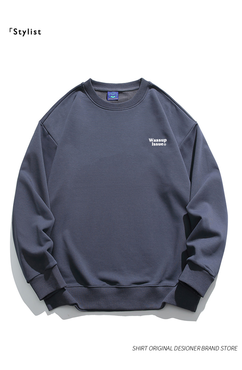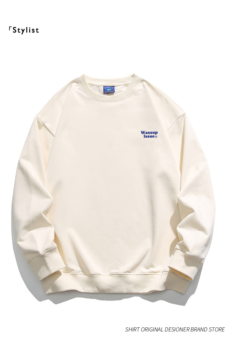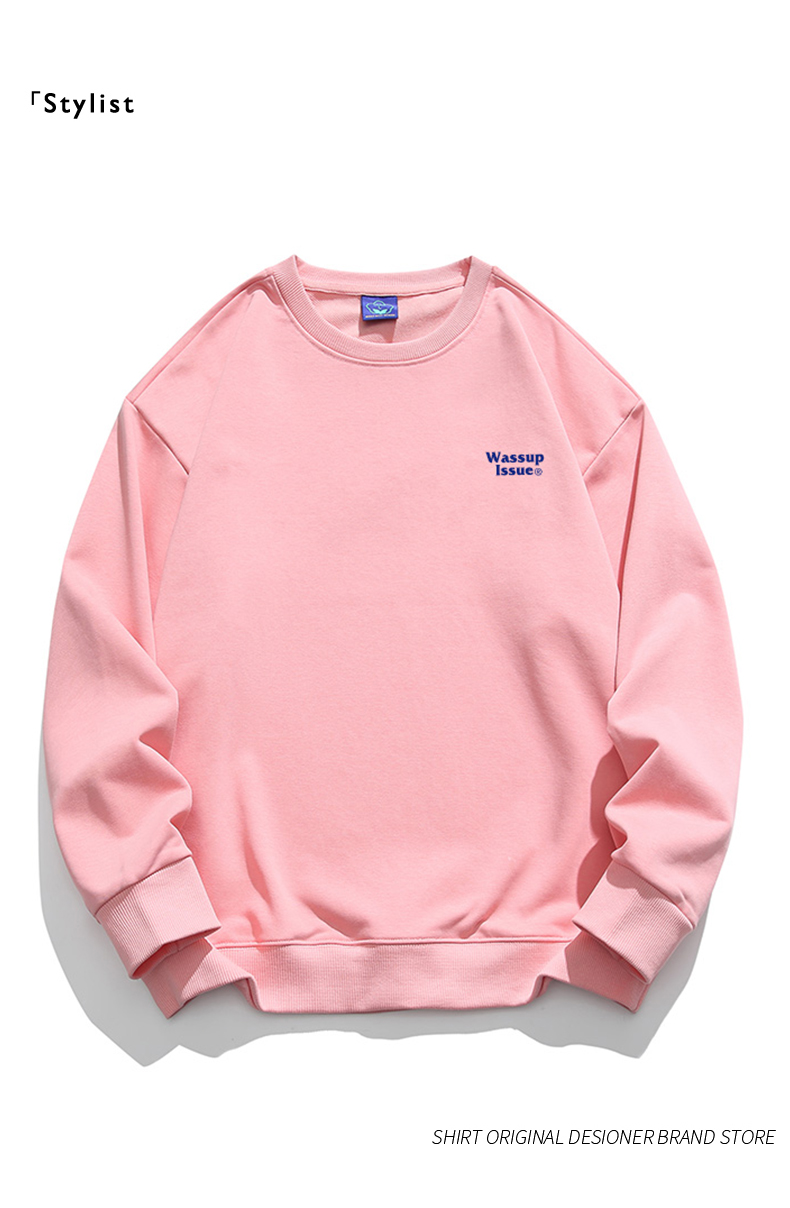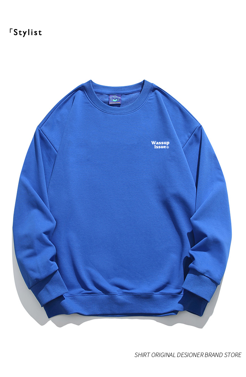 WASSUP ISSUE美式圓領衛衣男春秋季潮情侶打底衫寬松長袖t恤男款