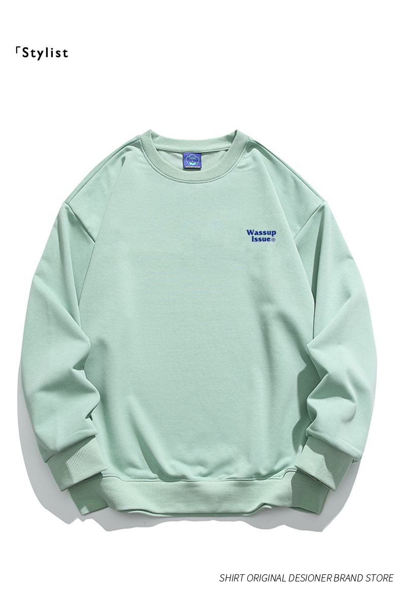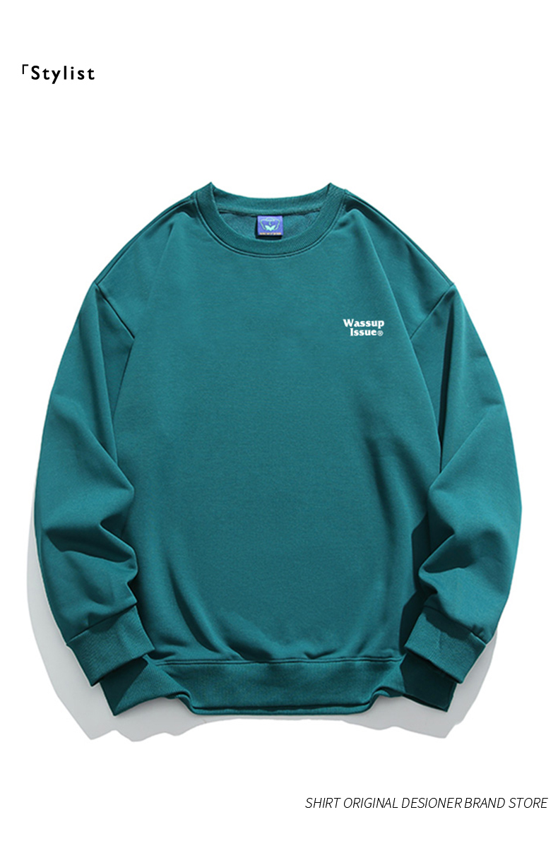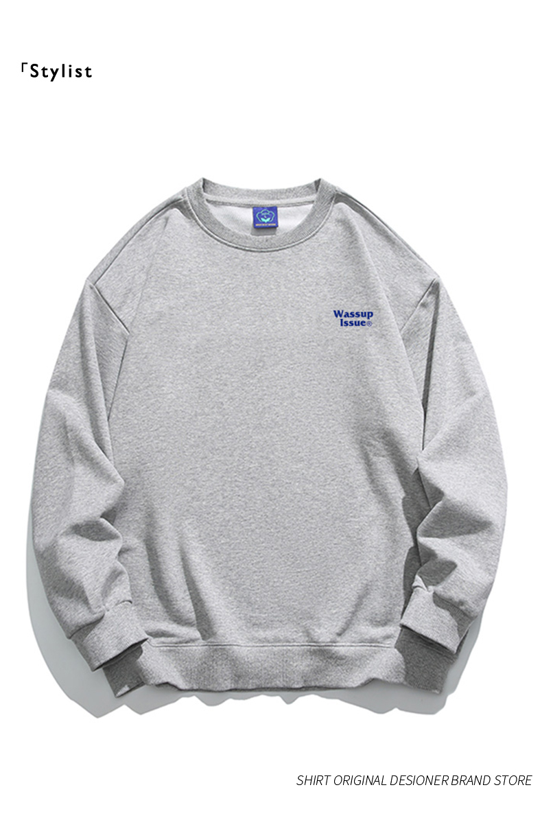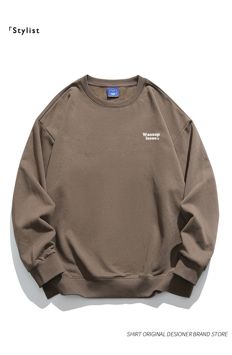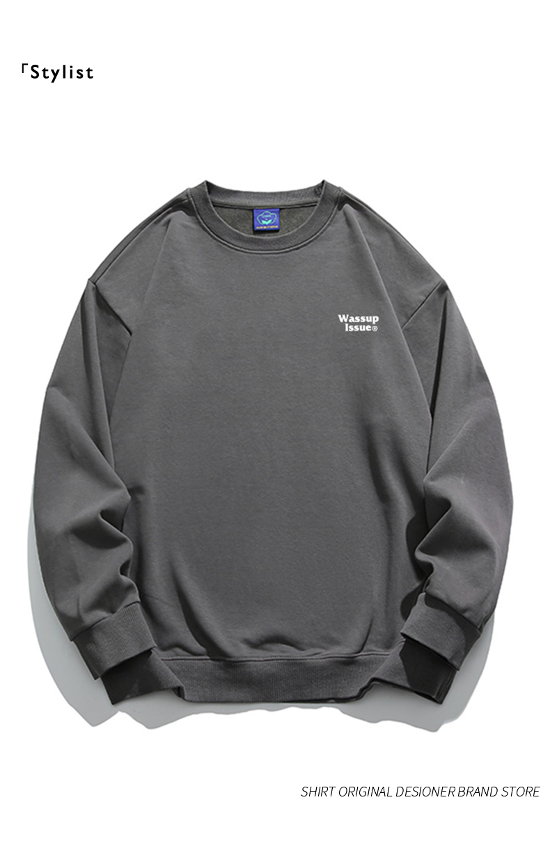 WASSUP ISSUE美式圓領衛衣男春秋季潮情侶打底衫寬松長袖t恤男款