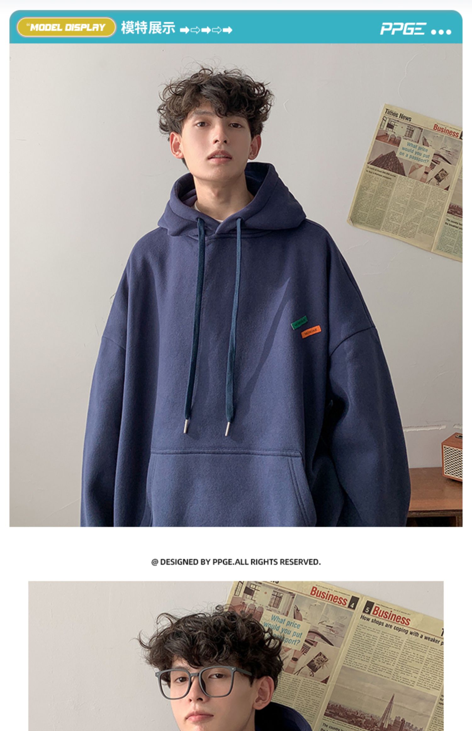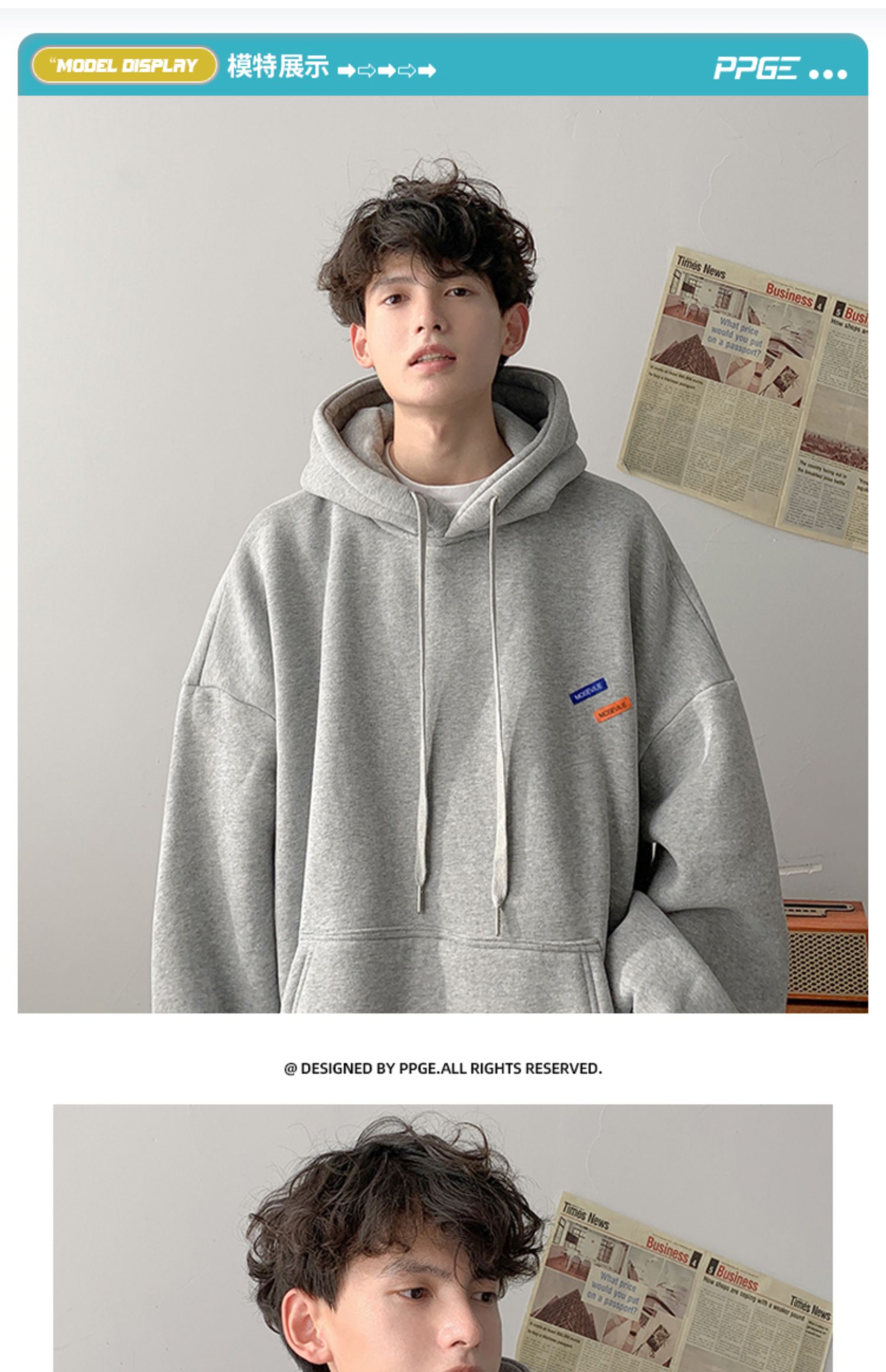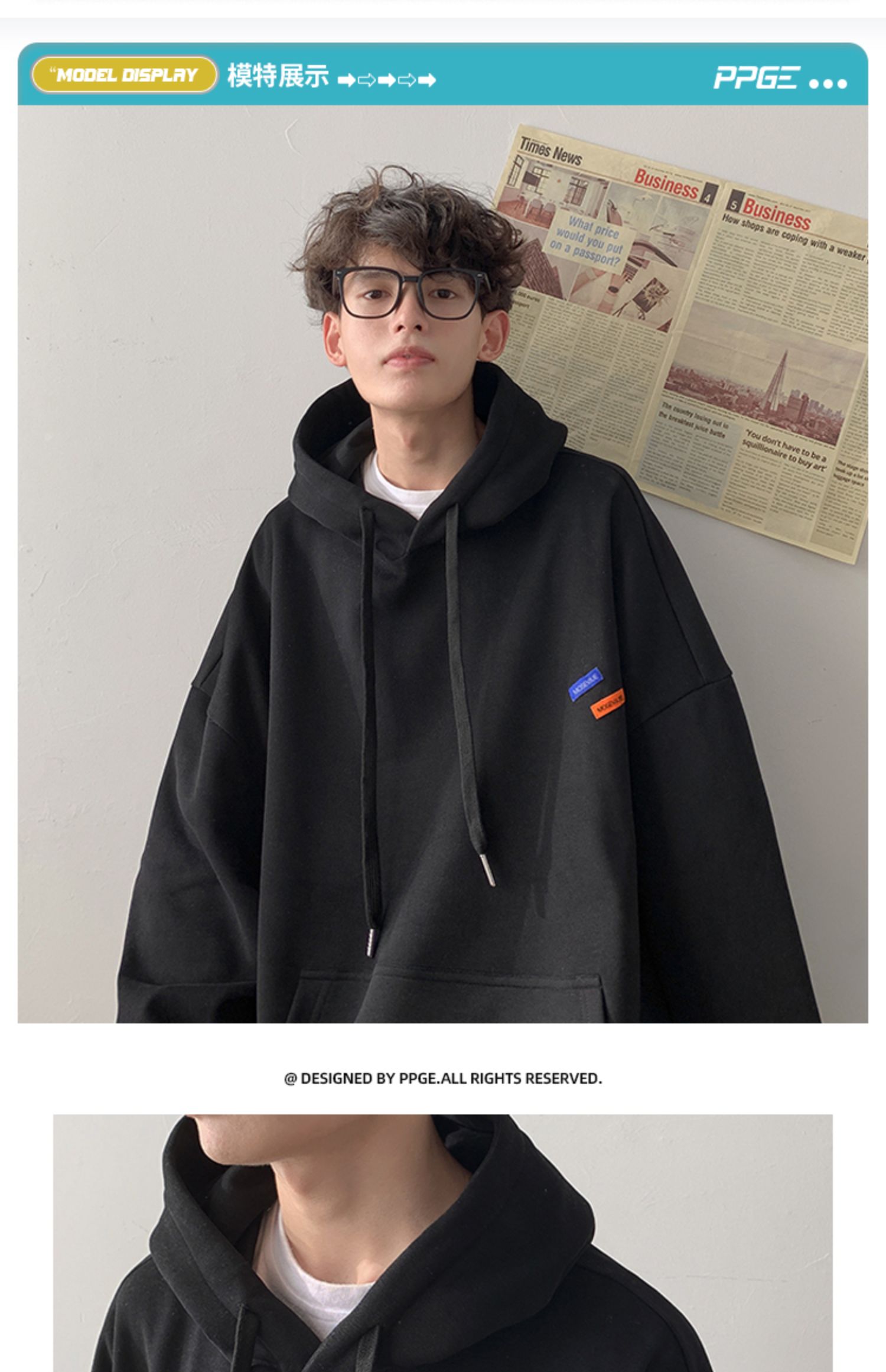 連帽衛衣男生重磅春秋簡約oversize潮牌帽衫寬松加絨ins學生上衣