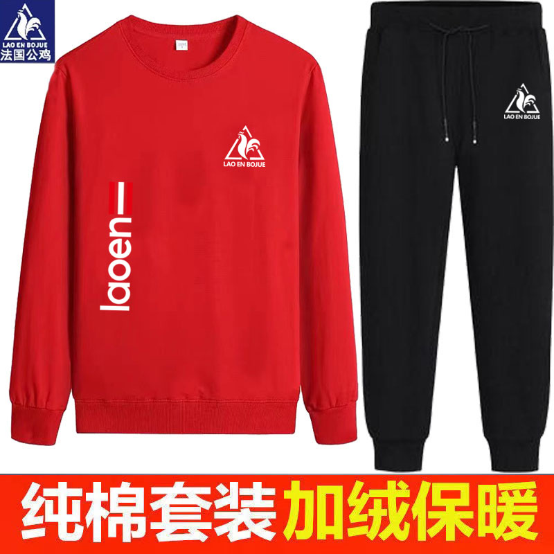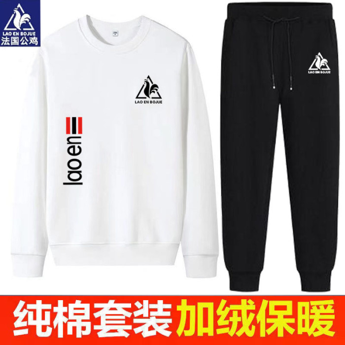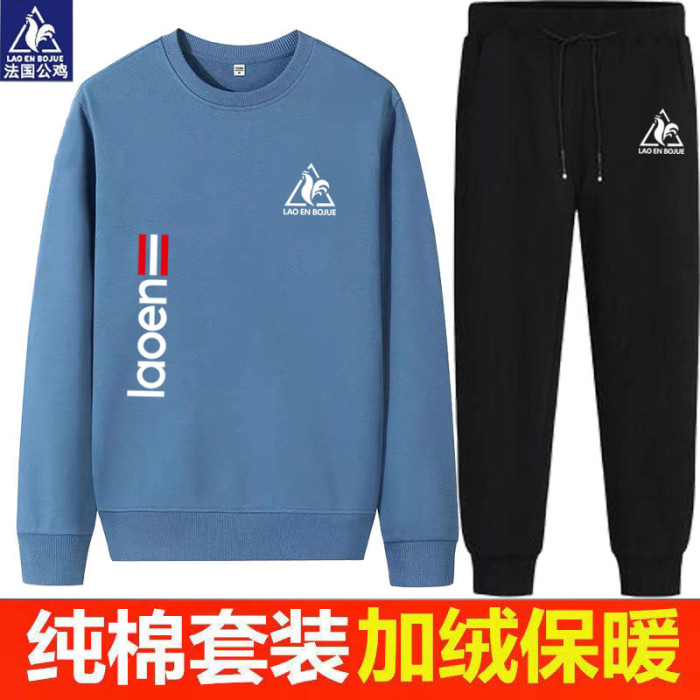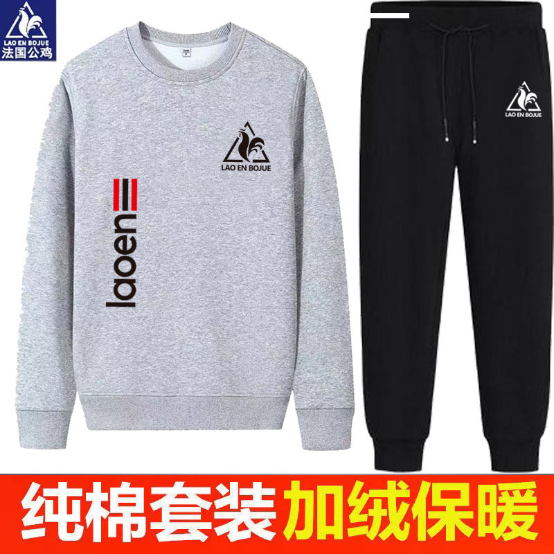 純棉運動衛衣套裝男潮流春秋款圓領衛衣寬松冬季加絨長褲子倆件套