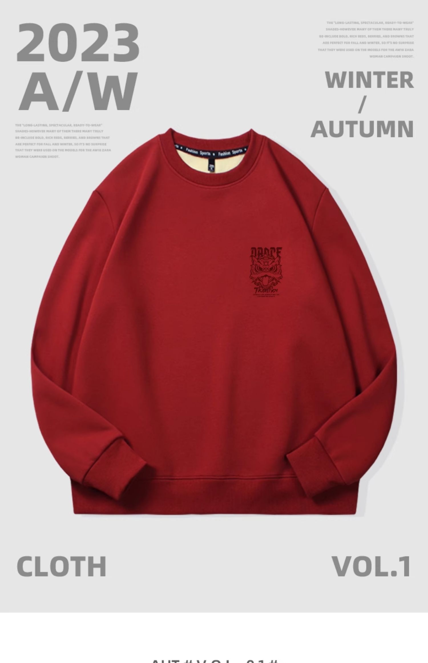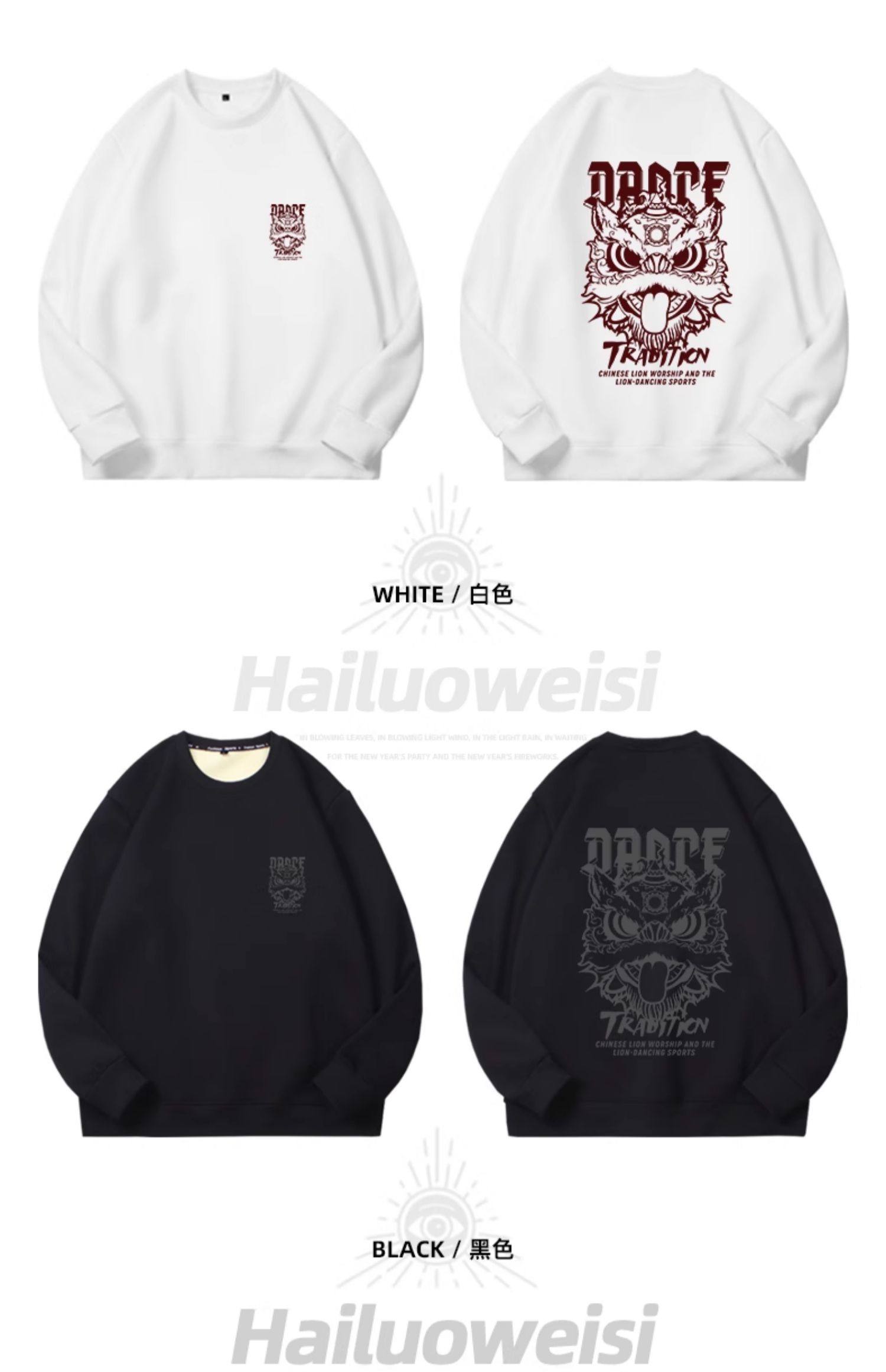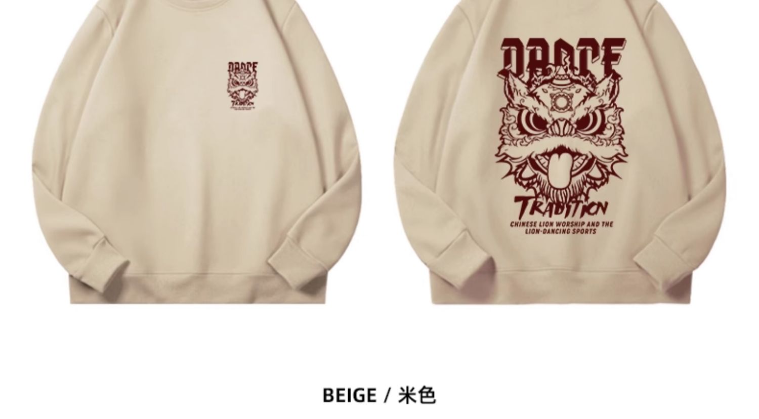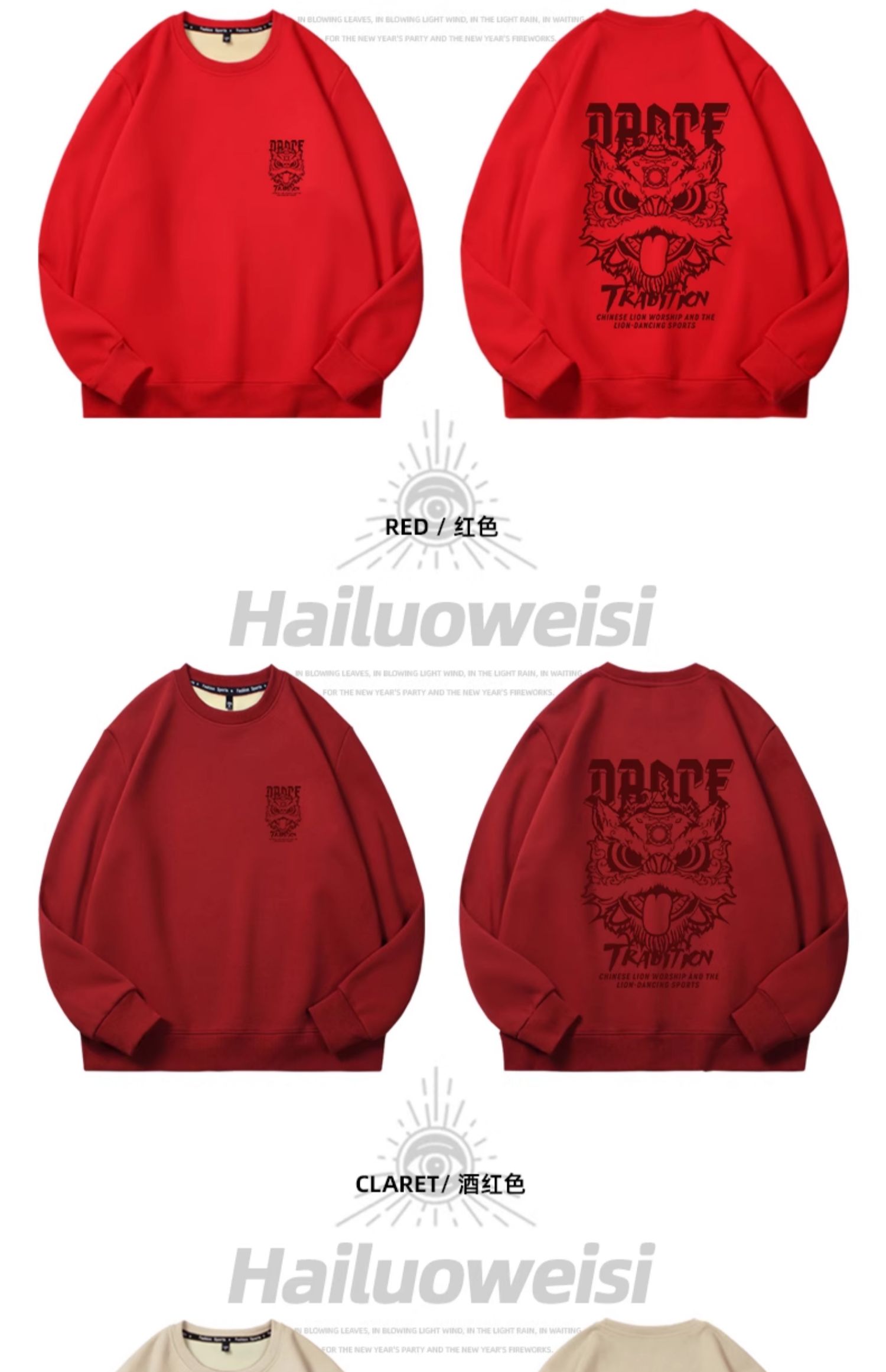 醒獅頭國潮紅色衛衣男加絨加厚秋冬新款寬松本命年圓領打底衫