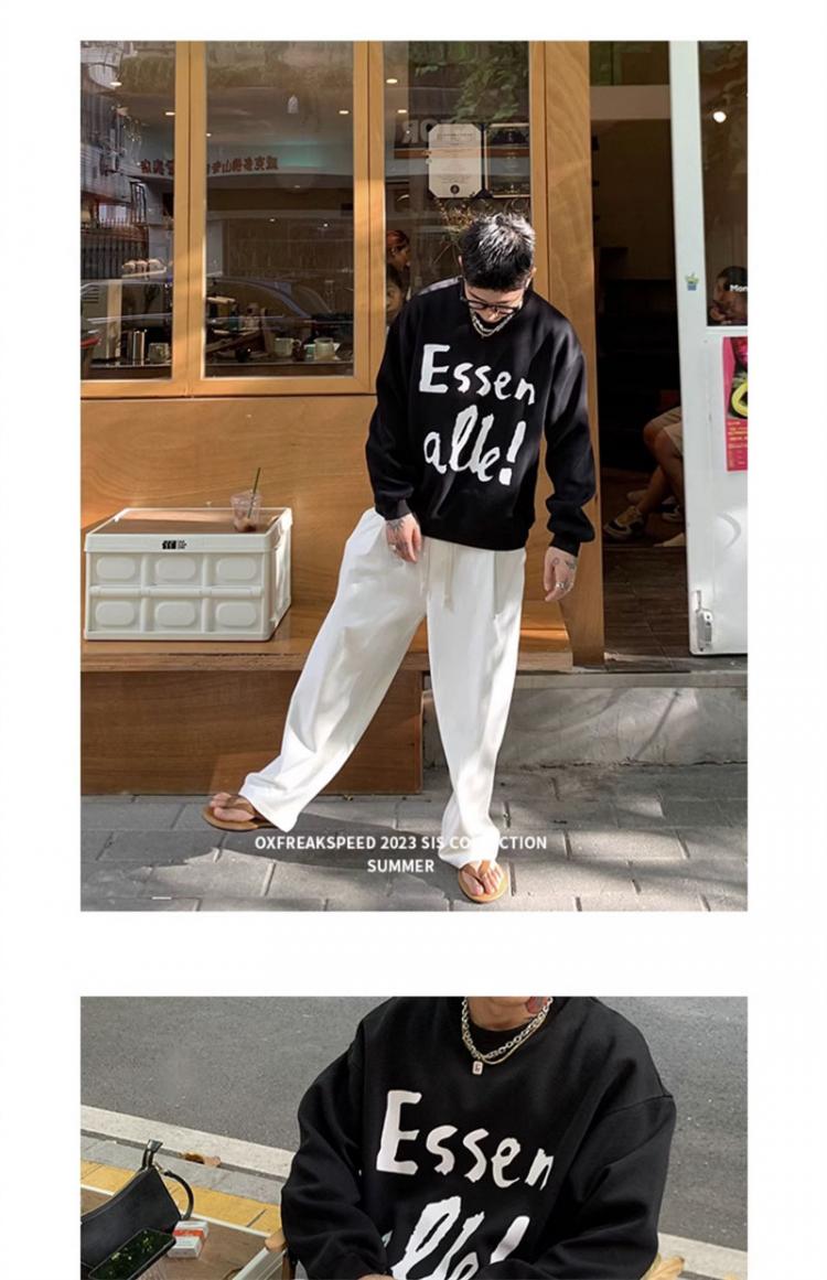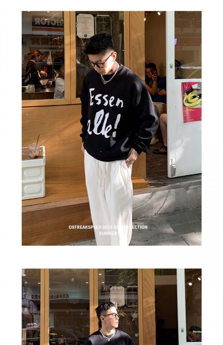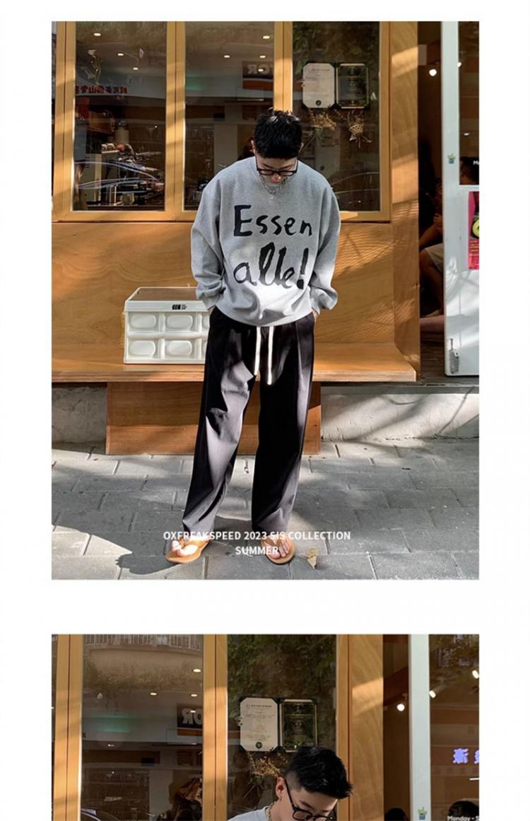 500g重磅灰色圓領加絨衛衣男款春秋美式字母寬松套頭外套休閒上衣