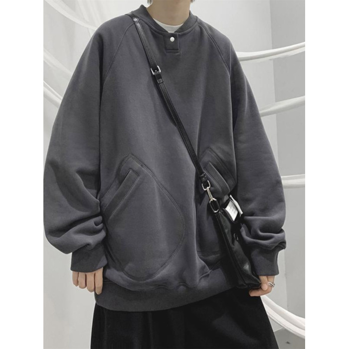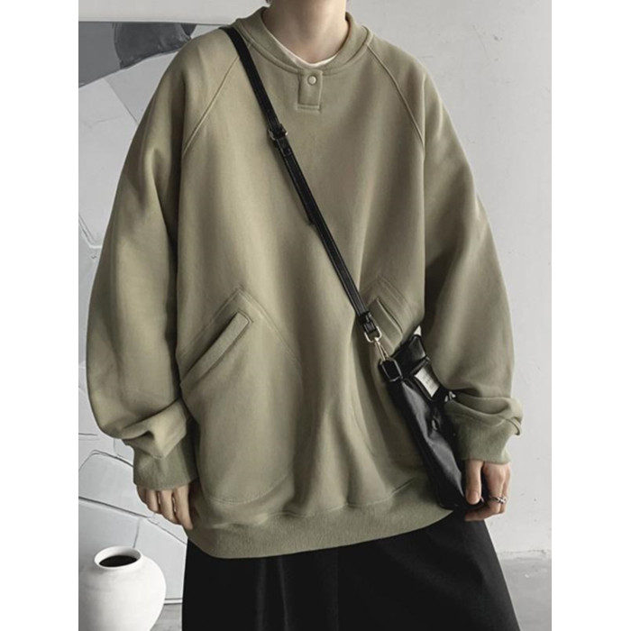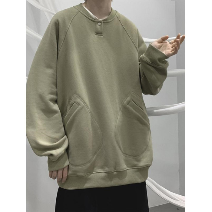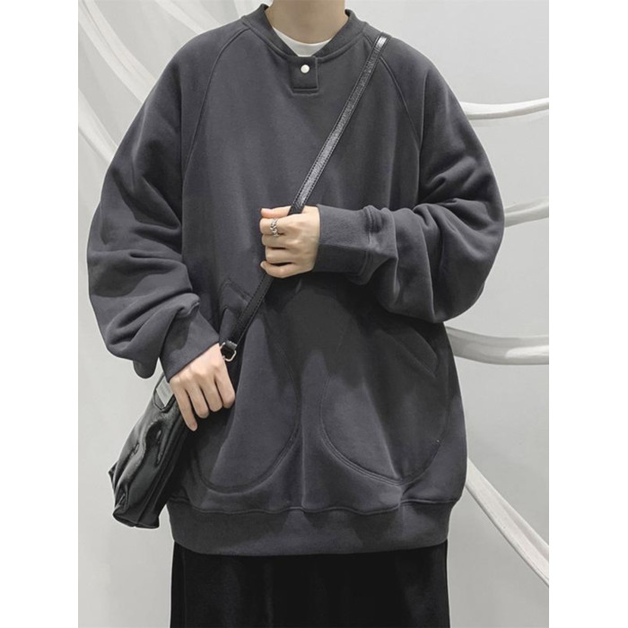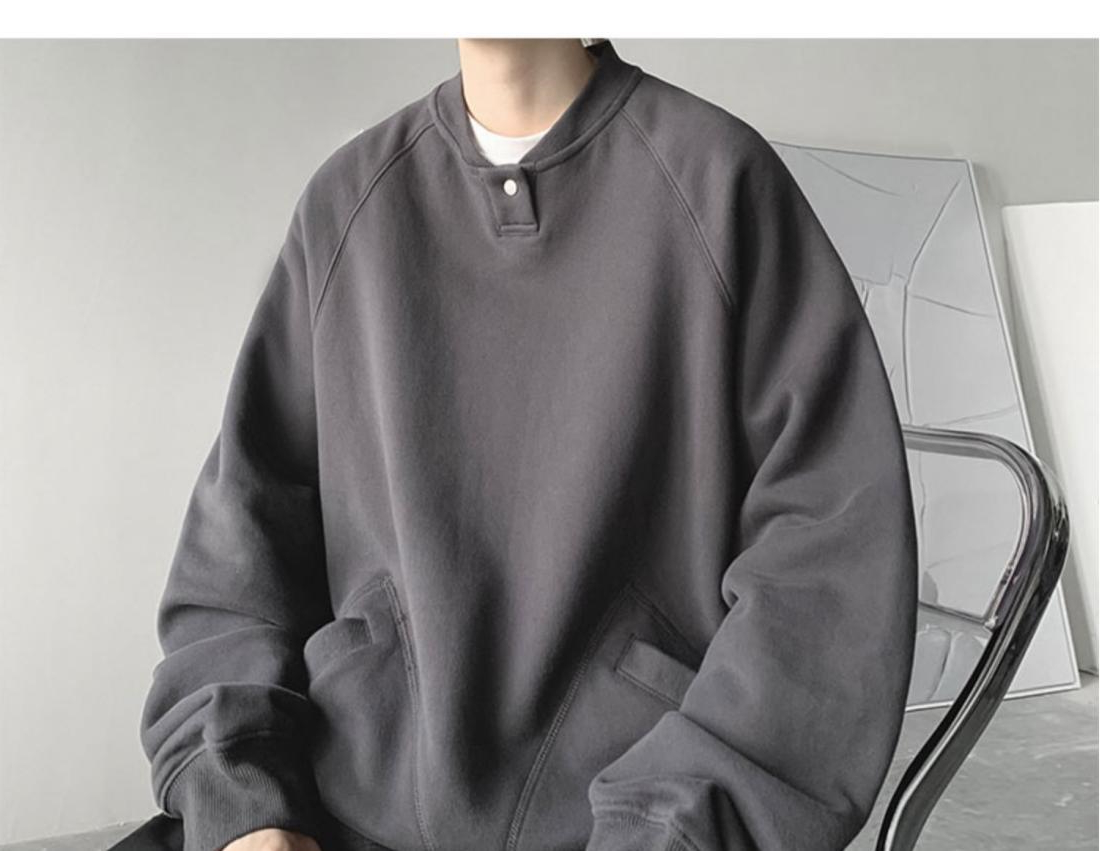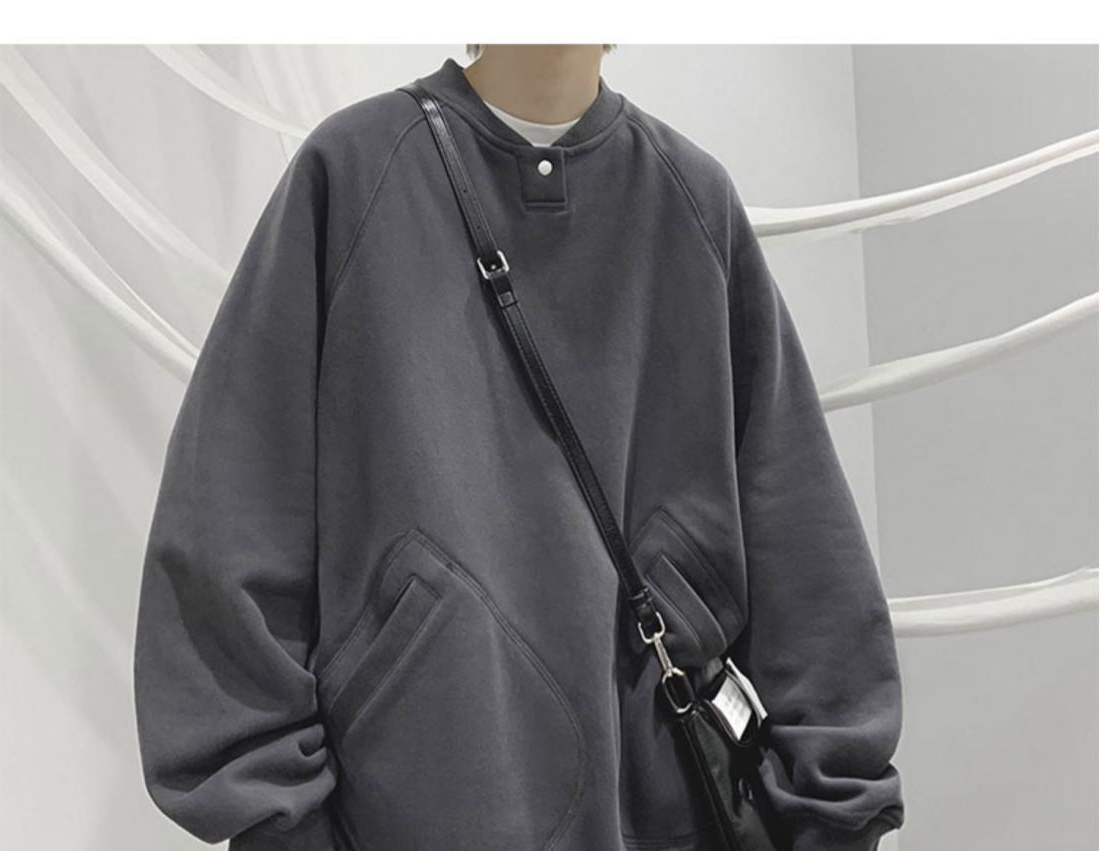 特大碼300斤重磅衛衣男裝秋冬復古寬松圓領加絨外套潮牌百搭上衣2