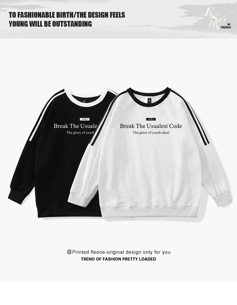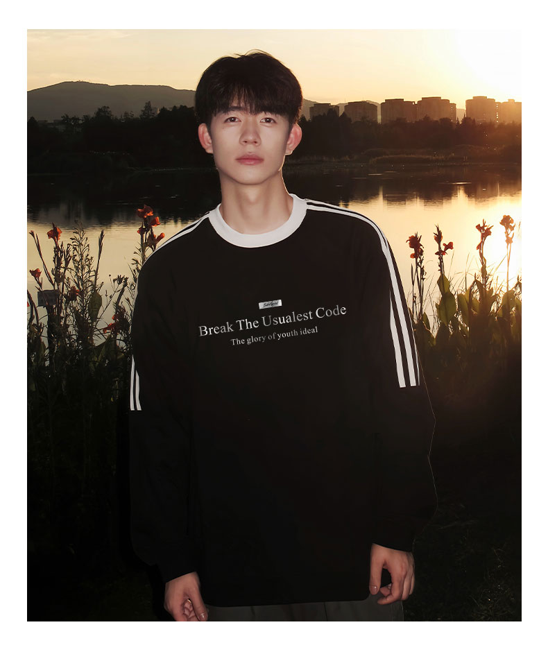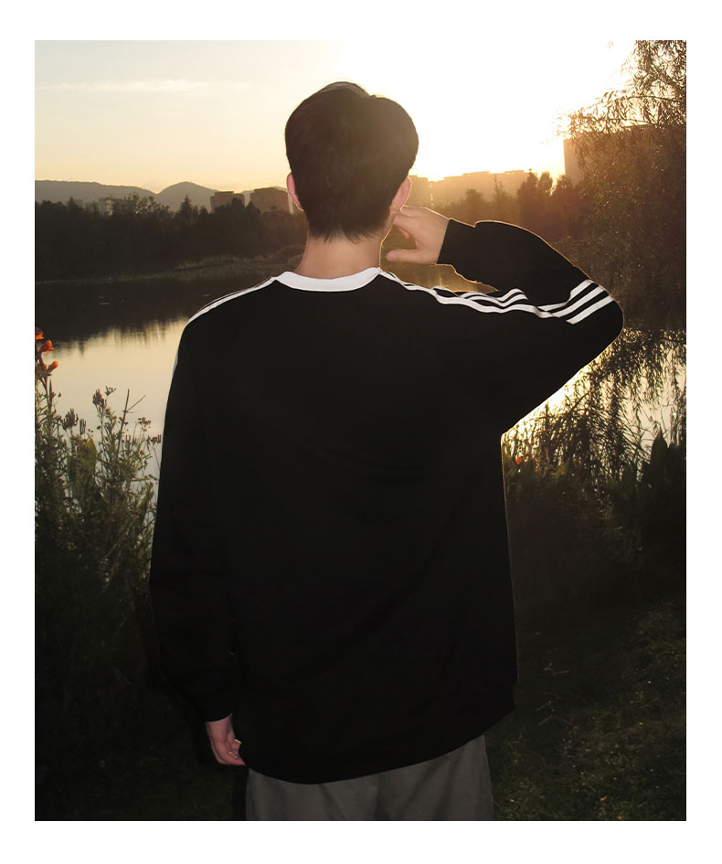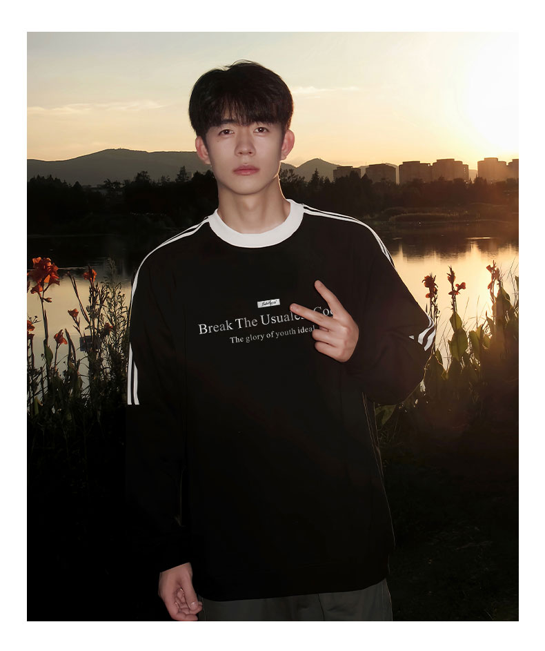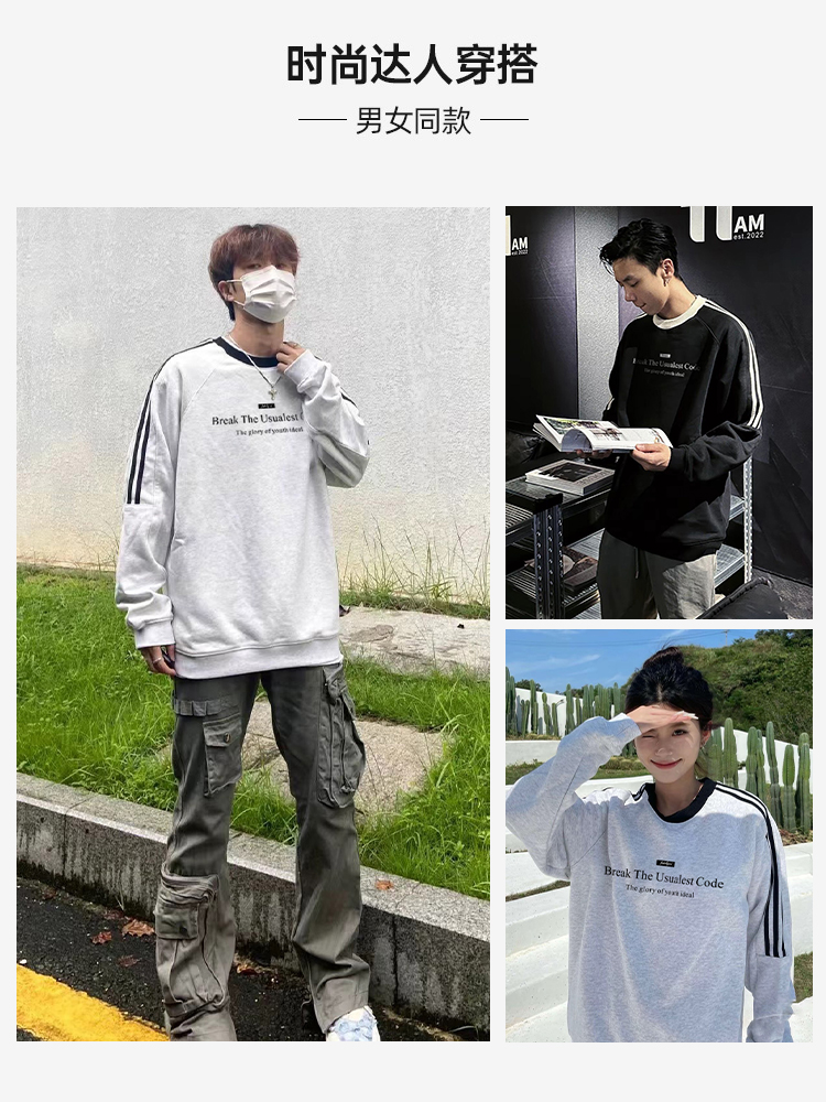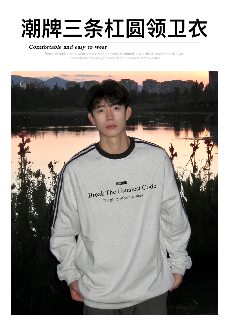 三條杠圓領無帽衛衣男秋季新款青少年加絨長袖T恤內搭打底衫上衣