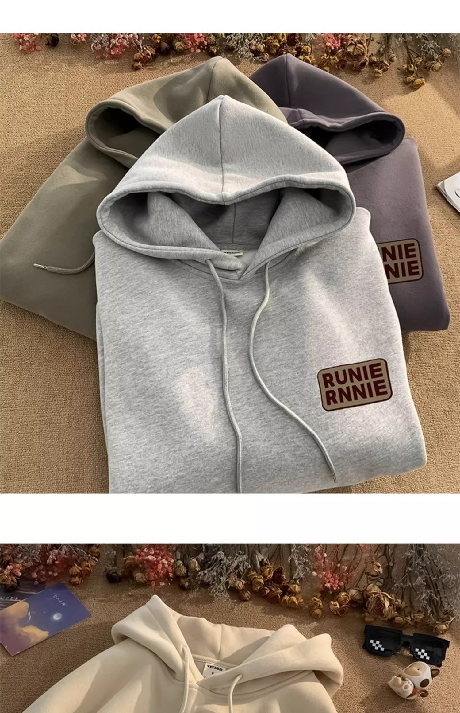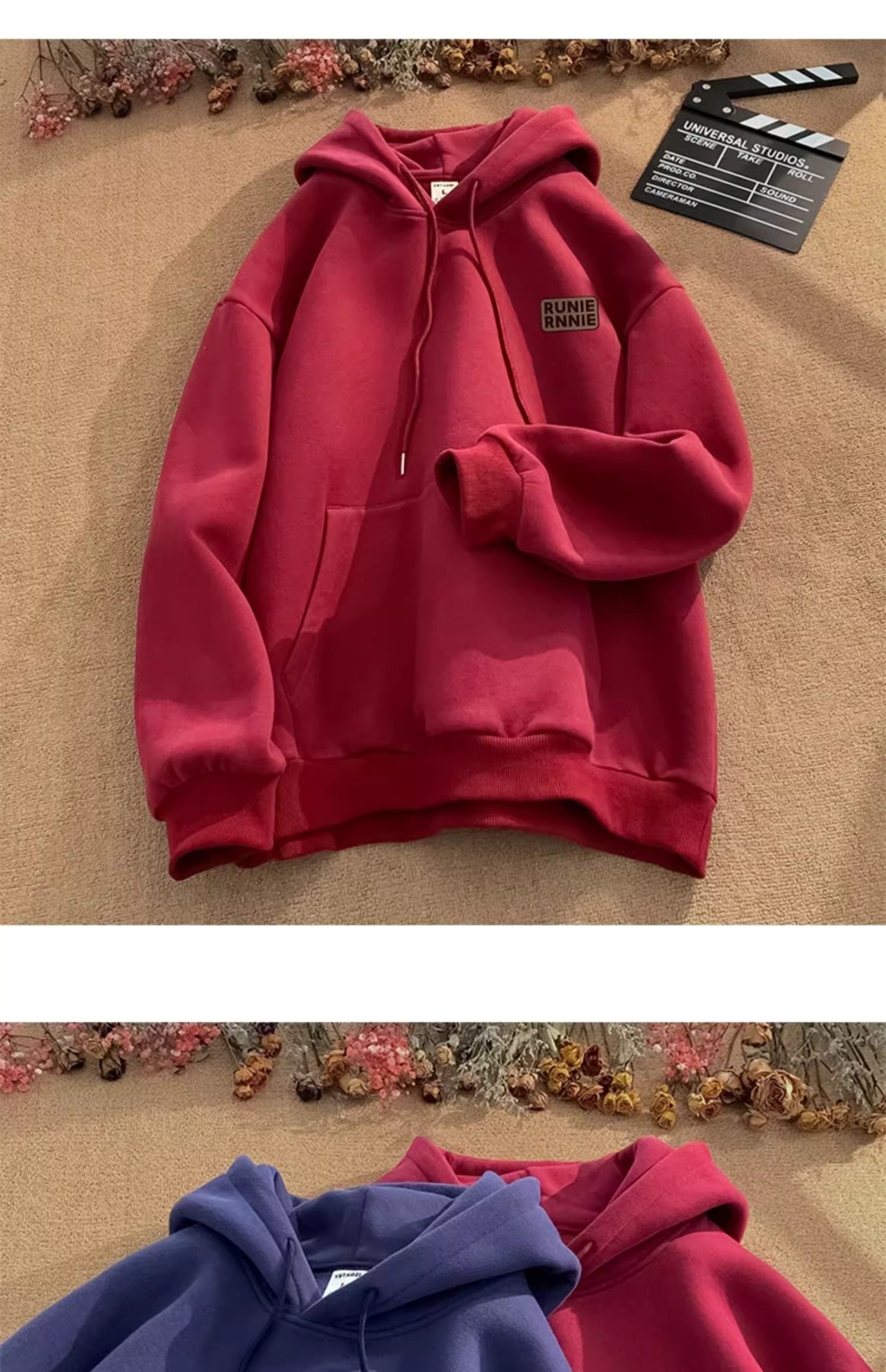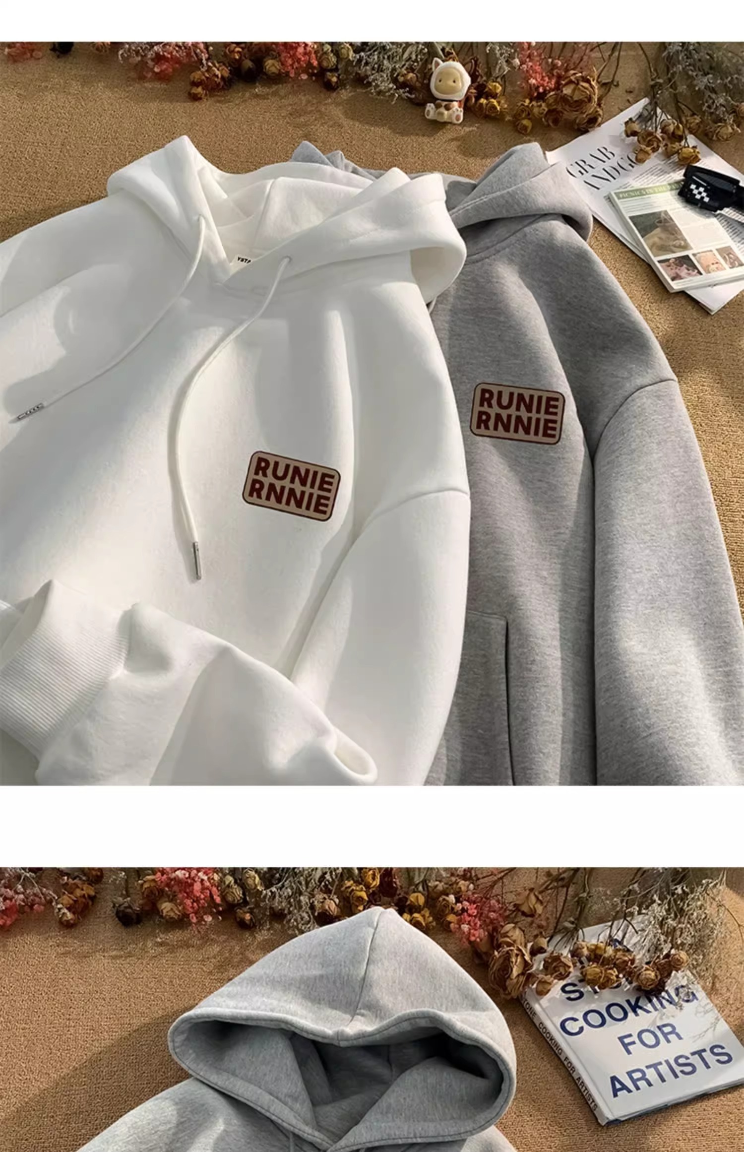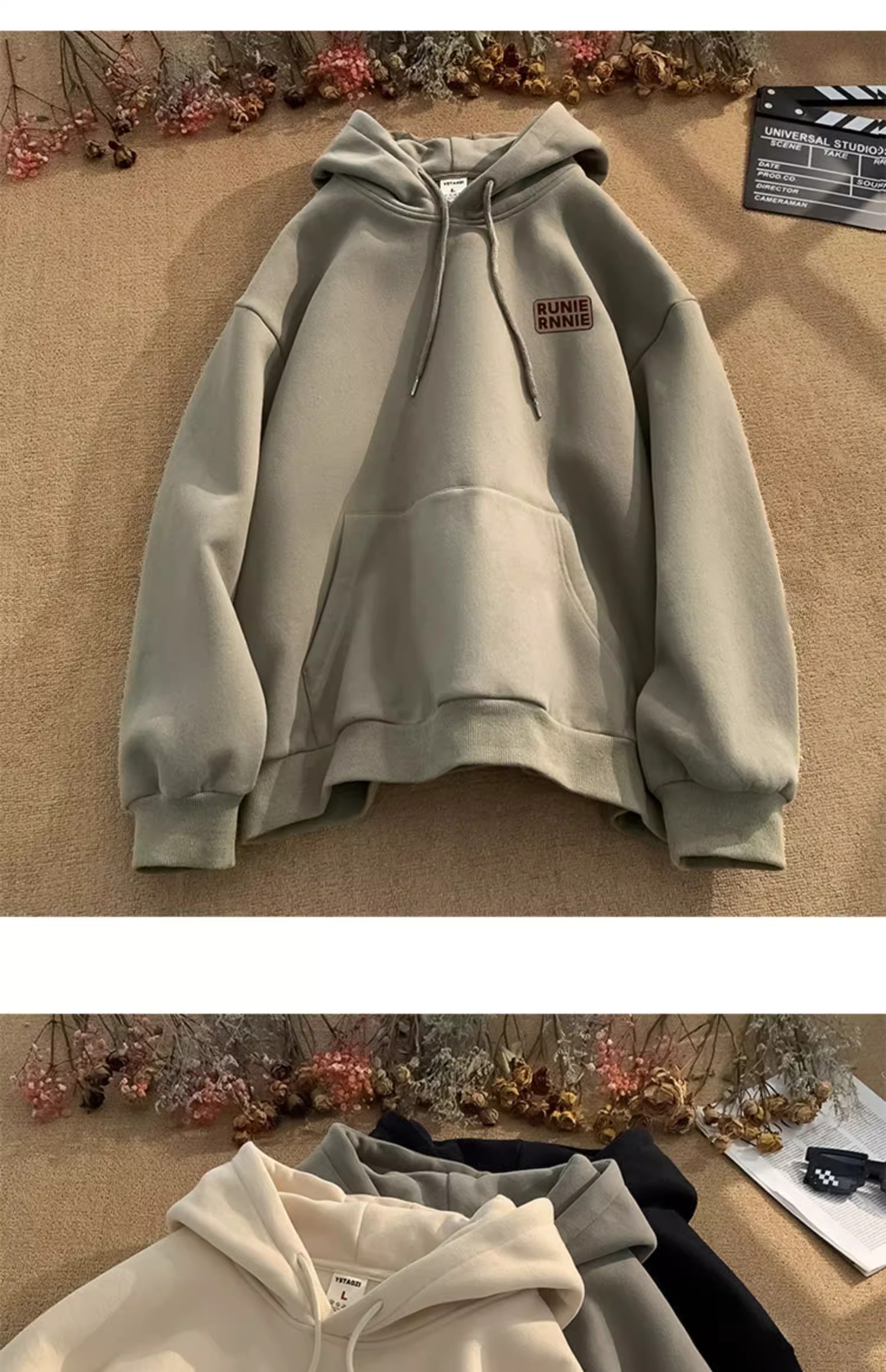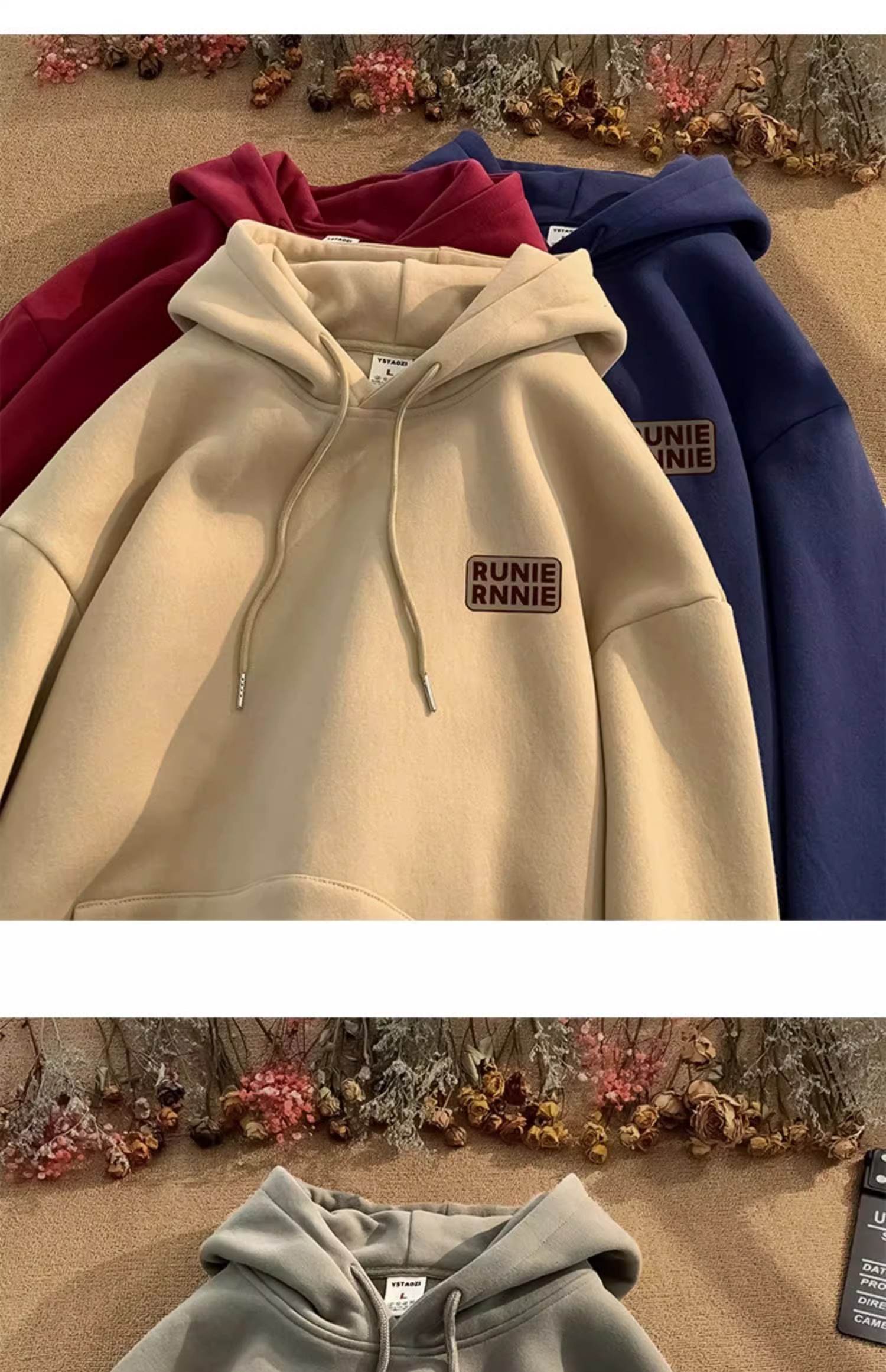 純棉oversize美式重磅寬松字母連帽長袖衛衣男秋冬新款加絨青少年