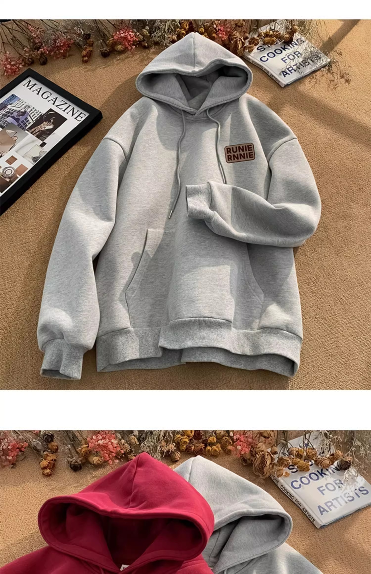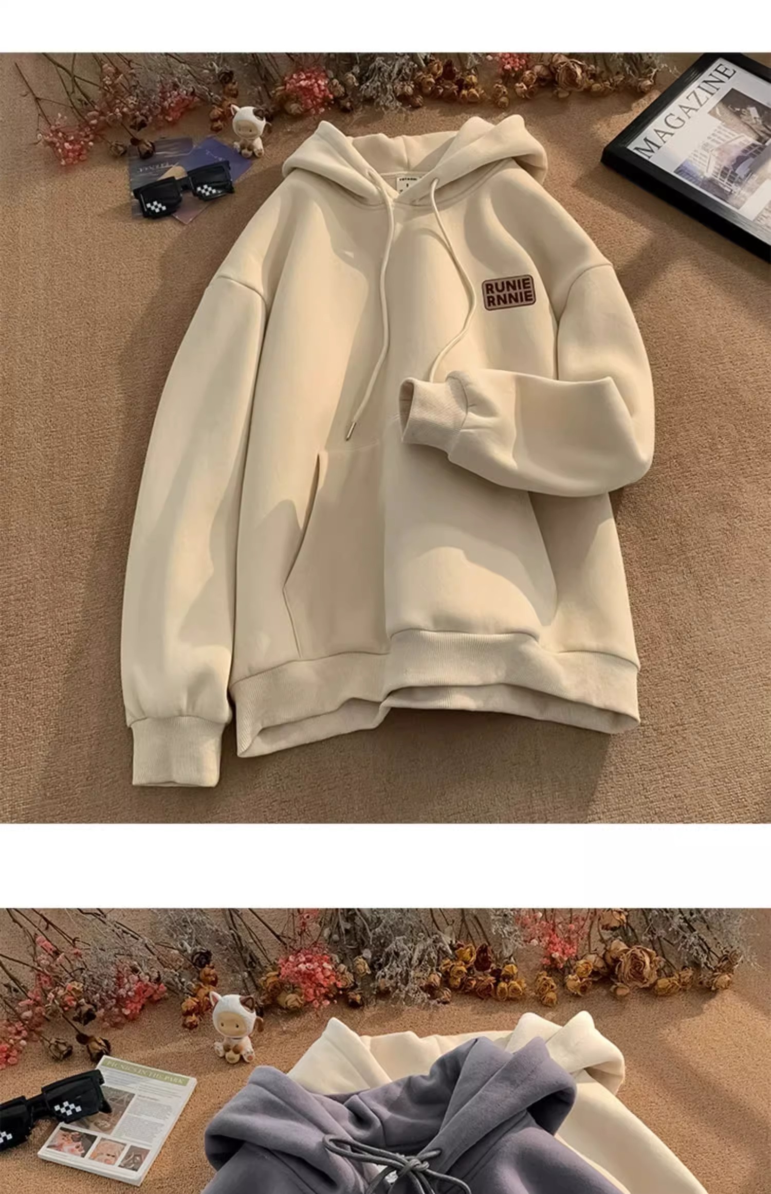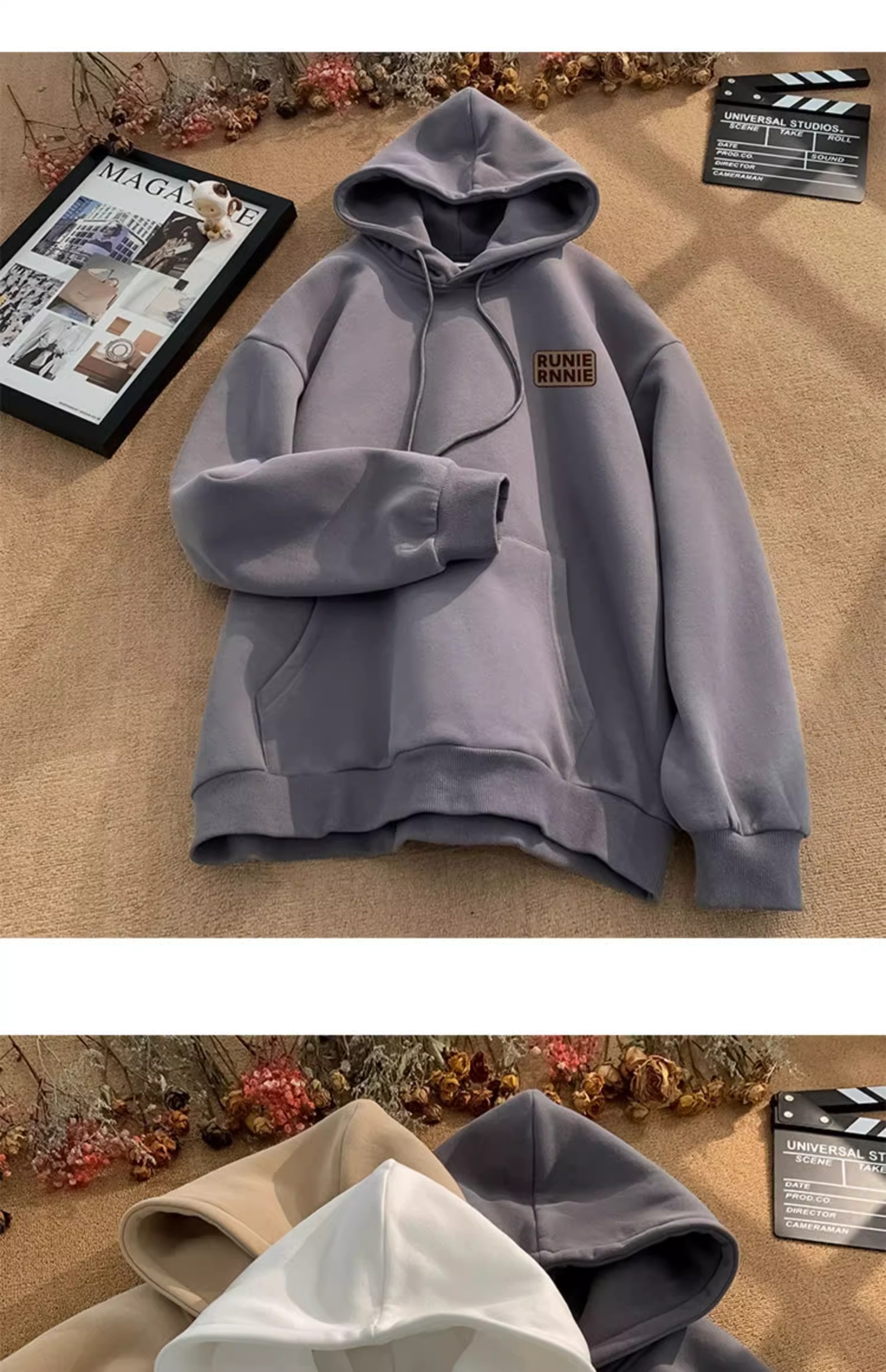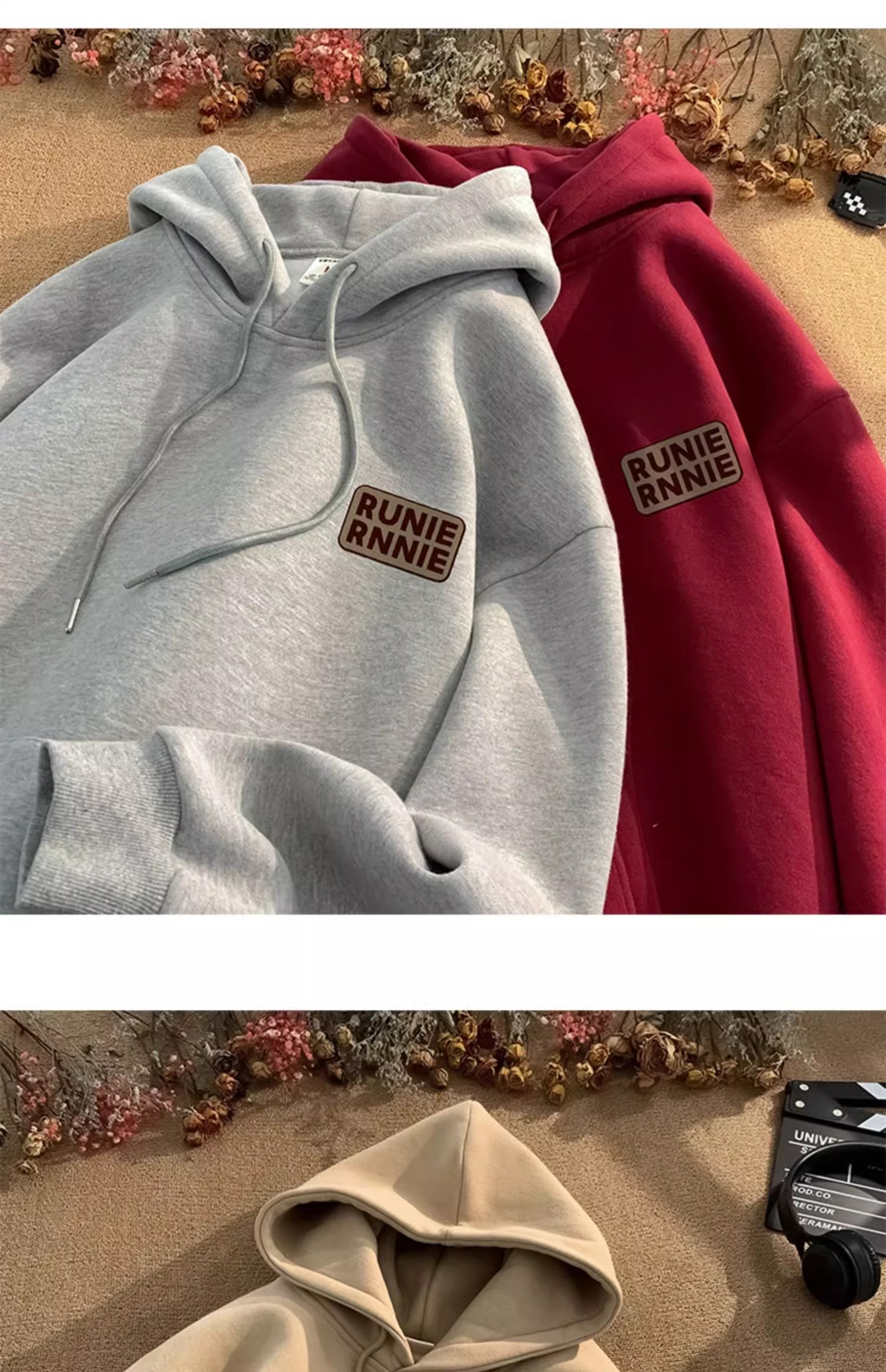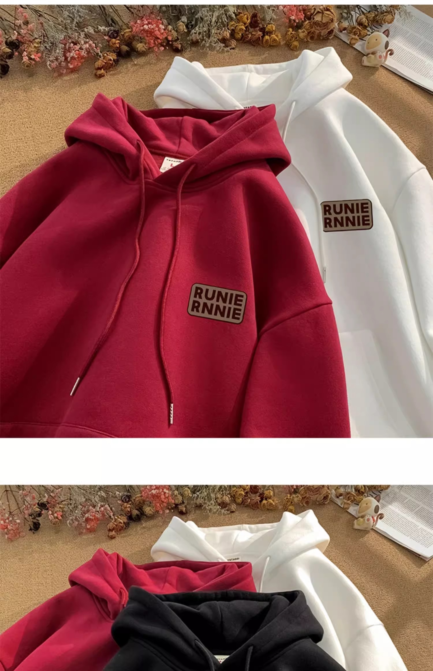 純棉oversize美式重磅寬松字母連帽長袖衛衣男秋冬新款加絨青少年