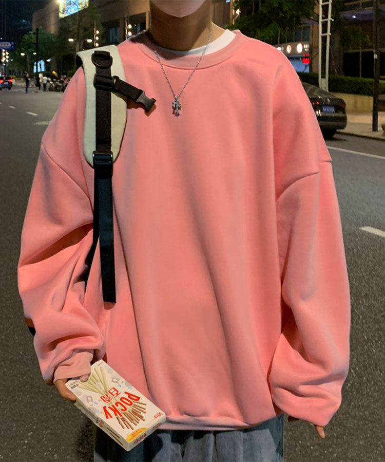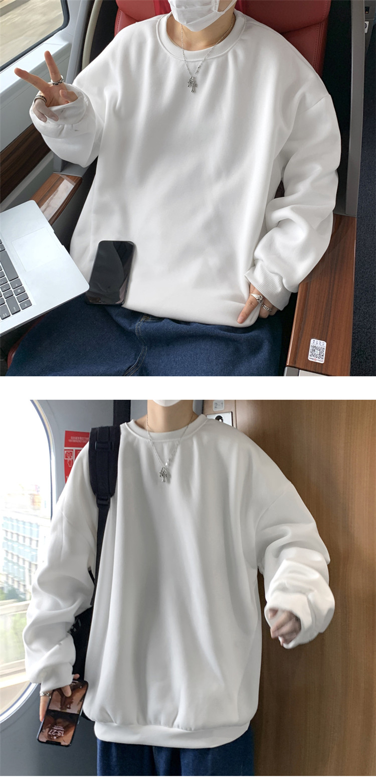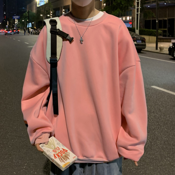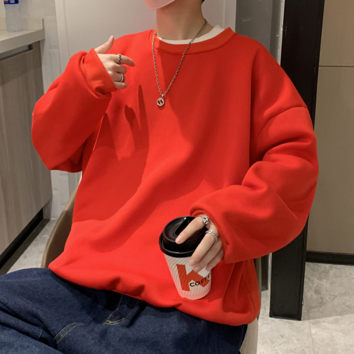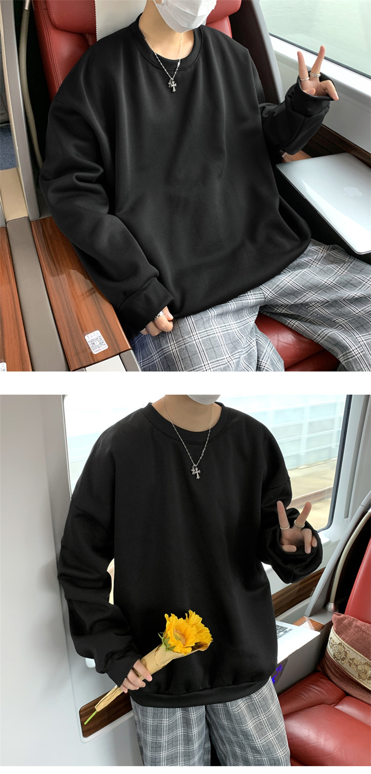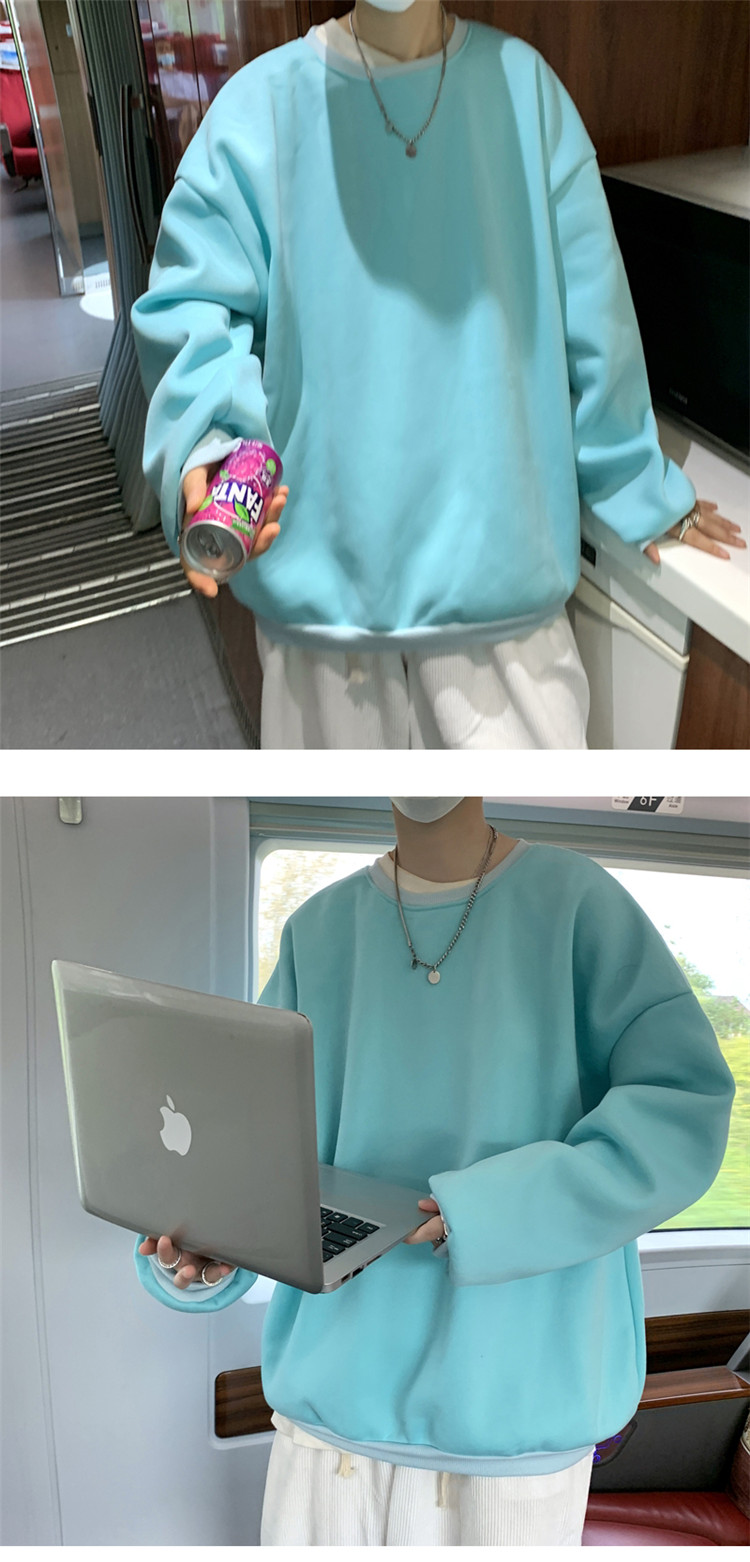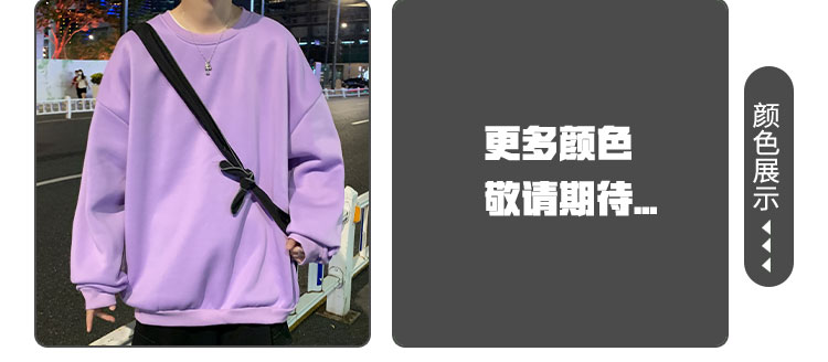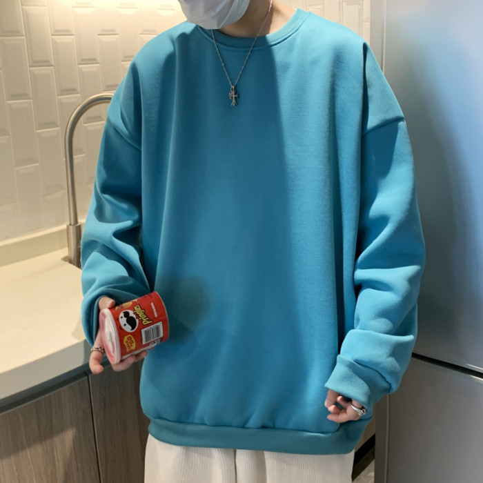 2025秋冬季純色百搭學生潮牌寬松港風情侶款加絨鹽系圓領套頭衛衣