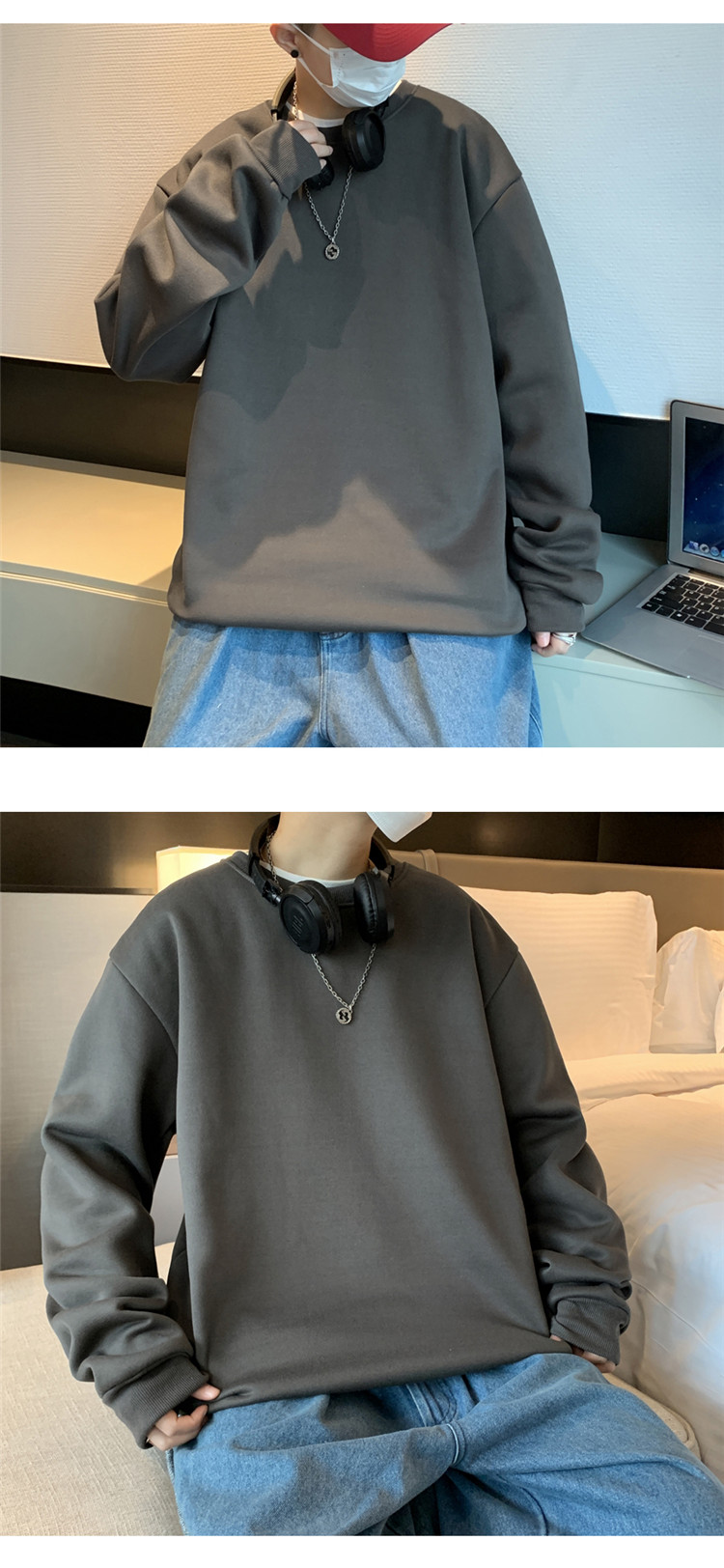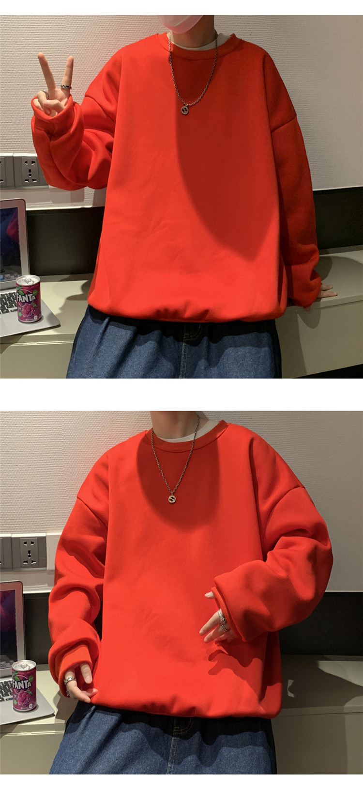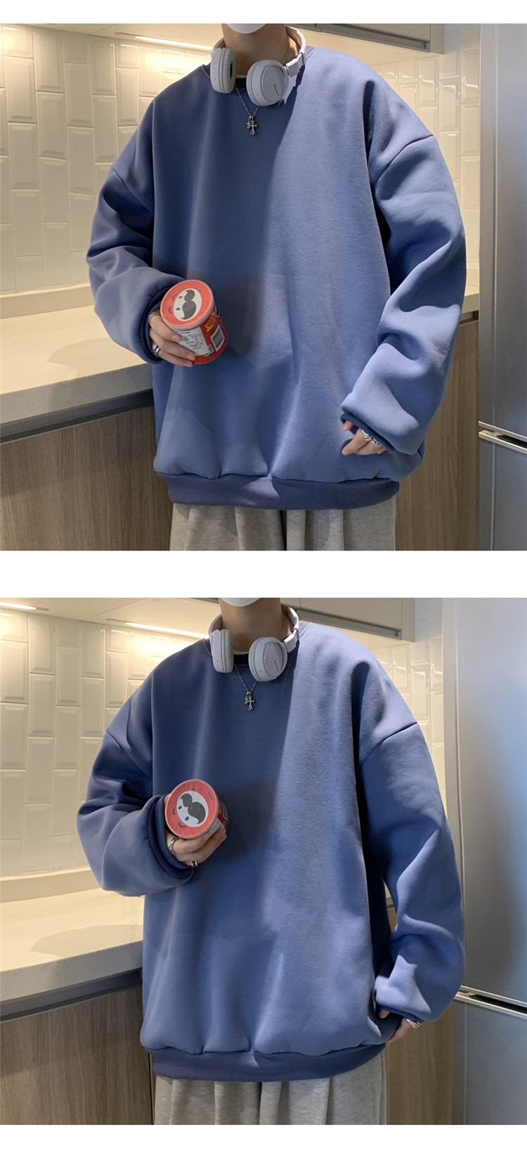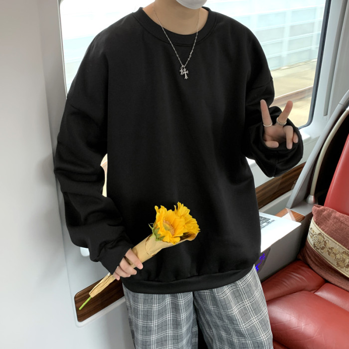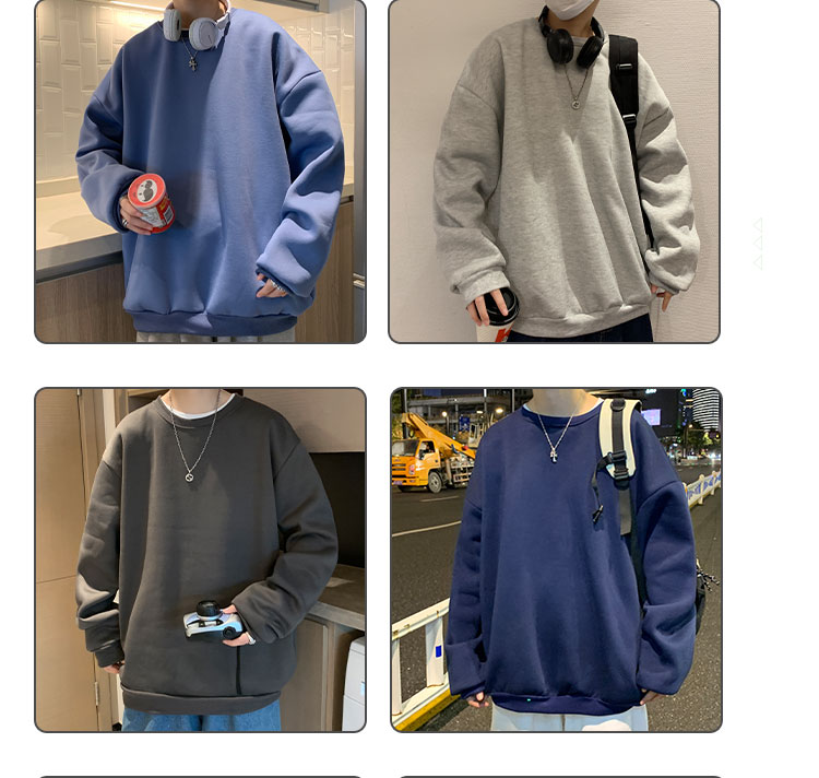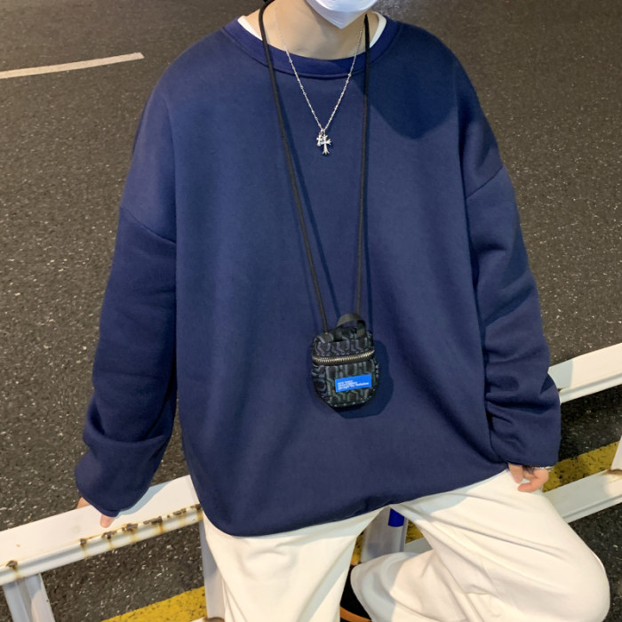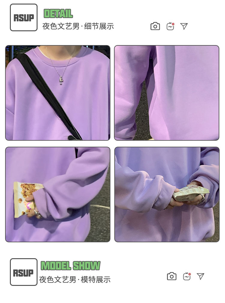 2025秋冬季純色百搭學生潮牌寬松港風情侶款加絨鹽系圓領套頭衛衣
