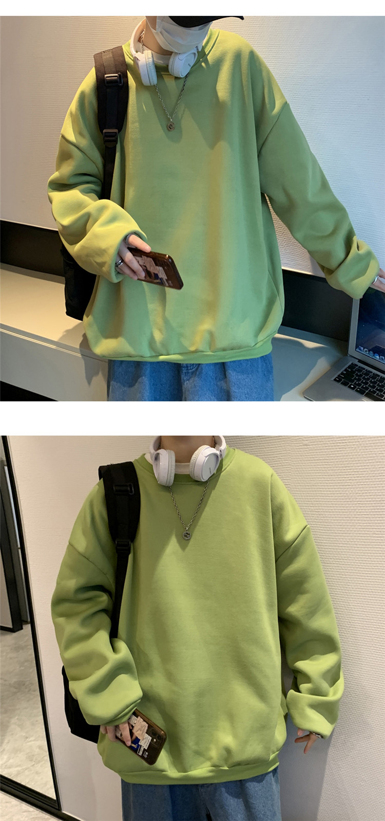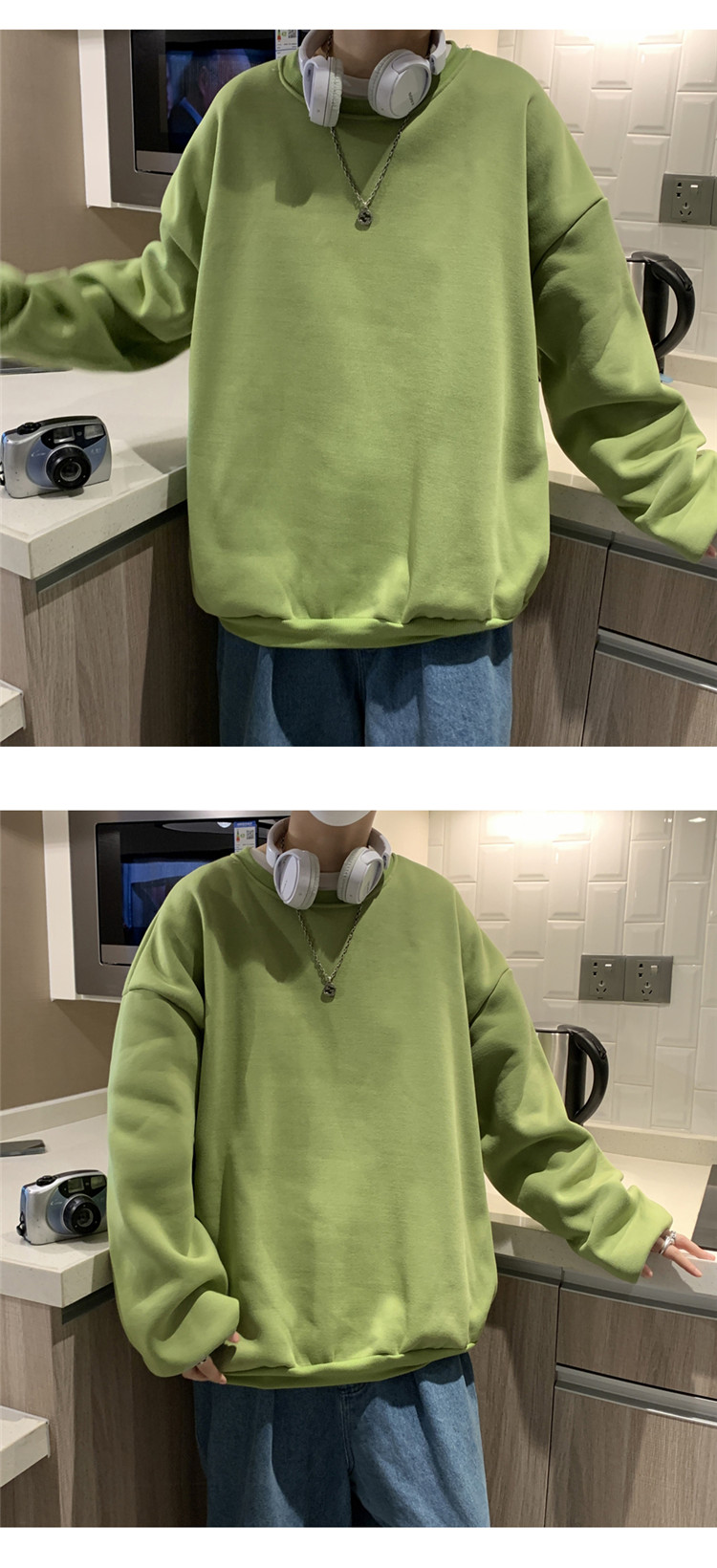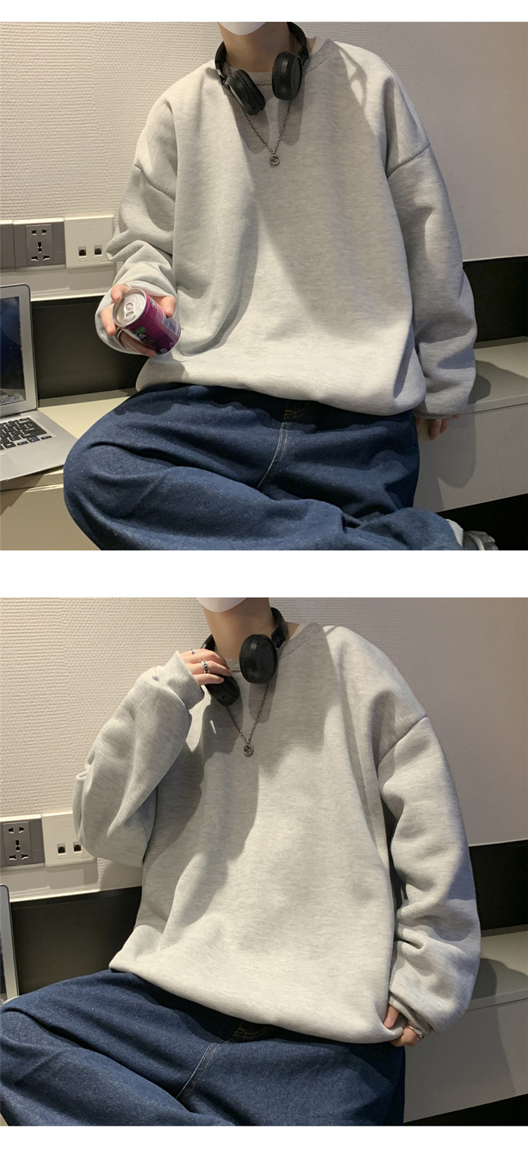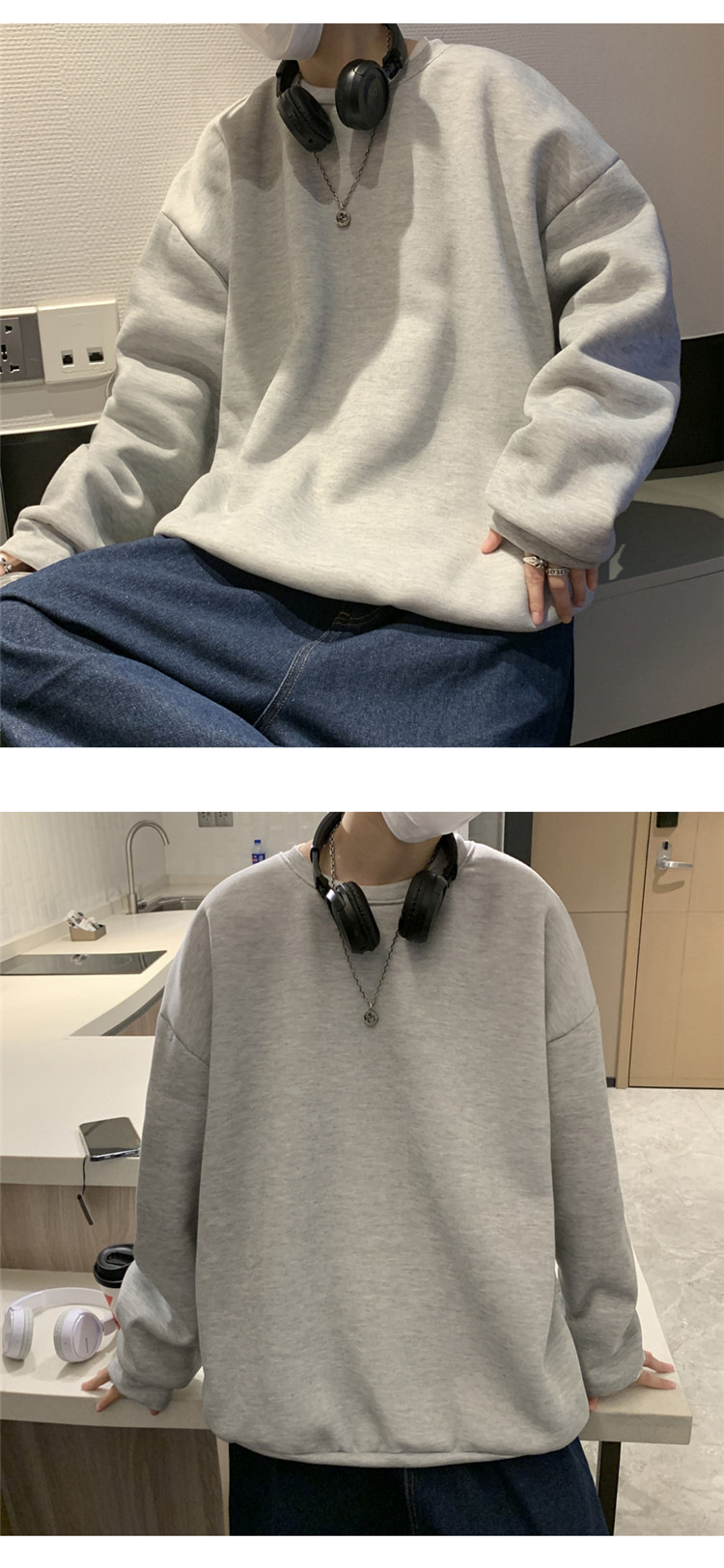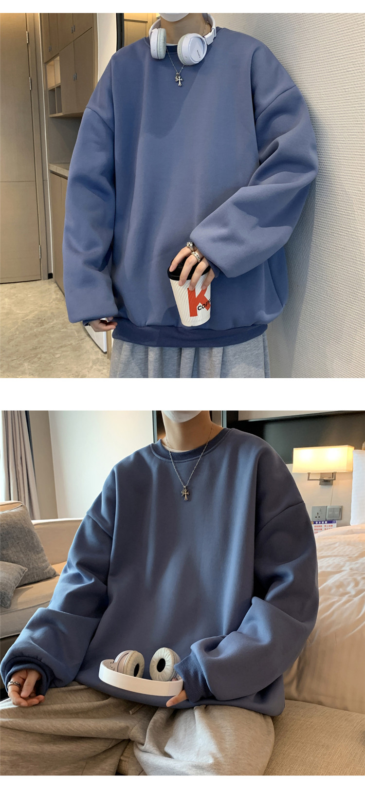 2025秋冬季純色百搭學生潮牌寬松港風情侶款加絨鹽系圓領套頭衛衣