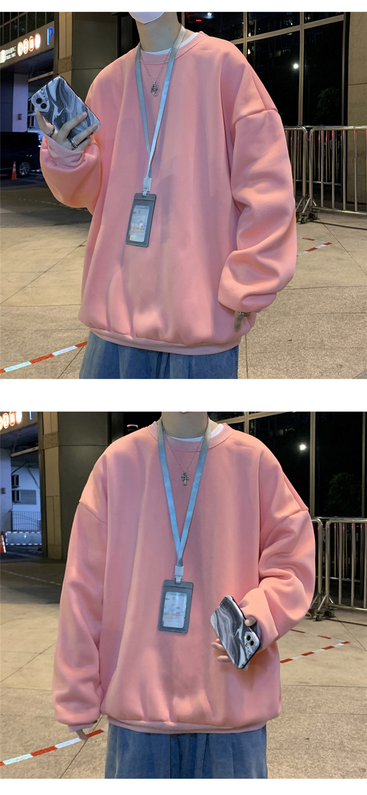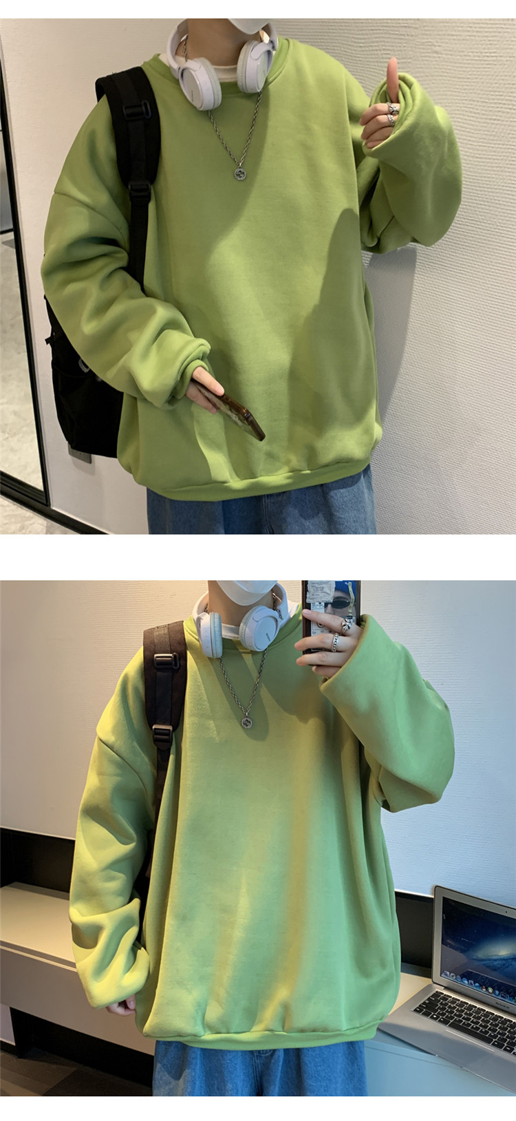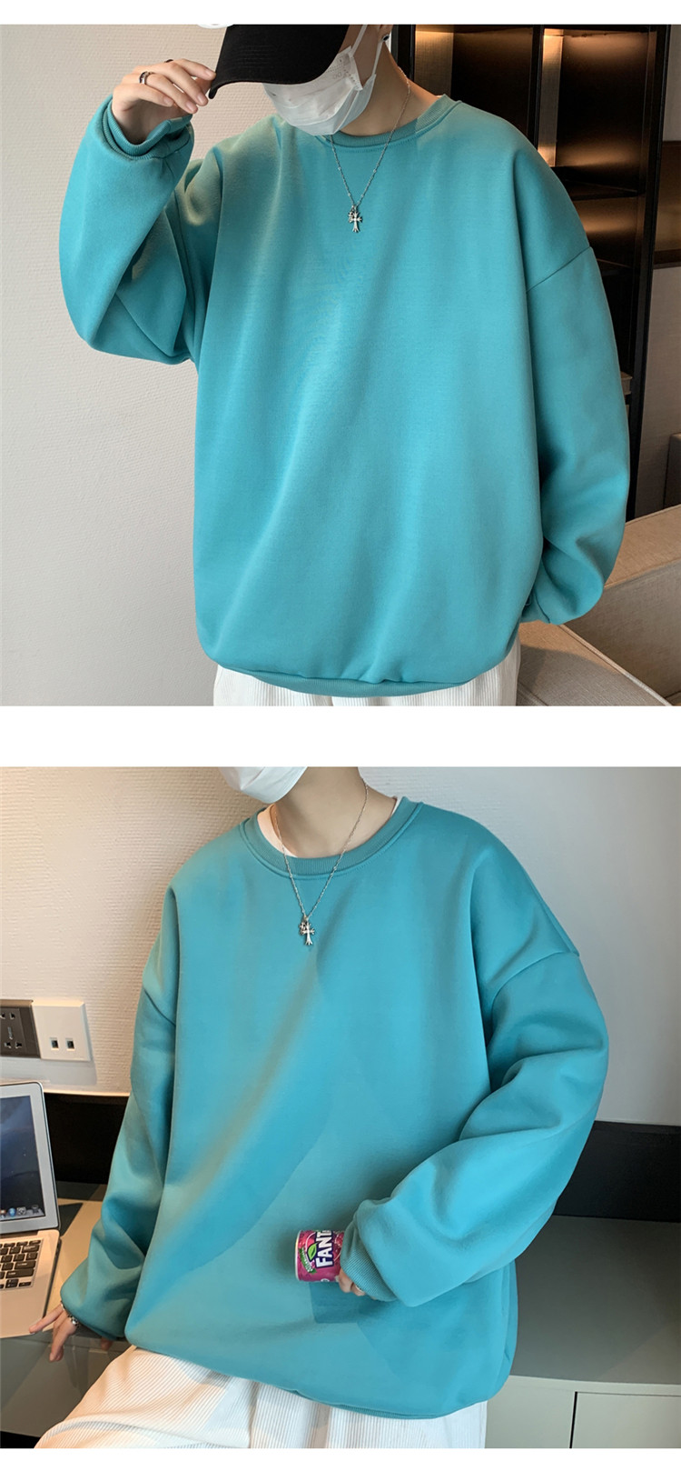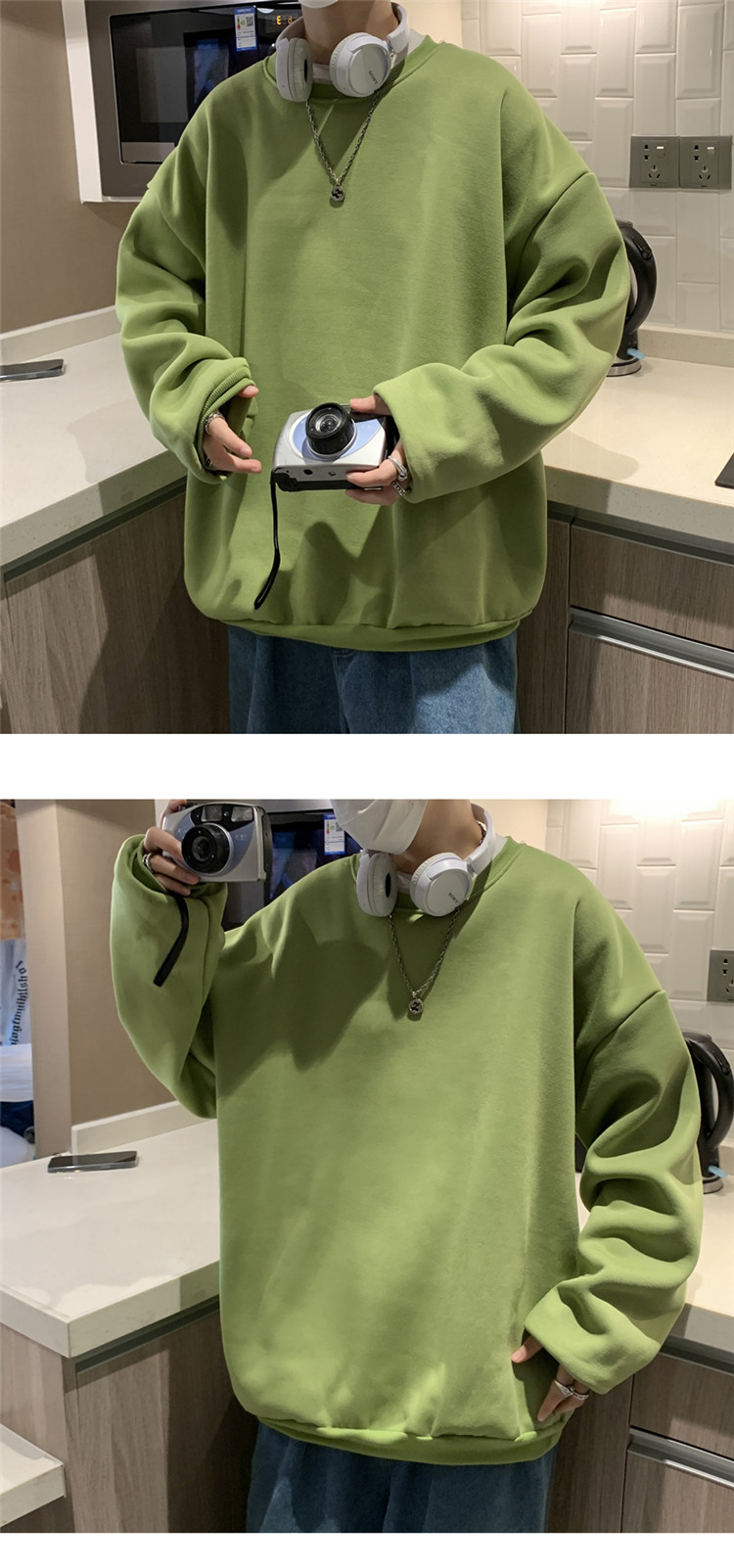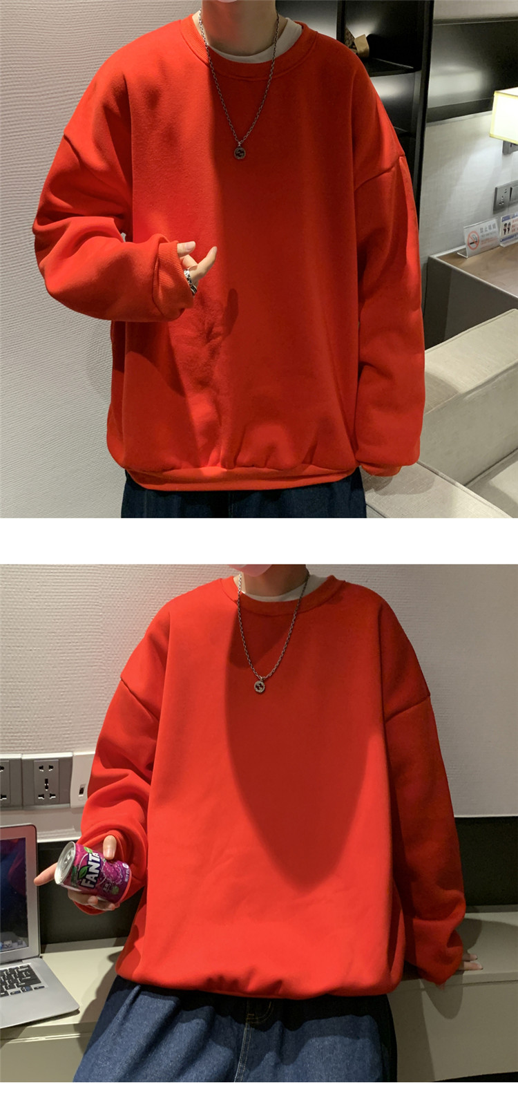 2025秋冬季純色百搭學生潮牌寬松港風情侶款加絨鹽系圓領套頭衛衣