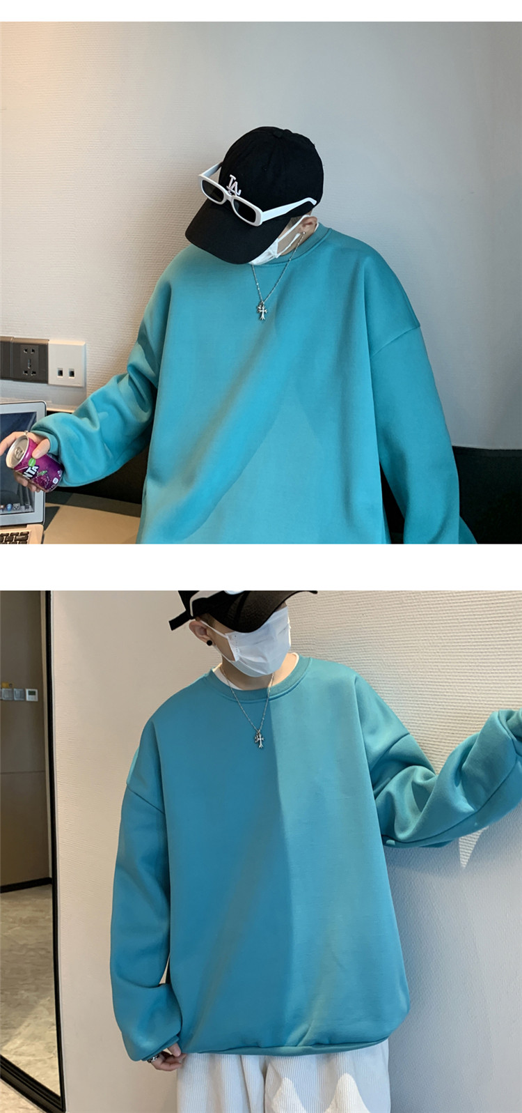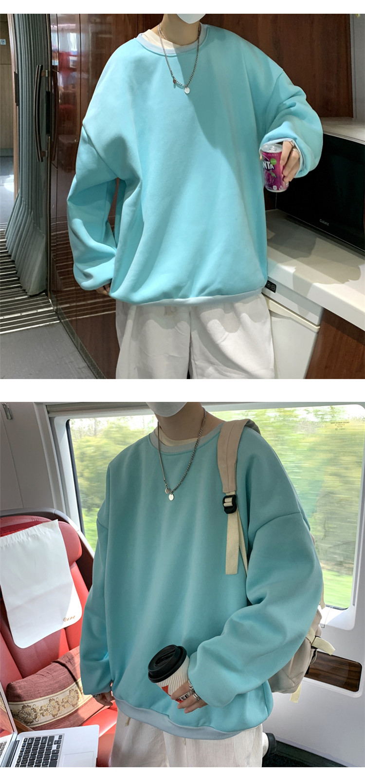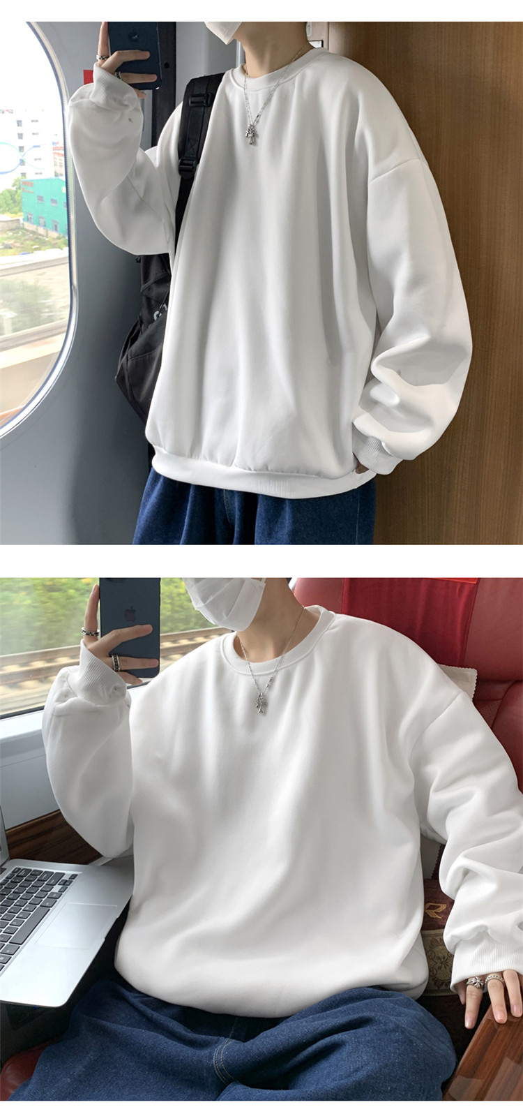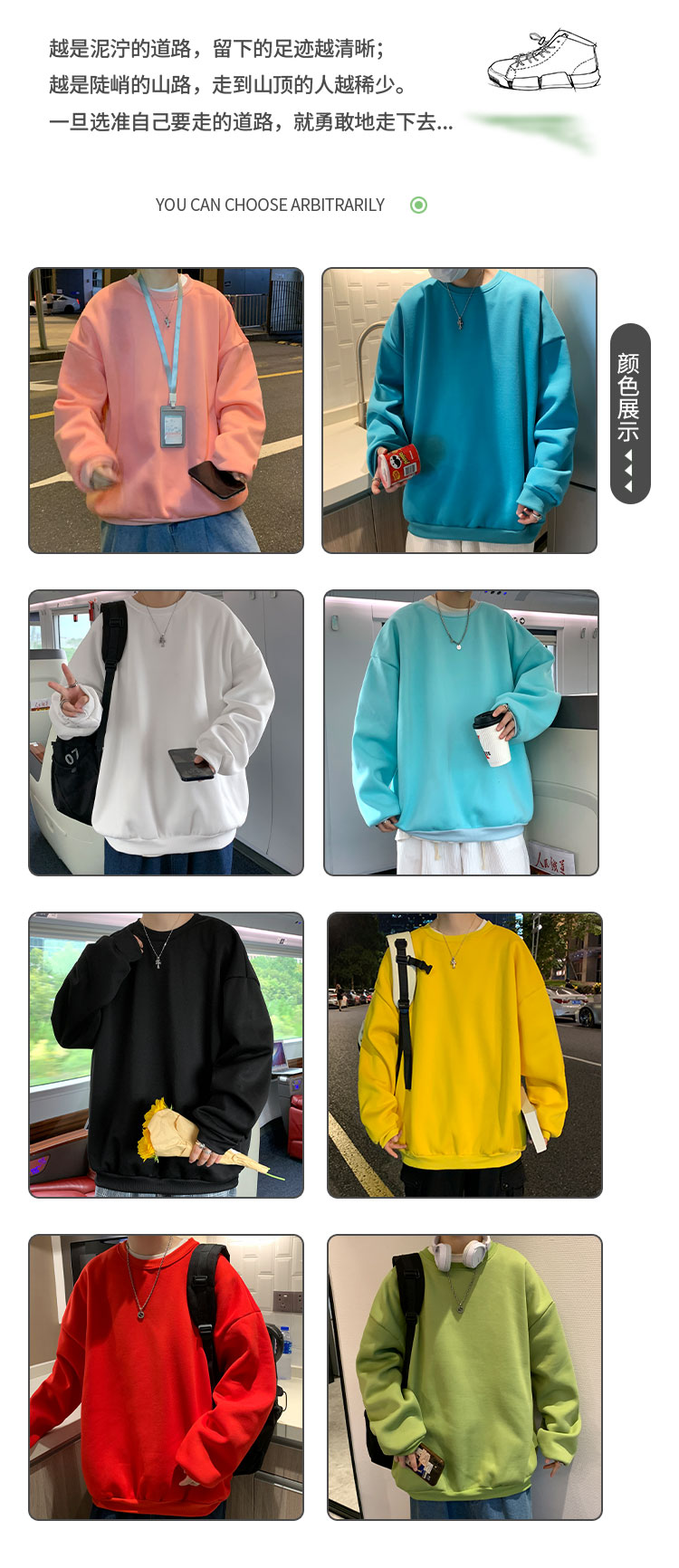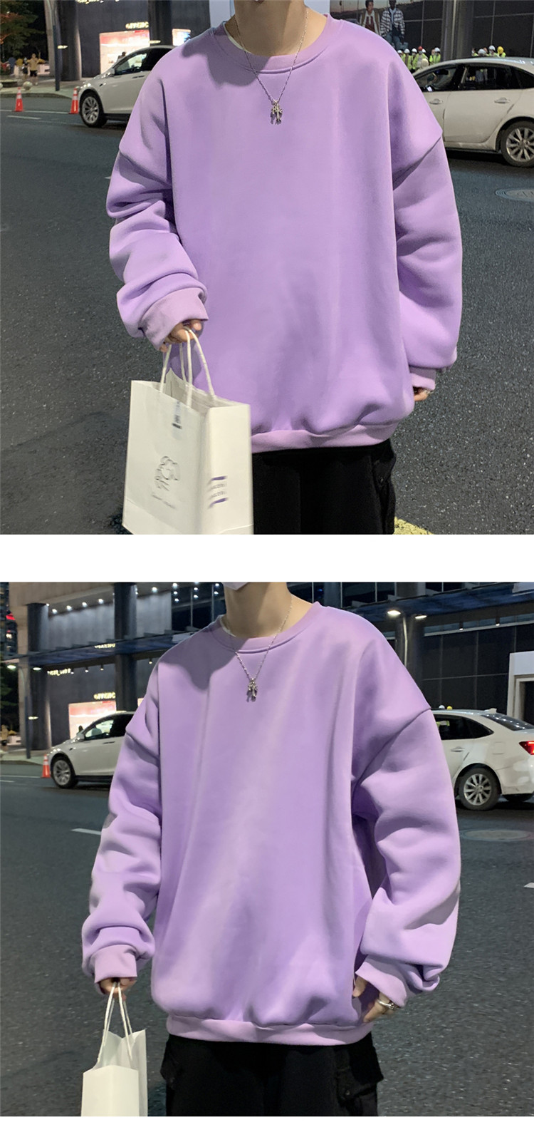 2025秋冬季純色百搭學生潮牌寬松港風情侶款加絨鹽系圓領套頭衛衣