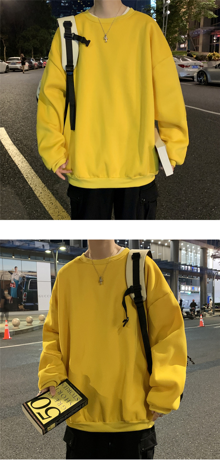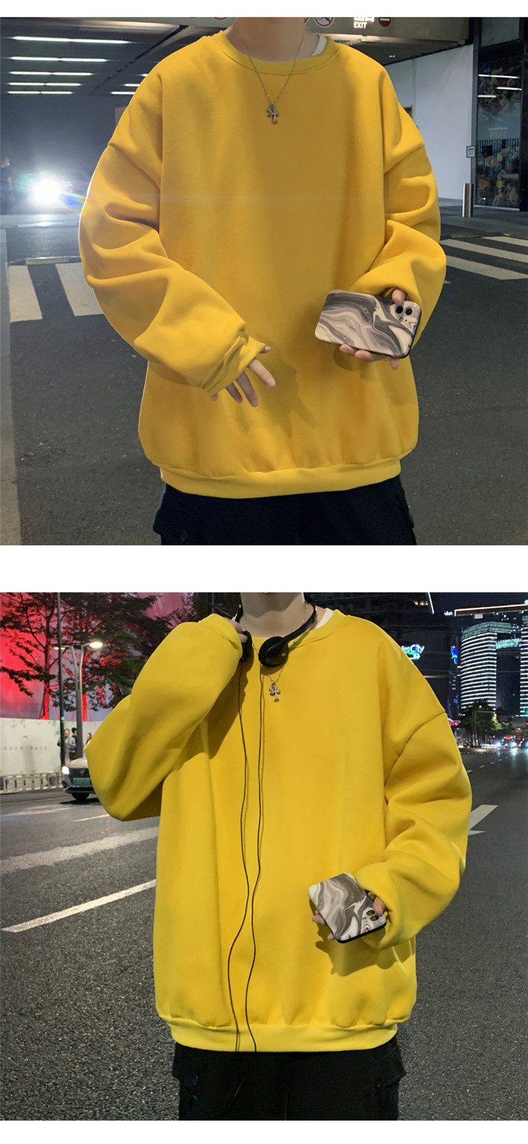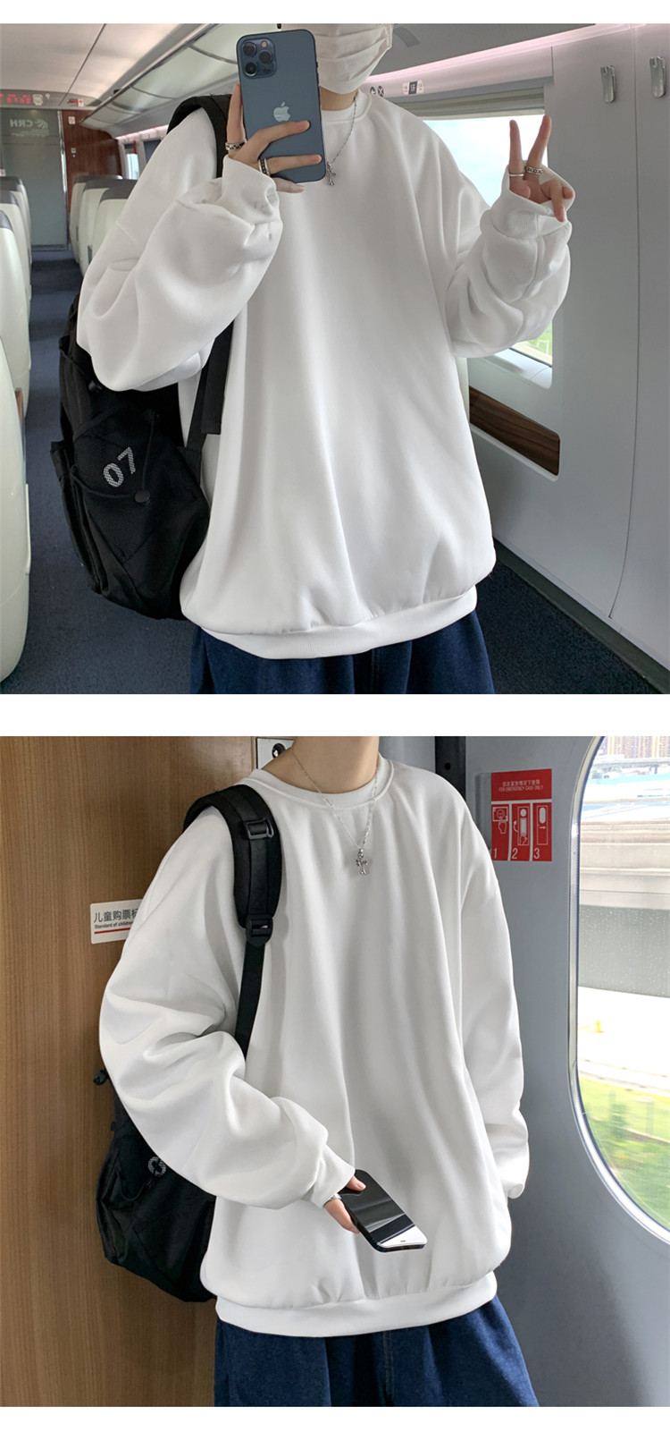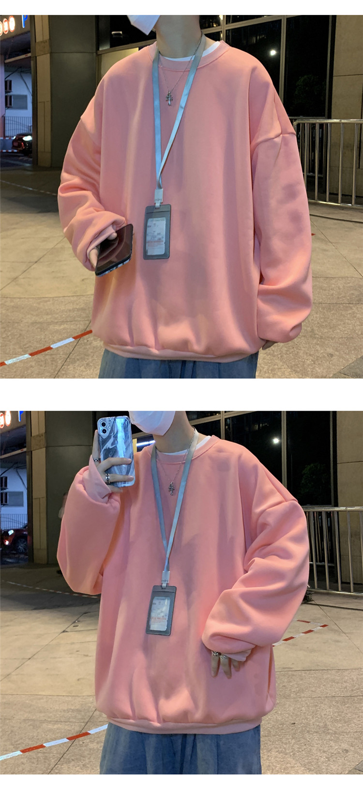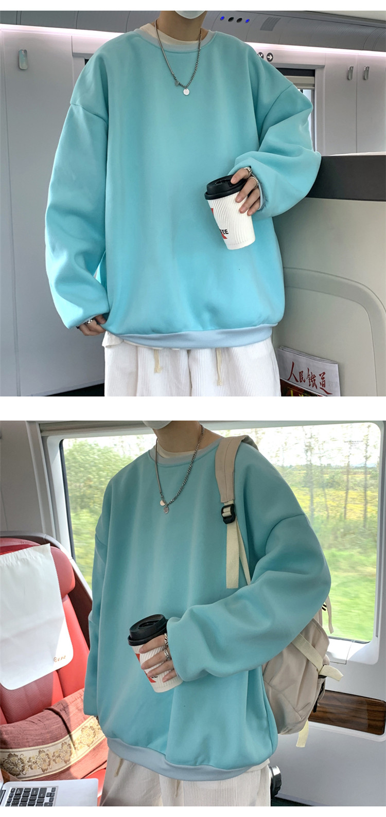 2025秋冬季純色百搭學生潮牌寬松港風情侶款加絨鹽系圓領套頭衛衣