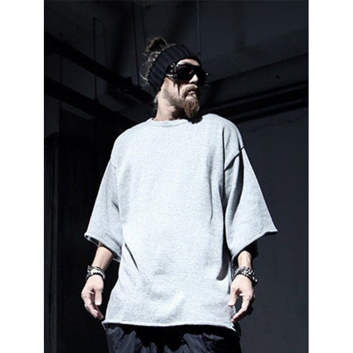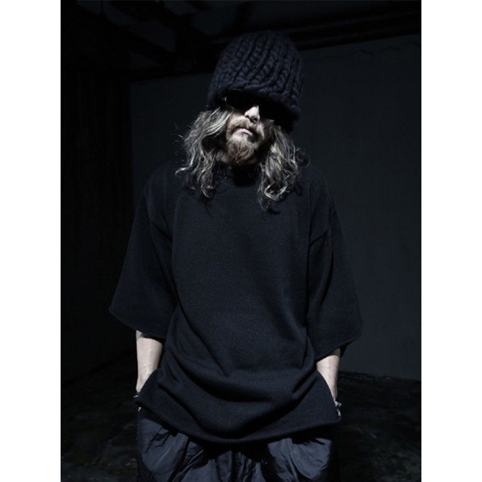暗黑潮牌男士短袖圓領寬松衛衣打底衫大碼 春秋潮流T恤山本耀司風