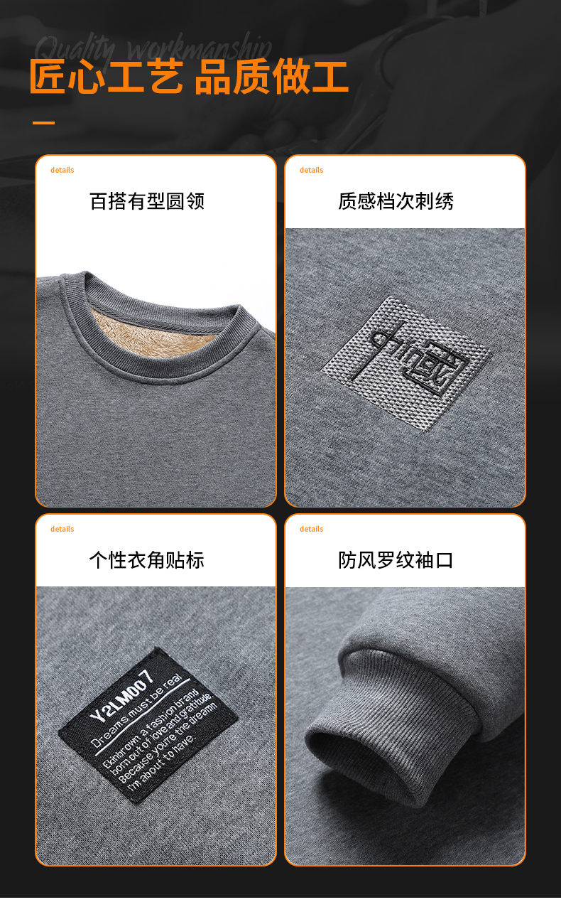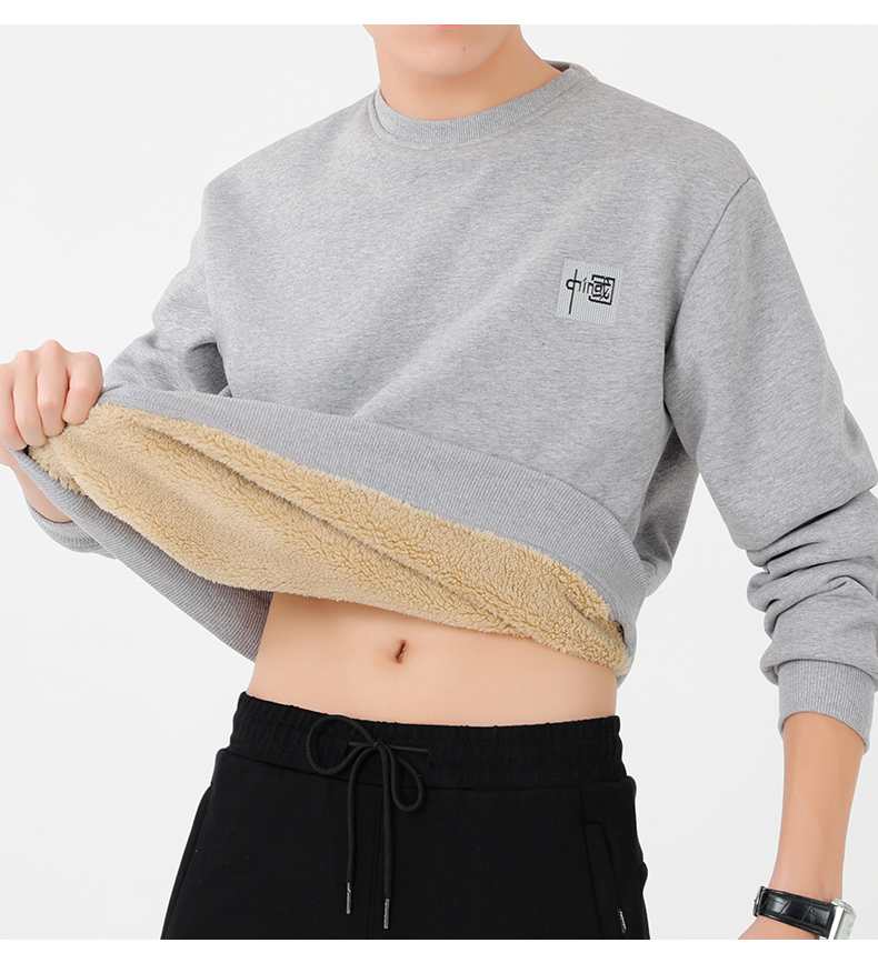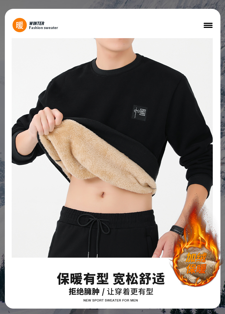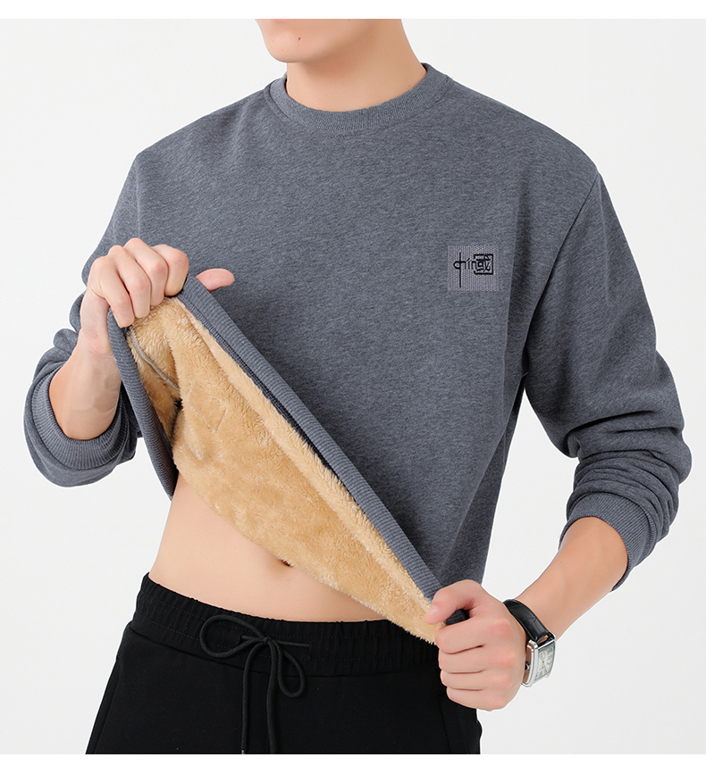 JEEPSPIRIT羊羔絨衛衣男加絨加厚衛衣冬季保暖打底圓領男長袖T恤