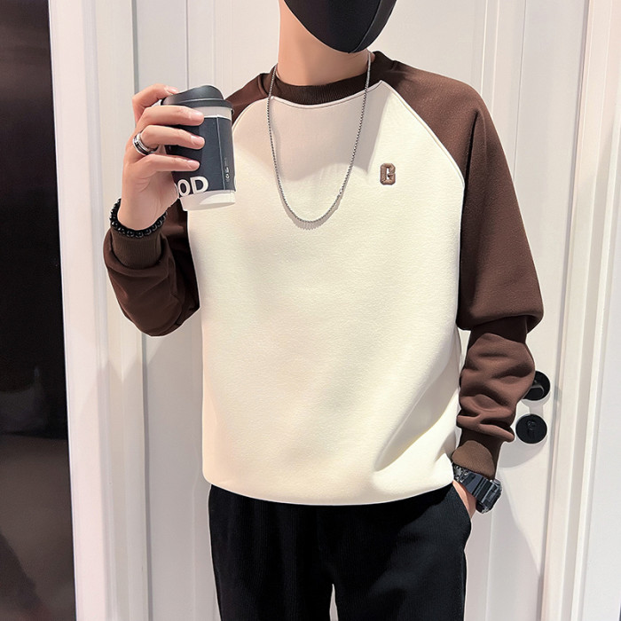 2025新款男裝上衣休閒外套加絨長袖打底衫冬款t春秋衛衣男秋季T恤