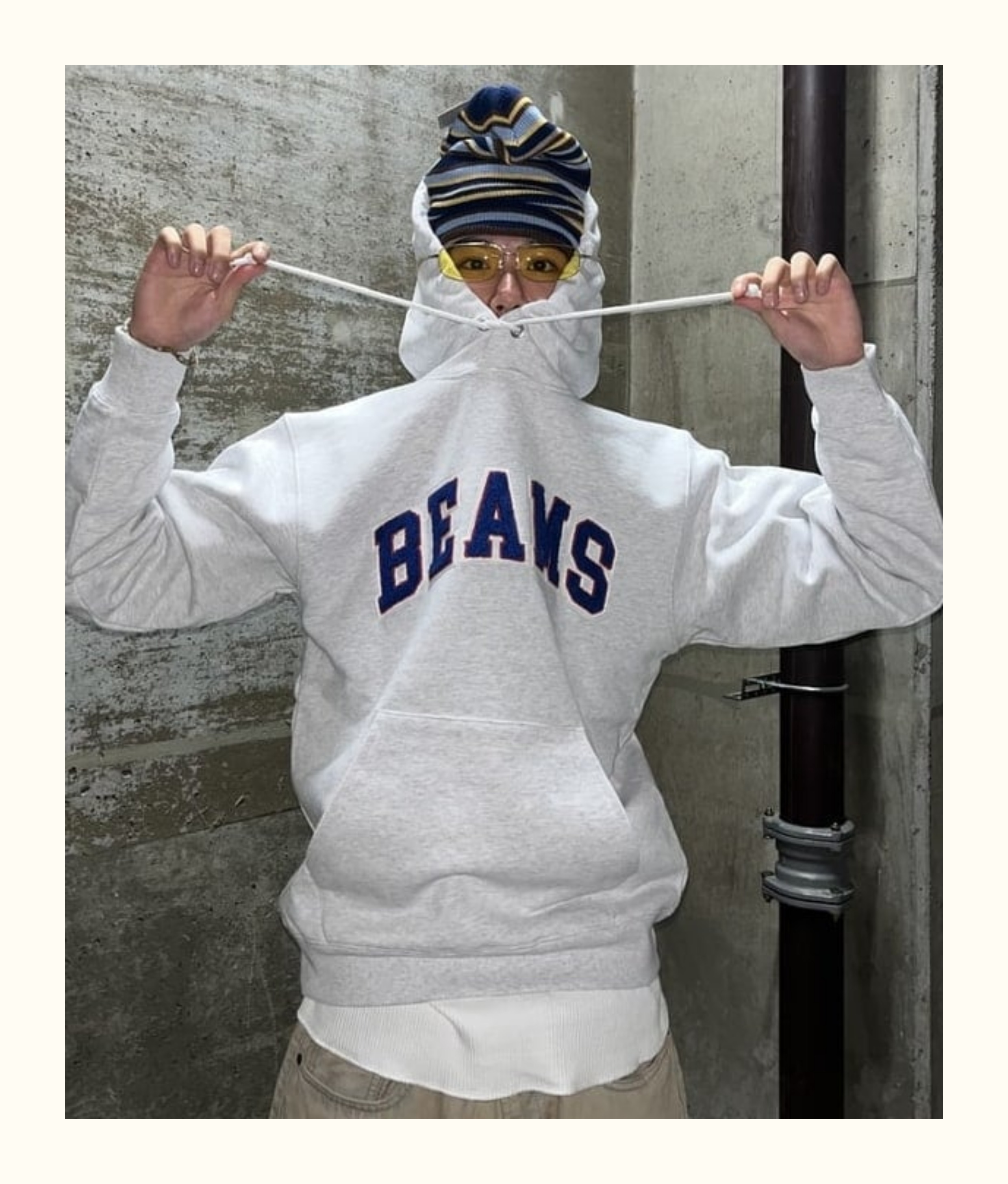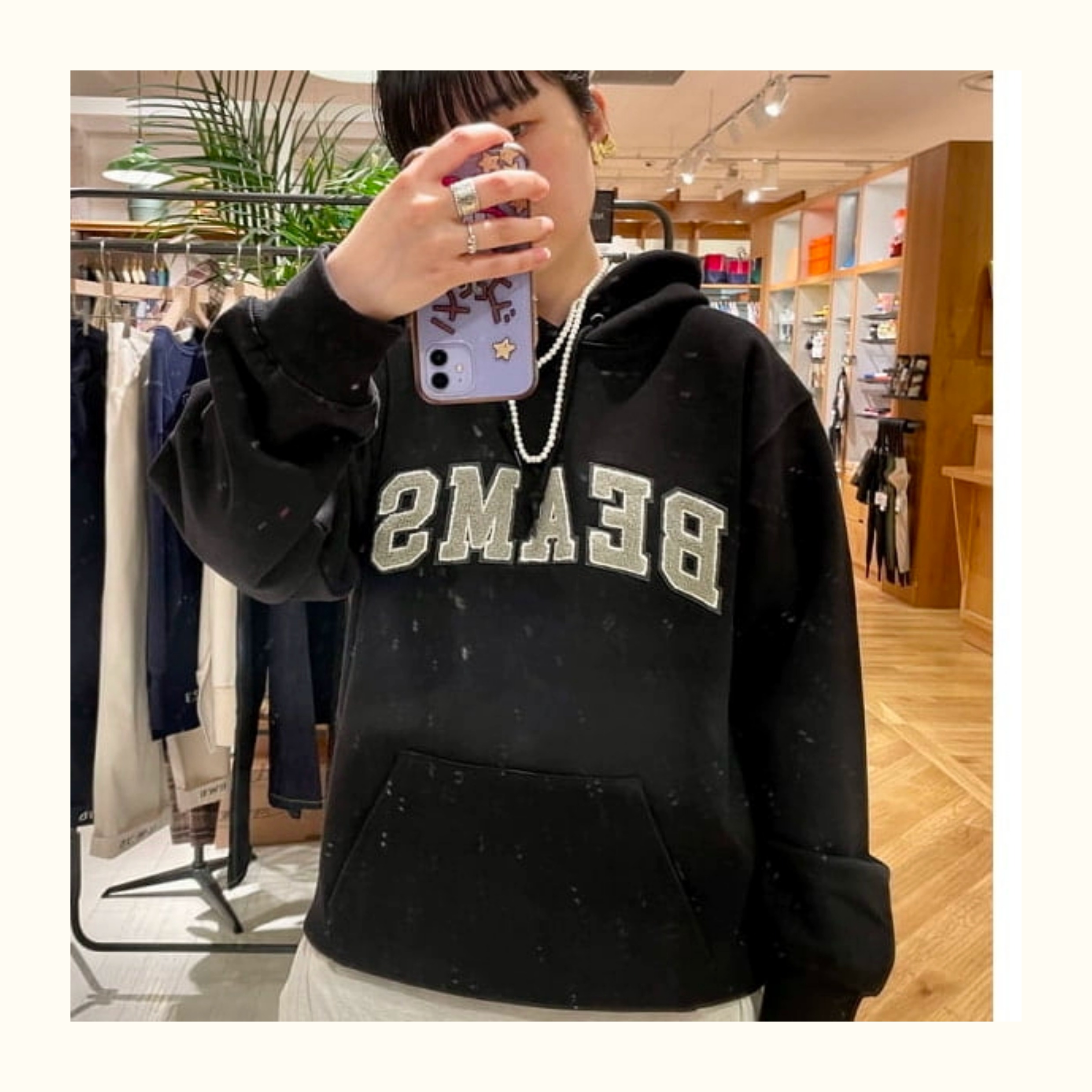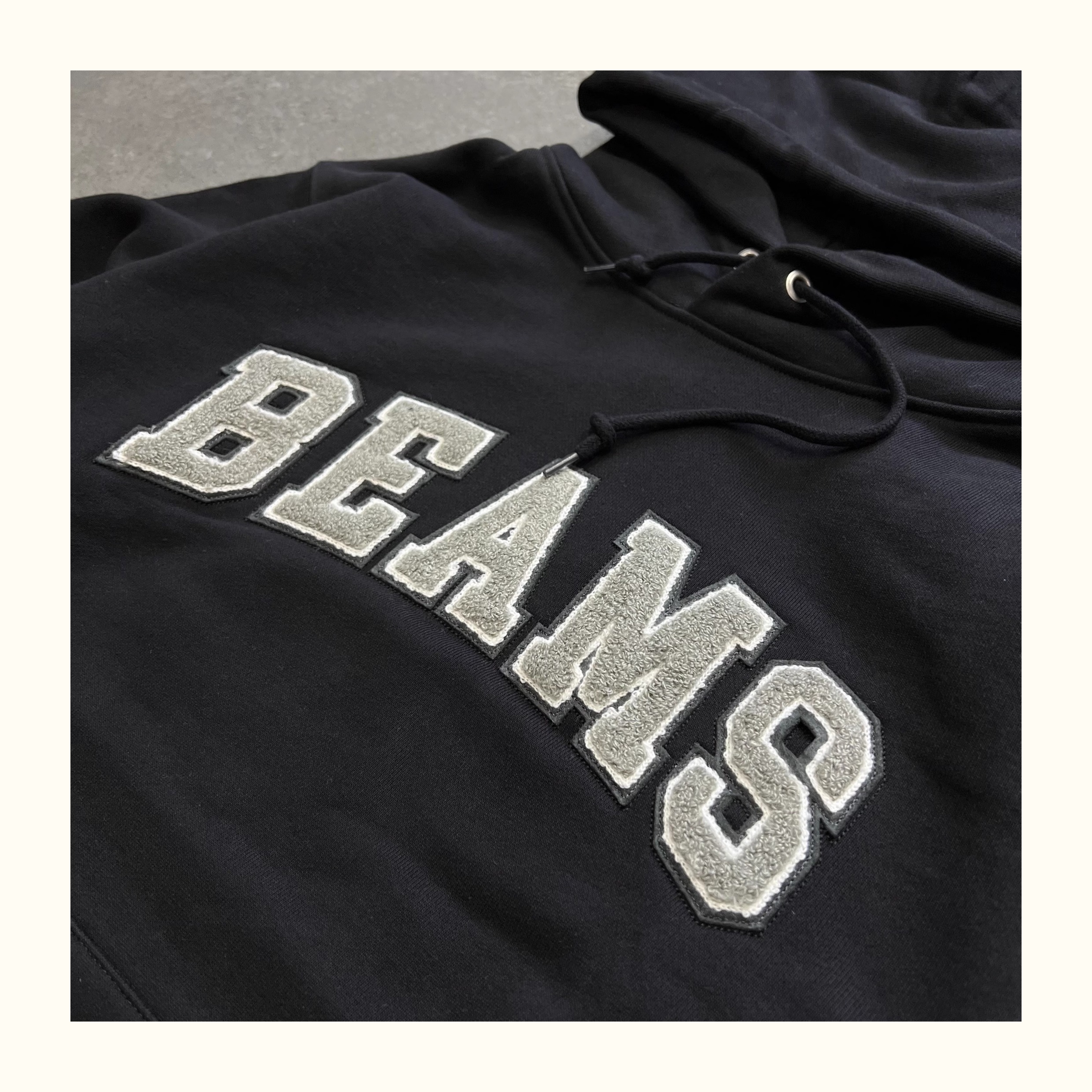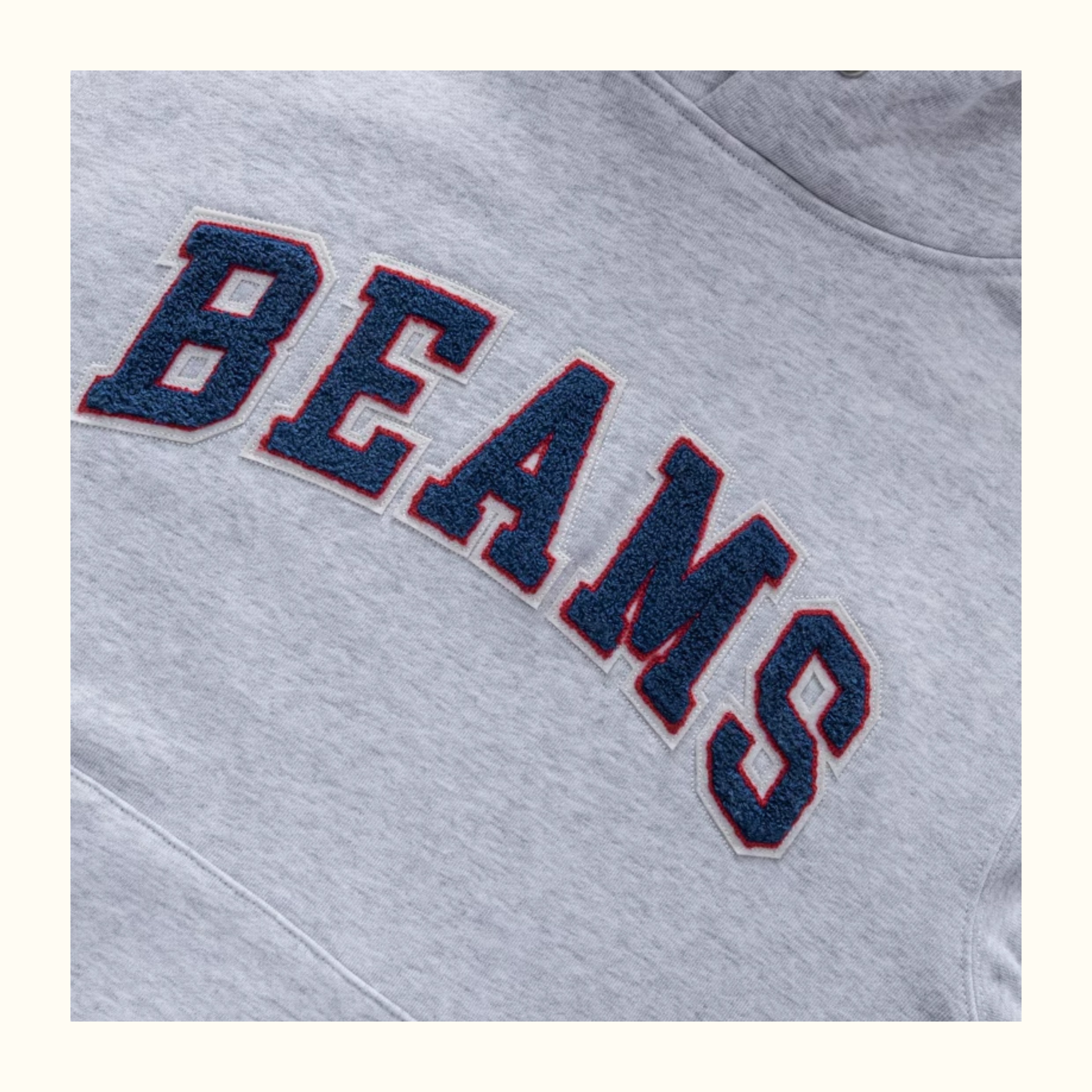 23AW BEAMS純棉寬松休閒復古刺綉字母學院風連帽套頭衛衣男潮