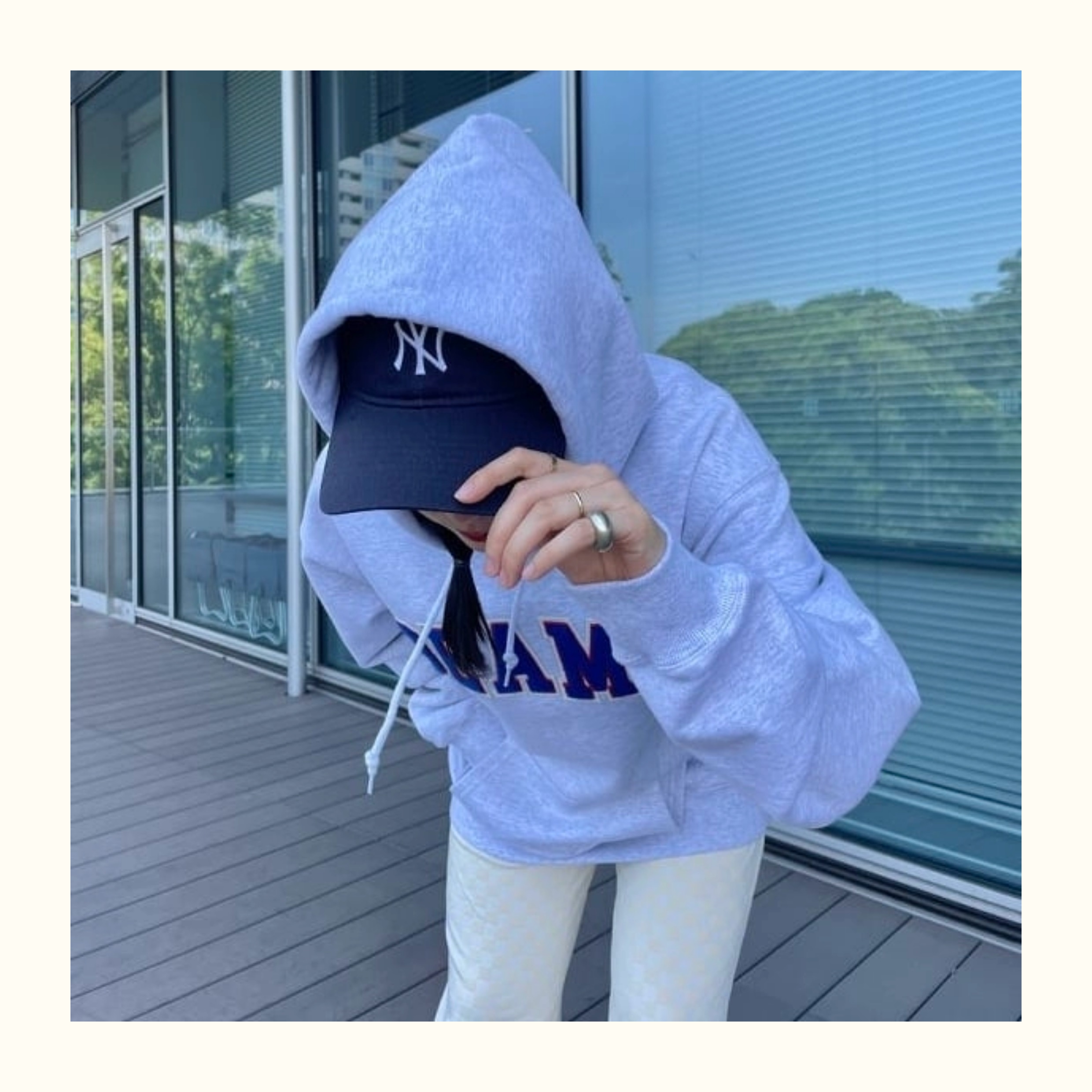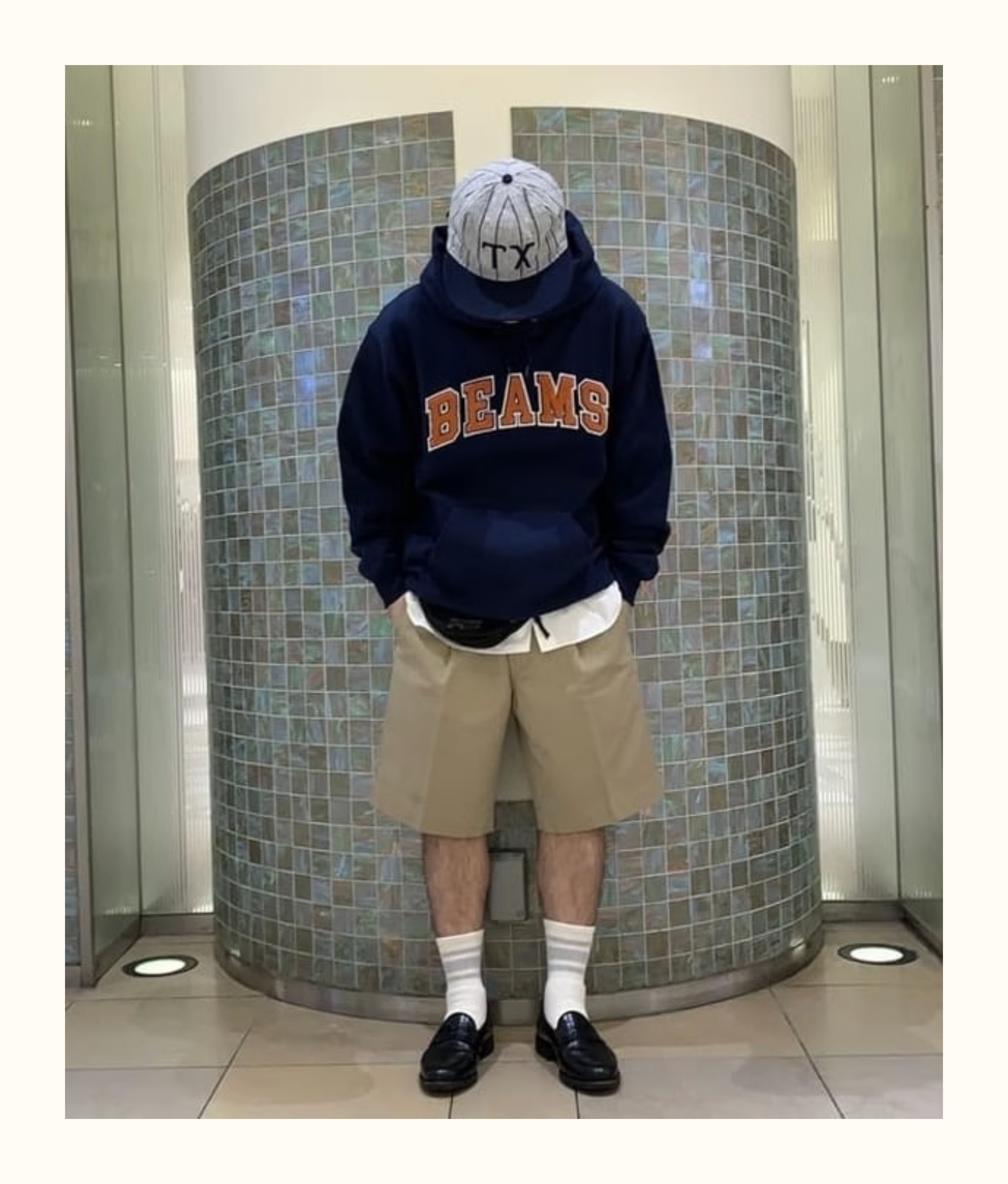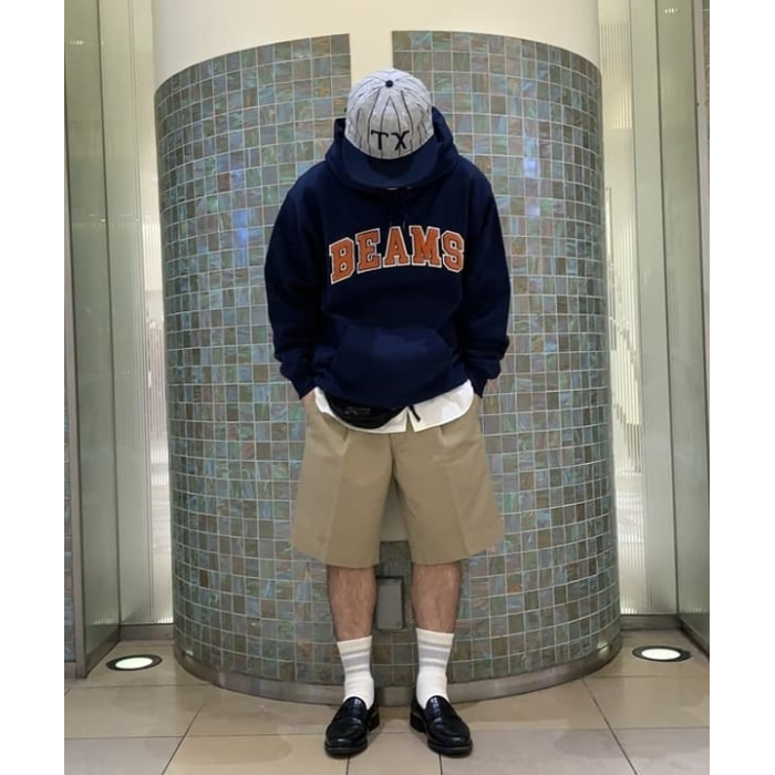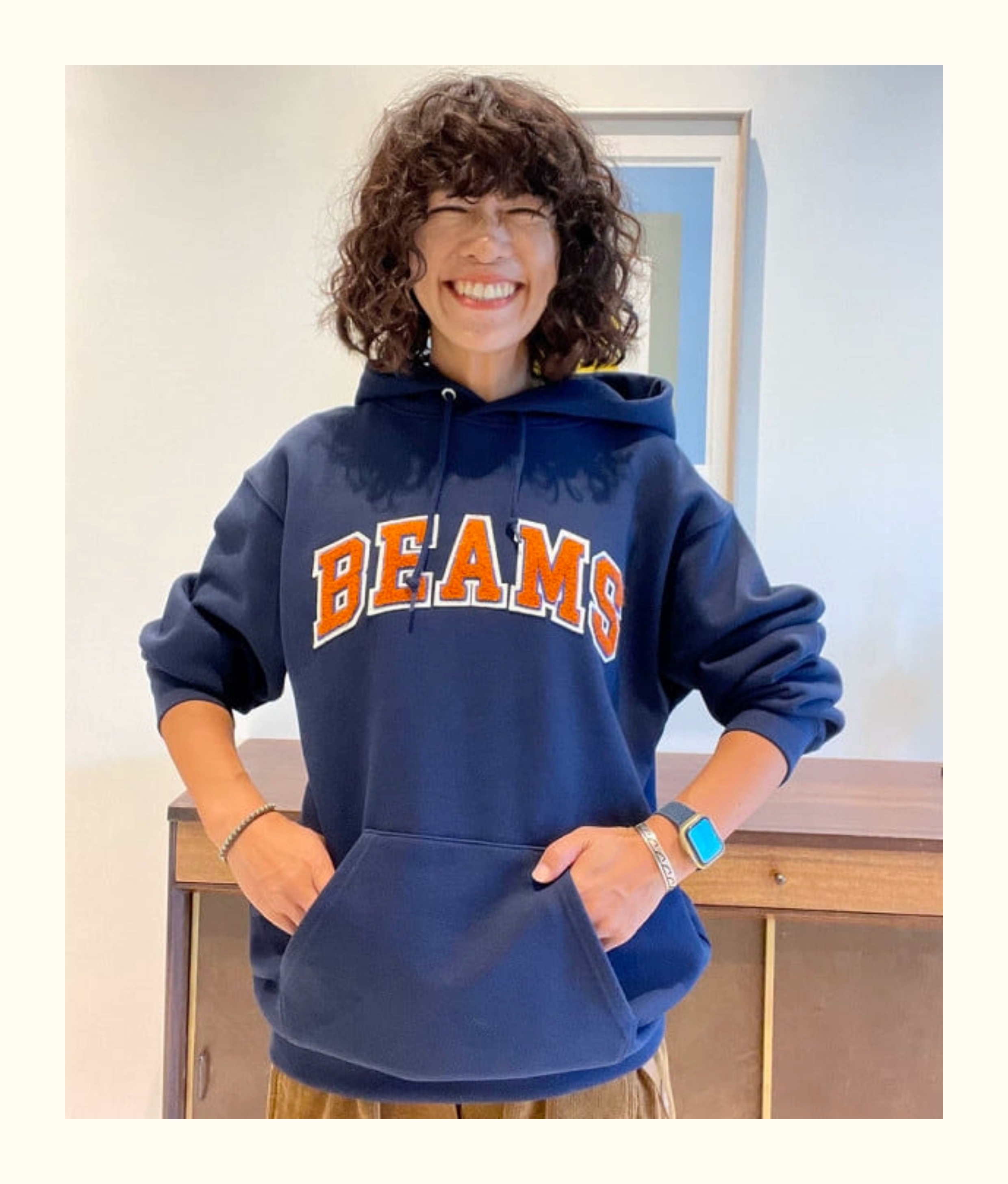 23AW BEAMS純棉寬松休閒復古刺綉字母學院風連帽套頭衛衣男潮