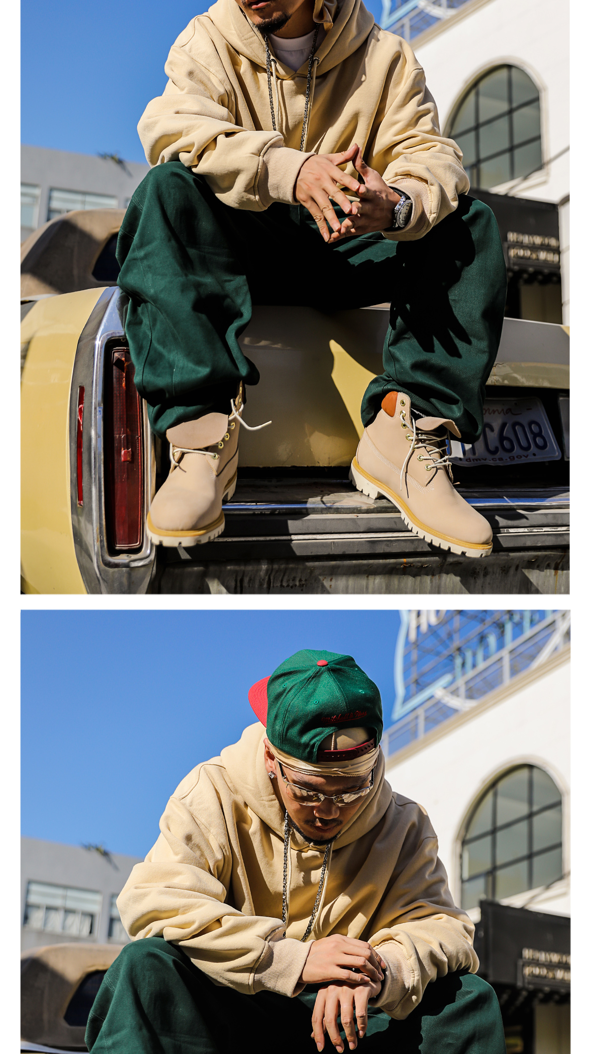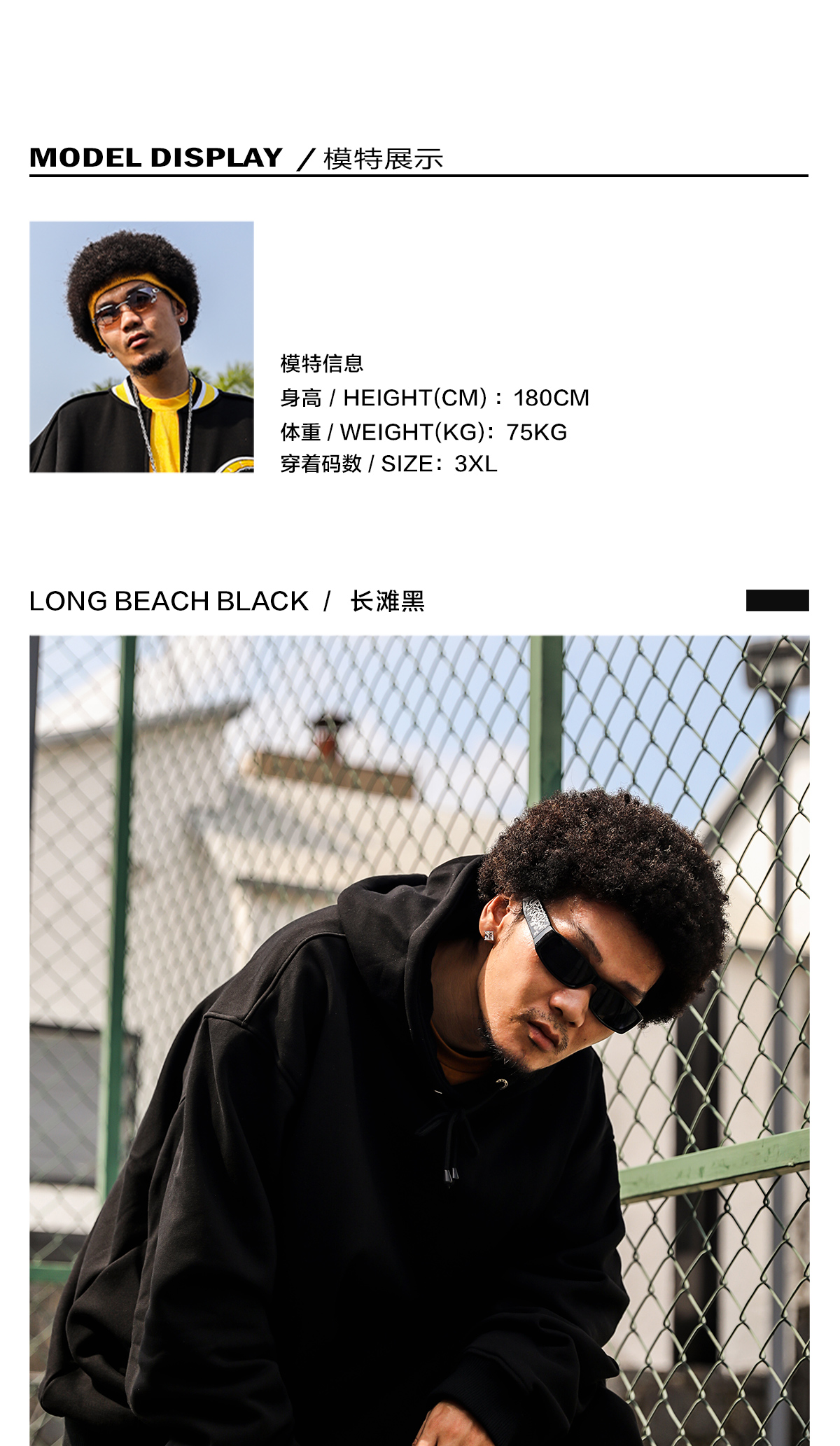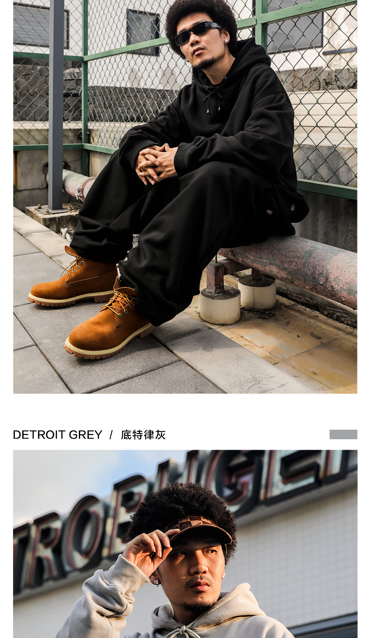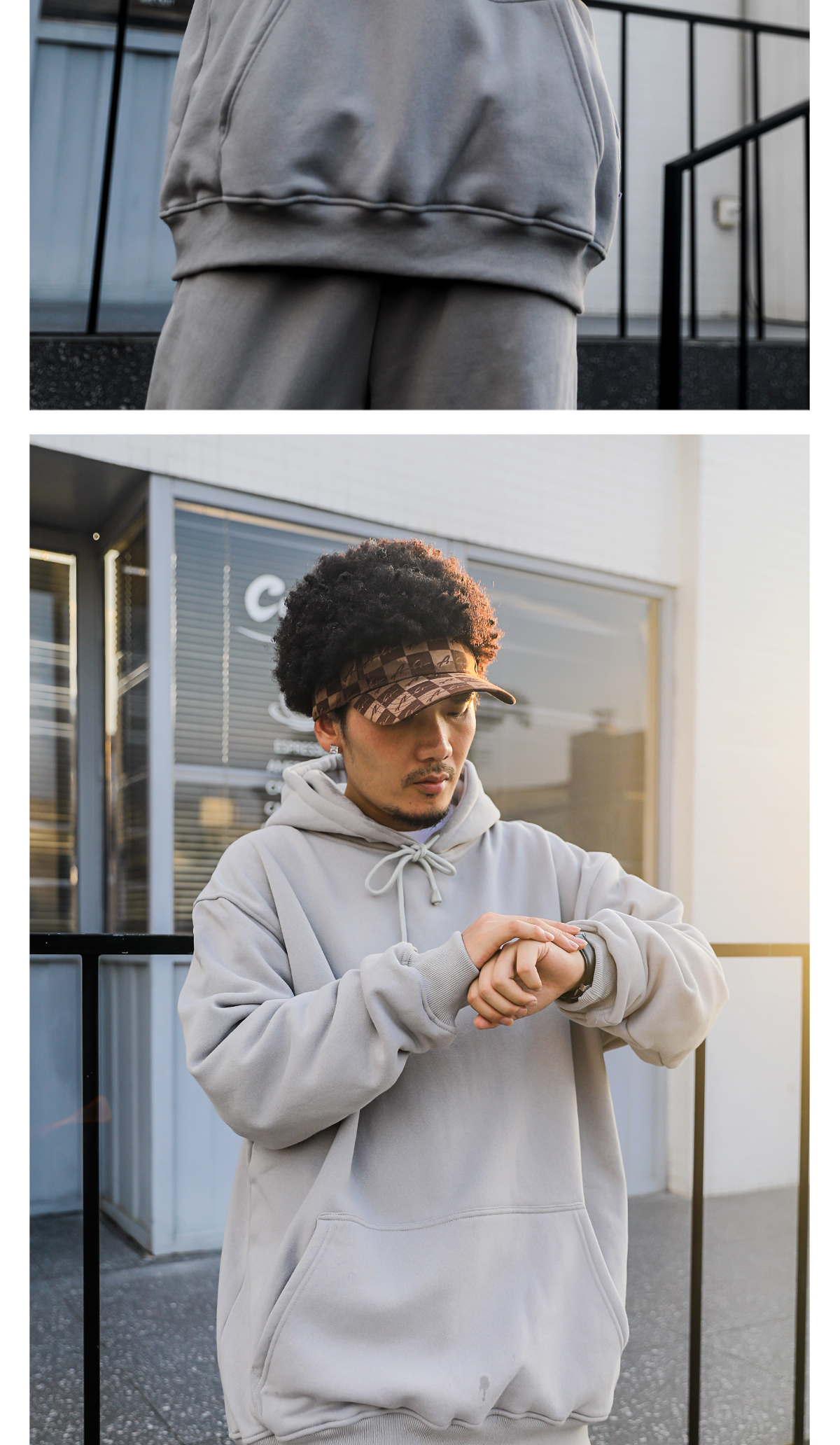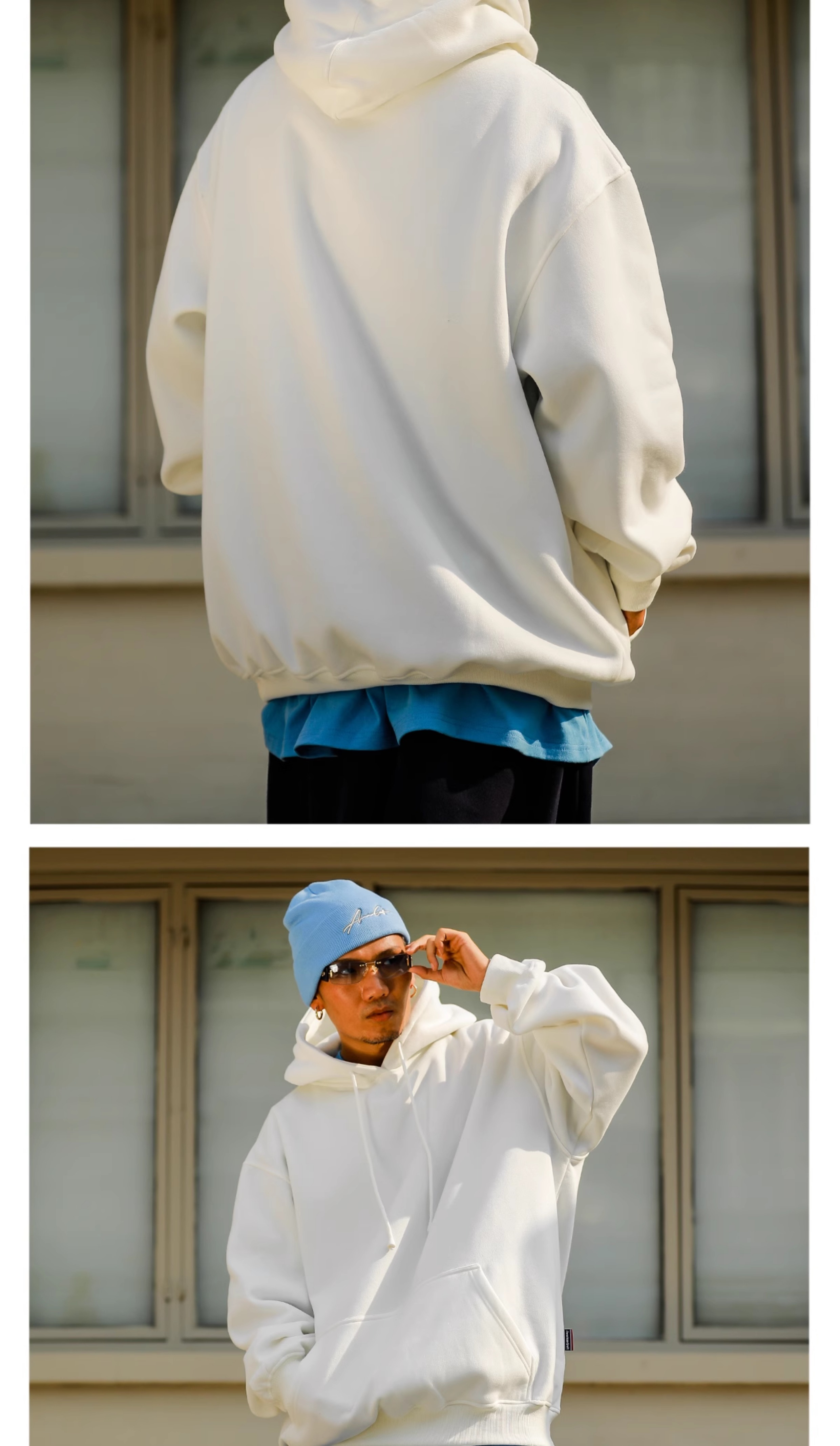 hiphop純色加絨帽衫嘻哈說唱街舞90s美式街頭寬松套頭衛衣男秋冬