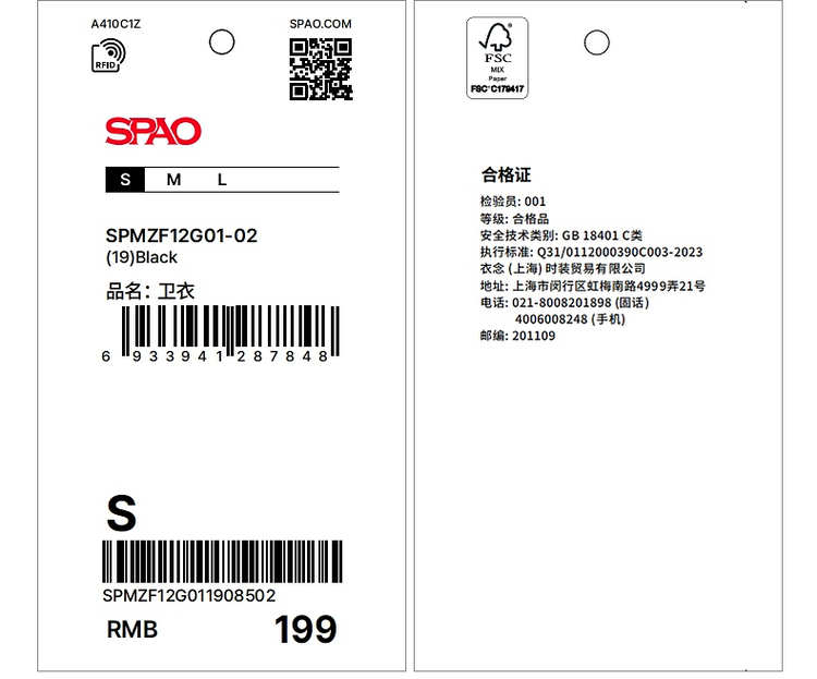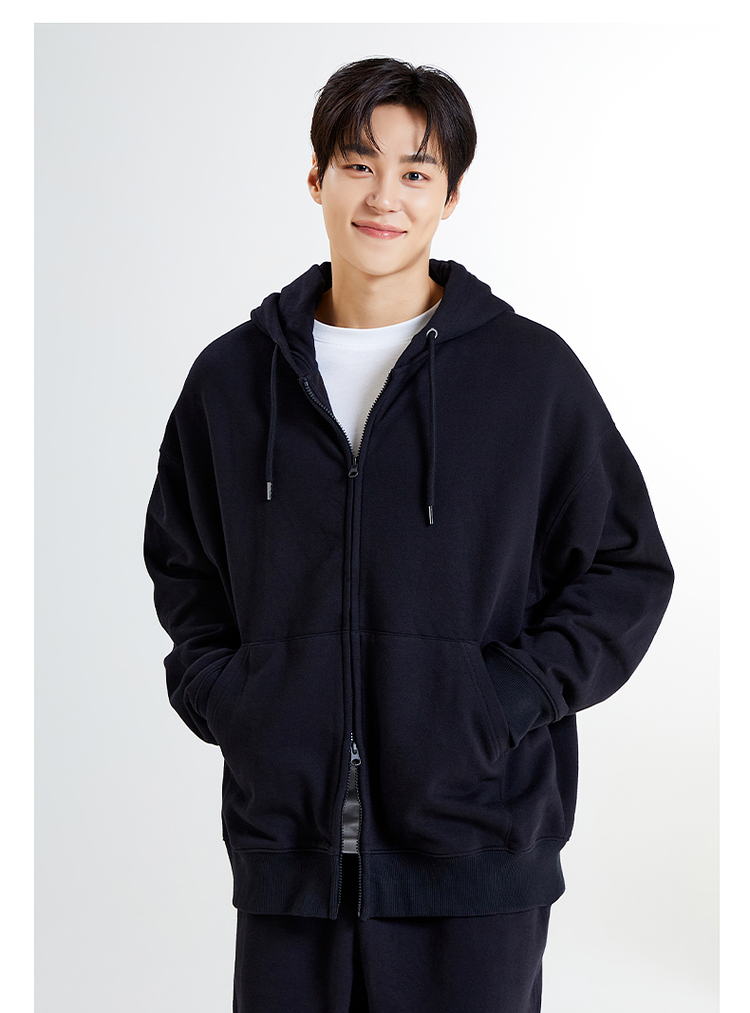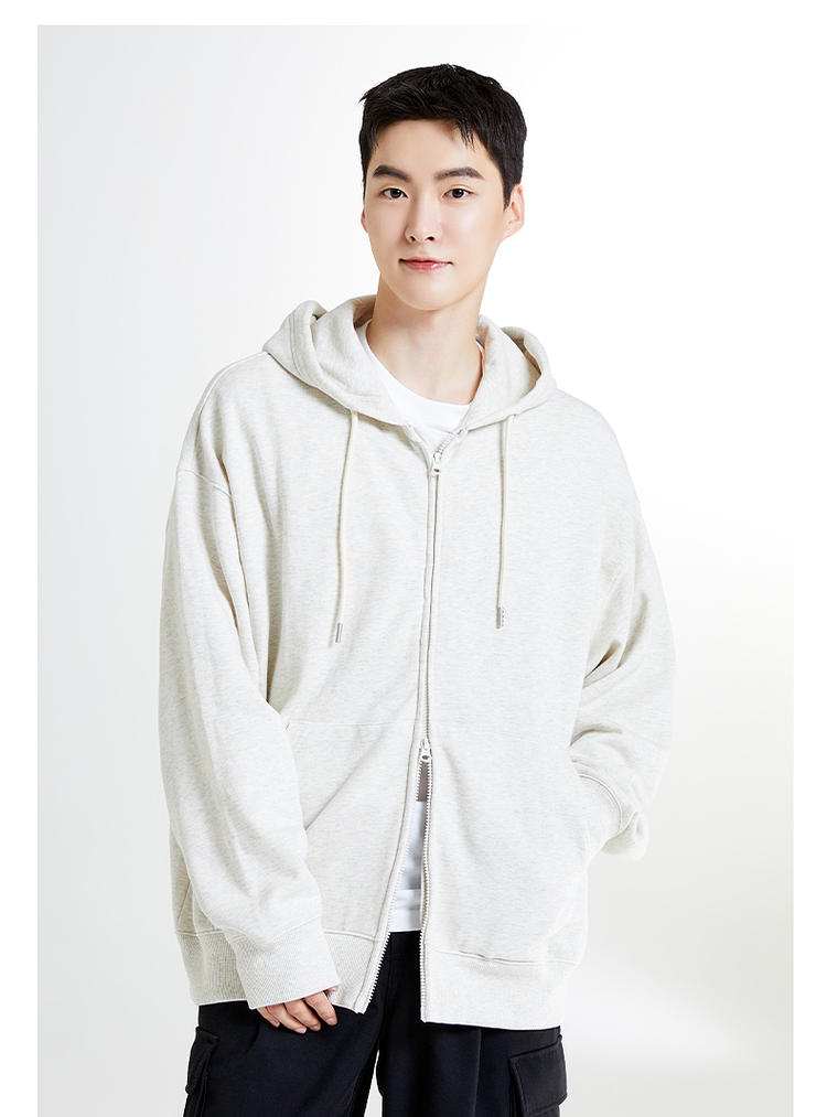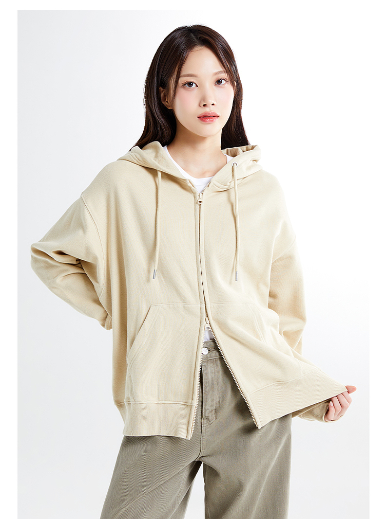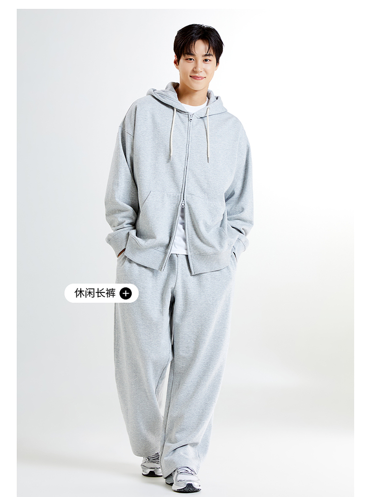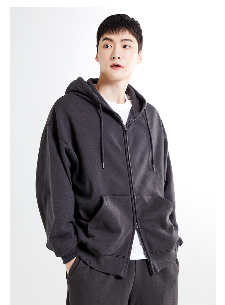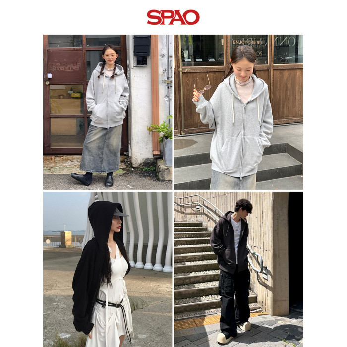 SPAO韓國同款秋季休閒開衫男女同款薄絨寬松落肩連帽衛衣外套上衣