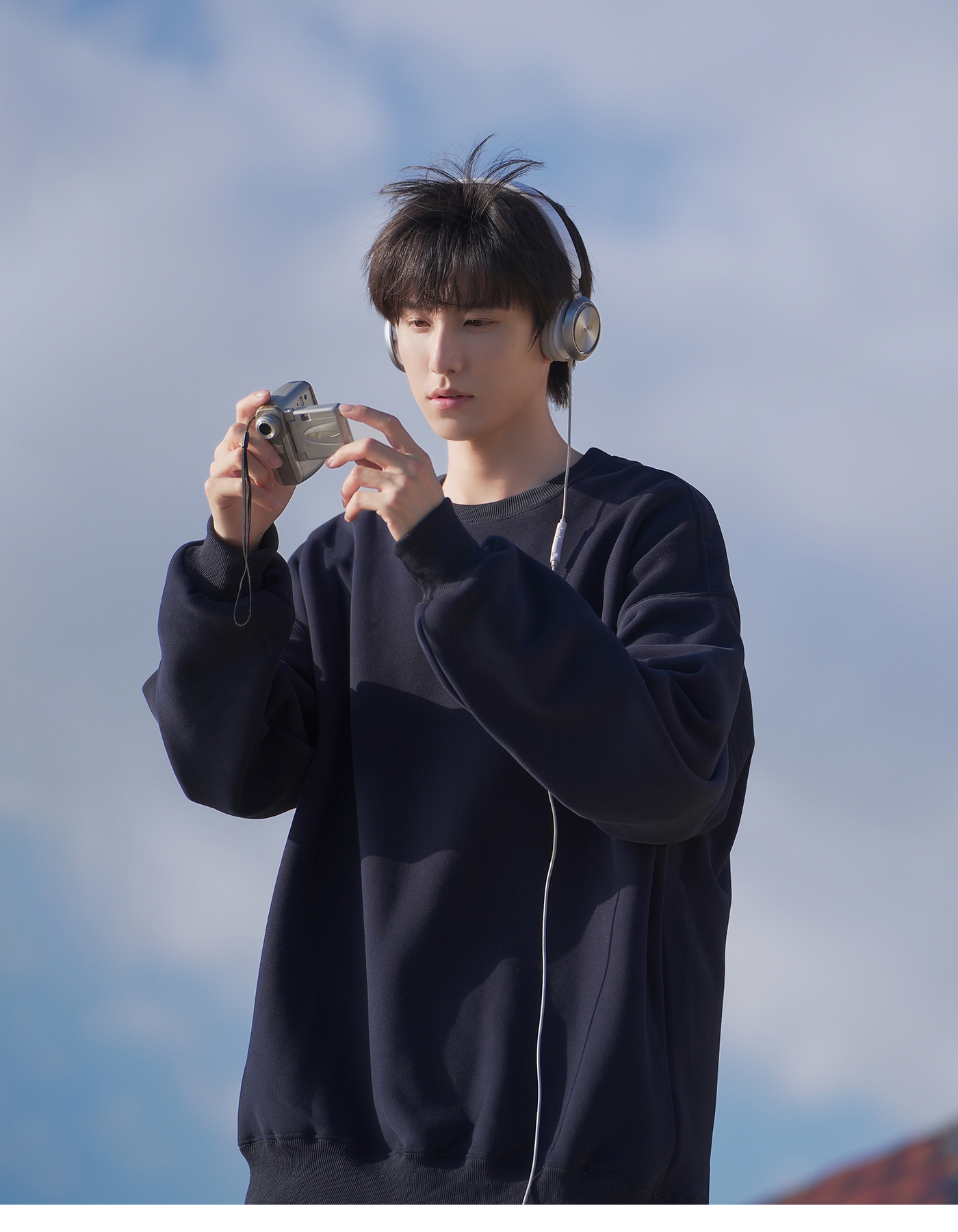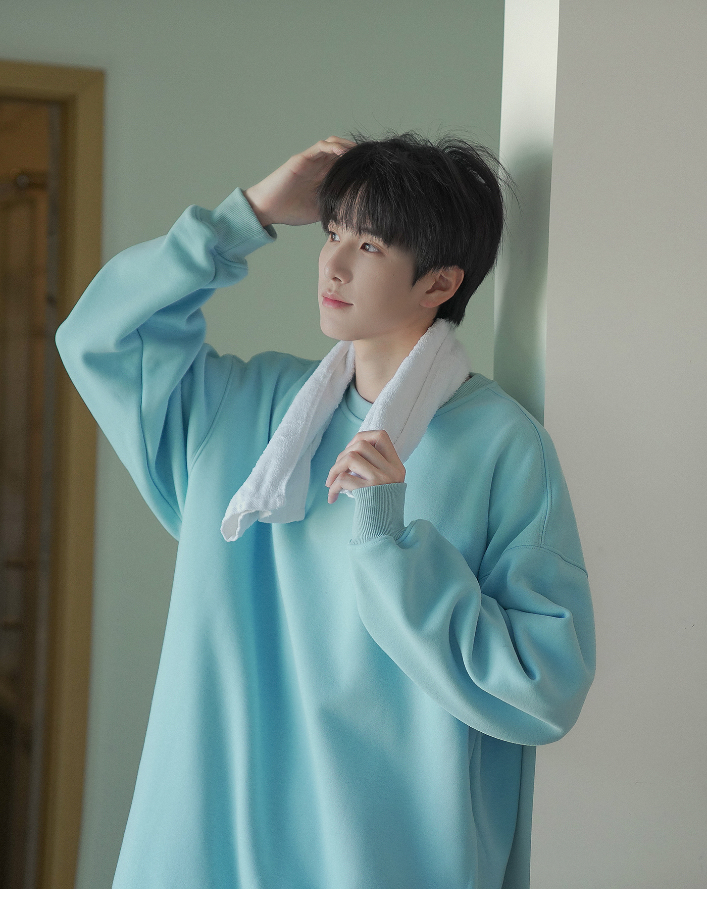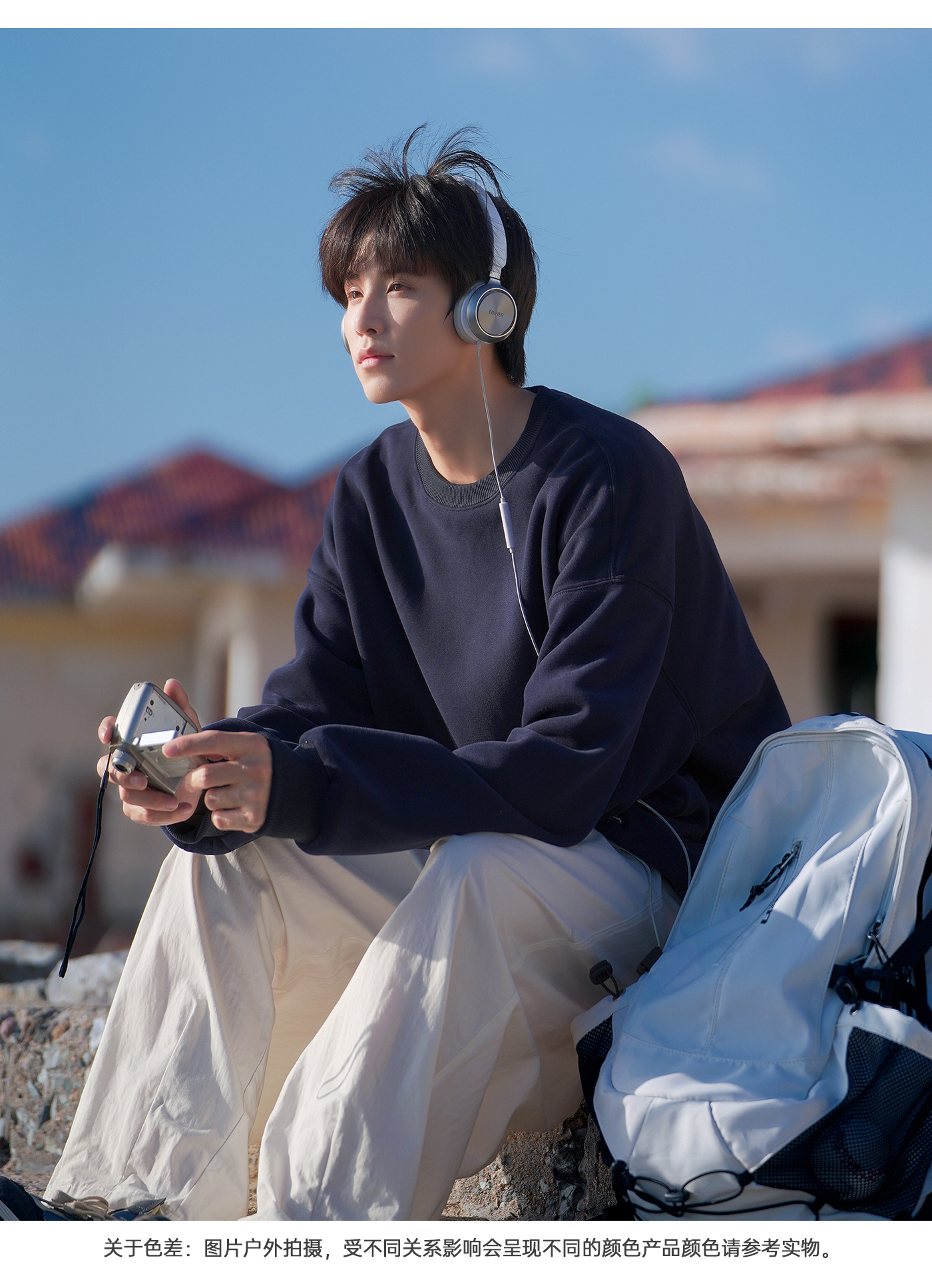 @港仔文藝男 420g重磅圓領衛衣男秋冬款復古純色oversize套頭衫