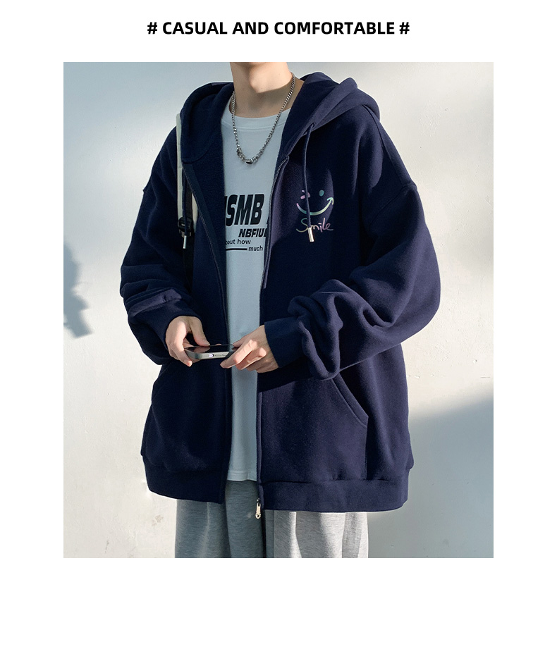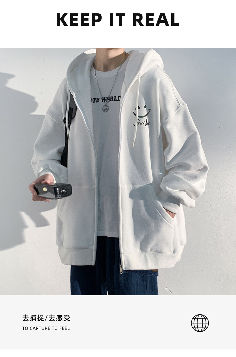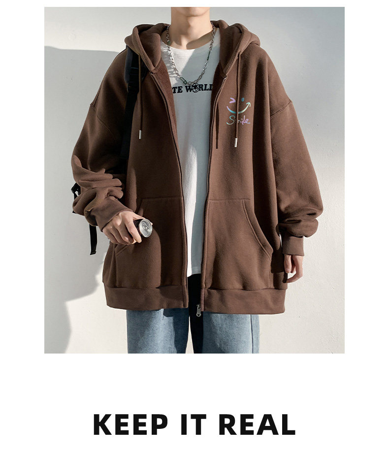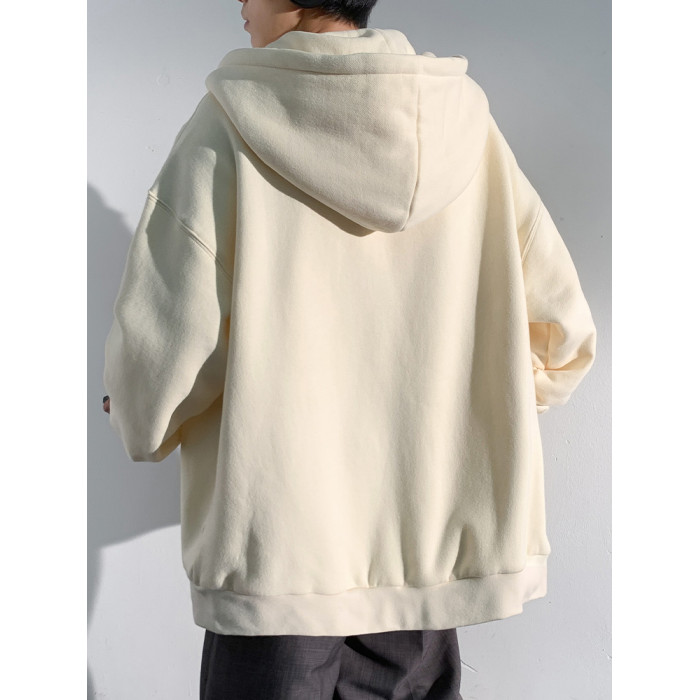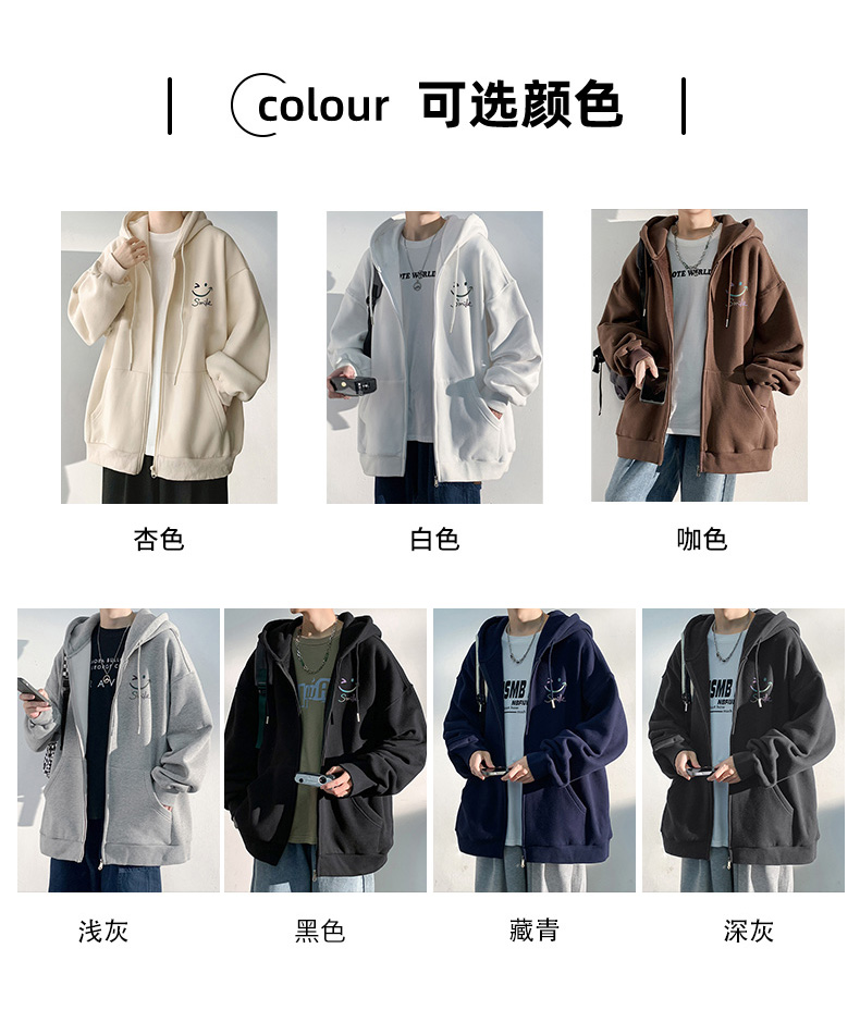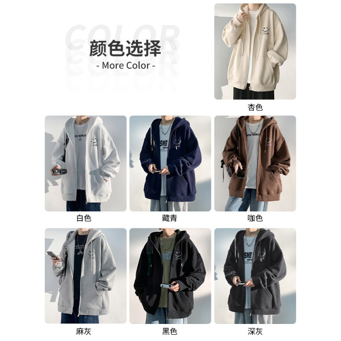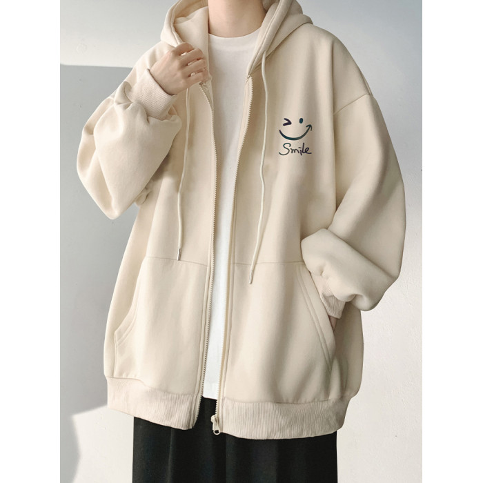 杏色開衫外套男士春秋冬季新款加絨加厚休閒連帽衛衣男生拉鍊夾克