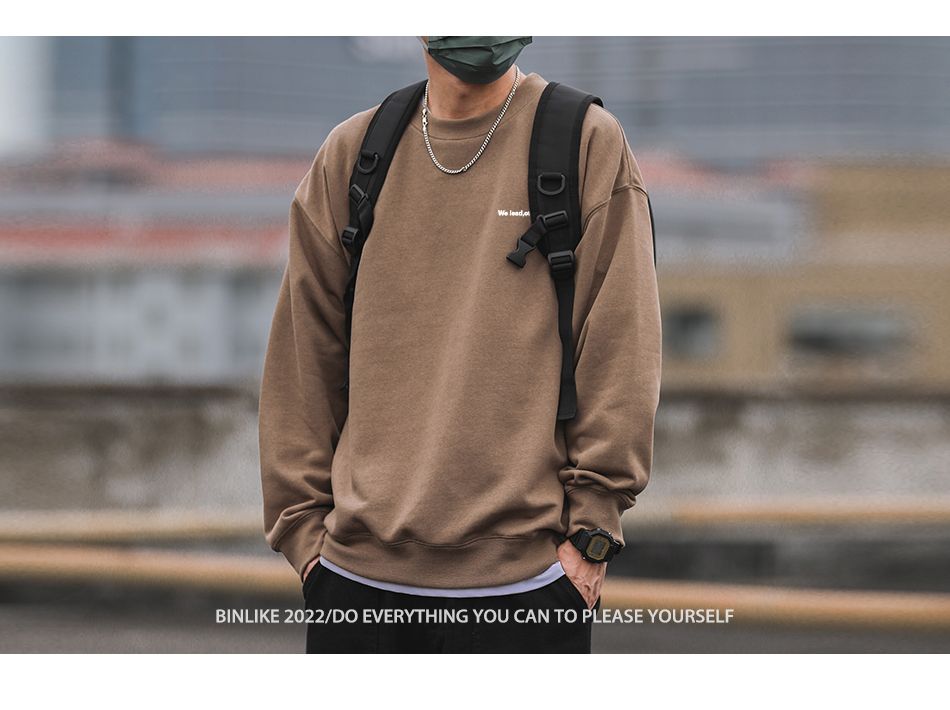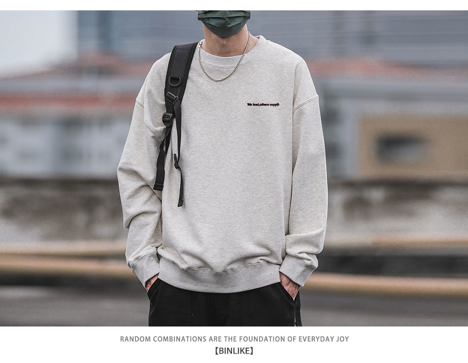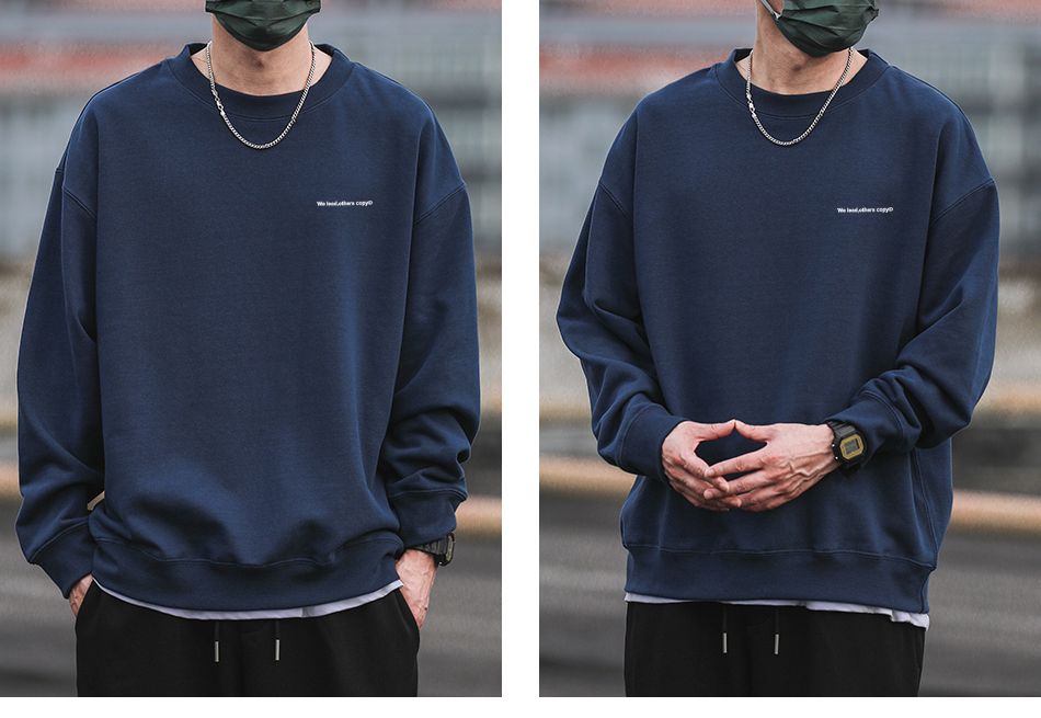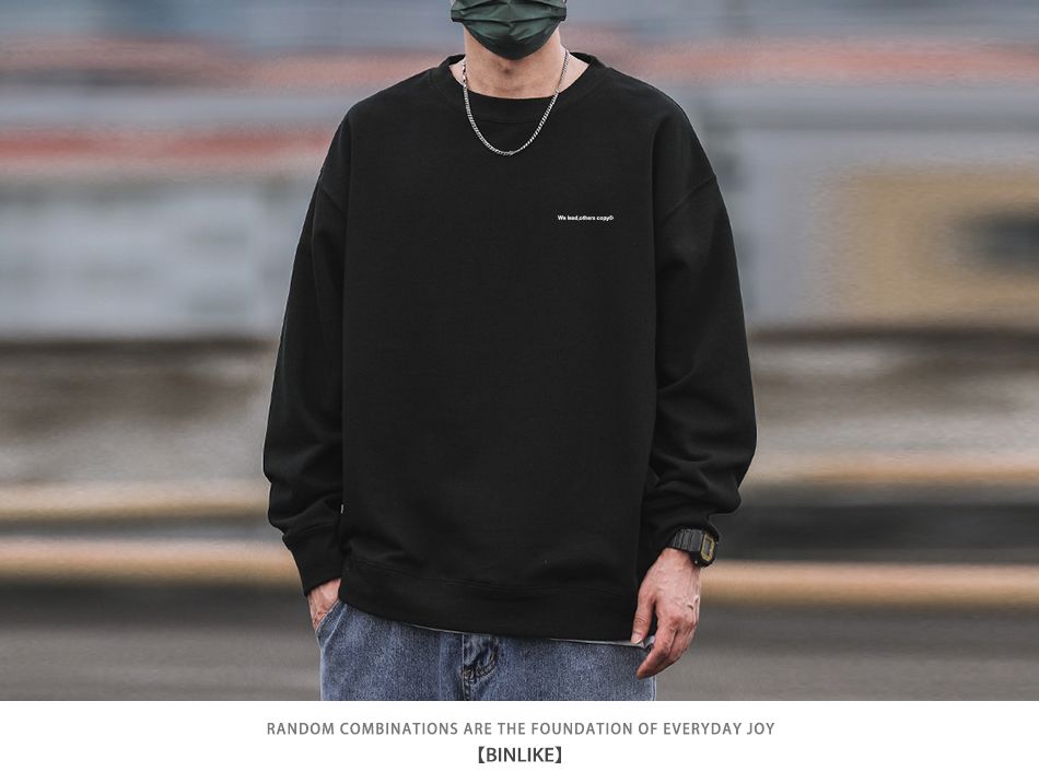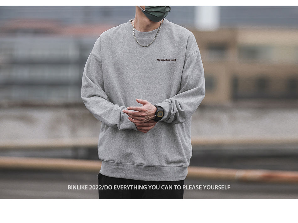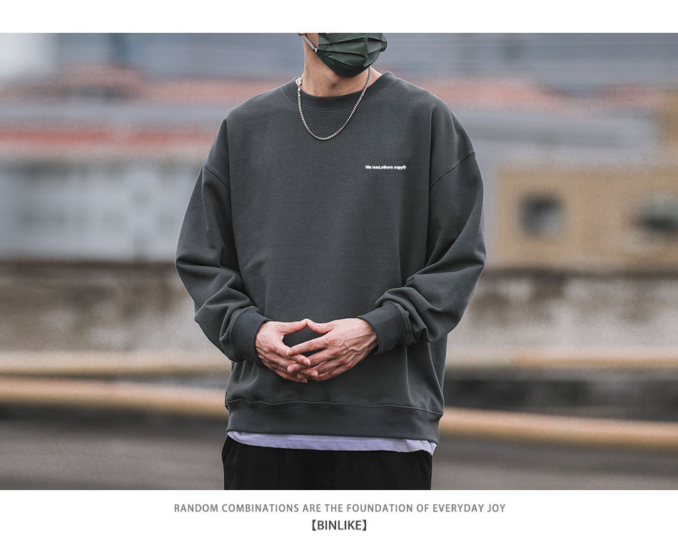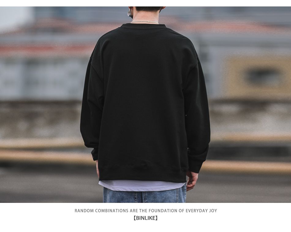 重磅420g美式復古潮牌圓領衛衣男百搭寬松休閒長袖打底衫學生外套