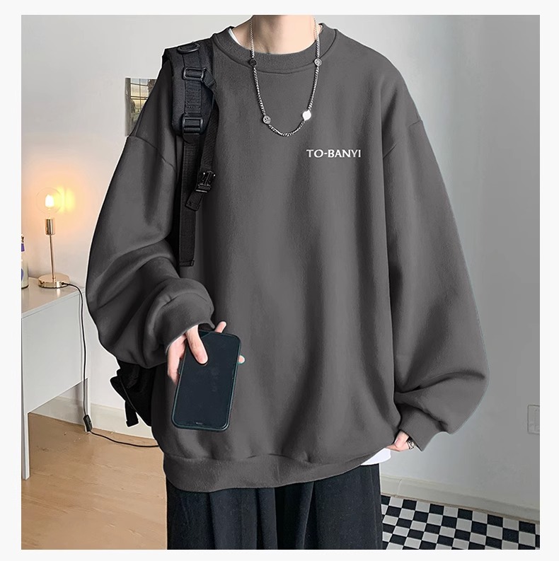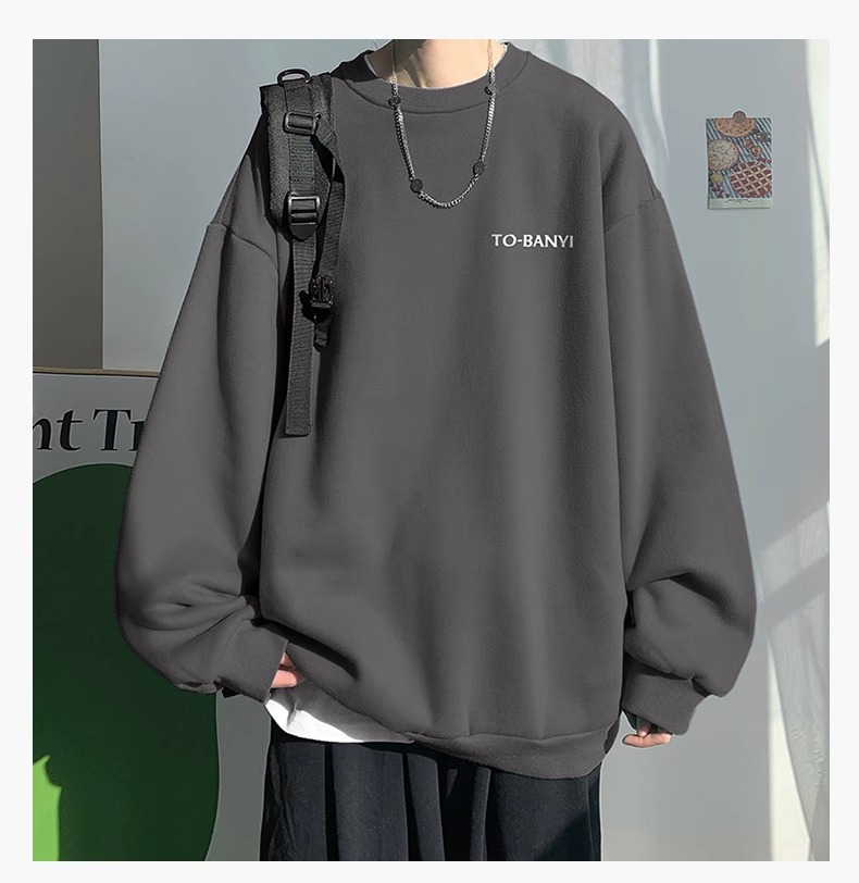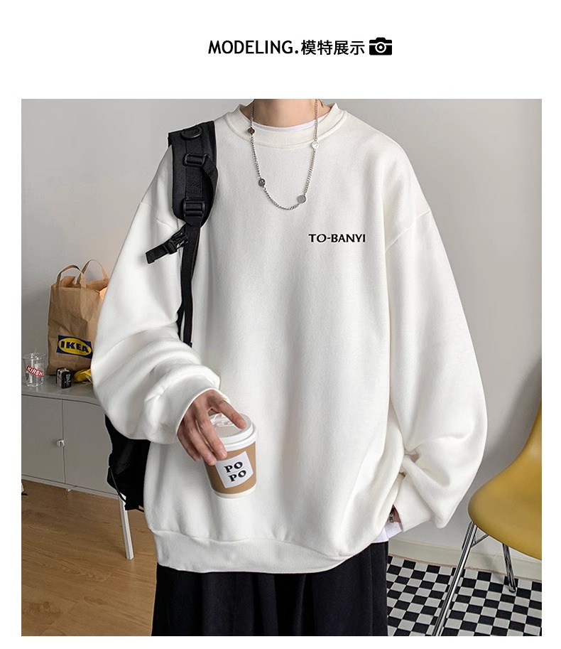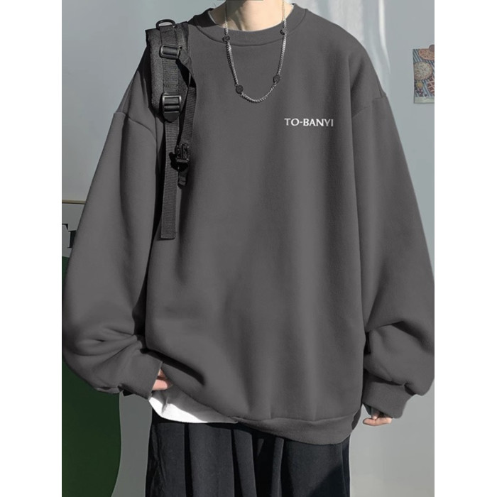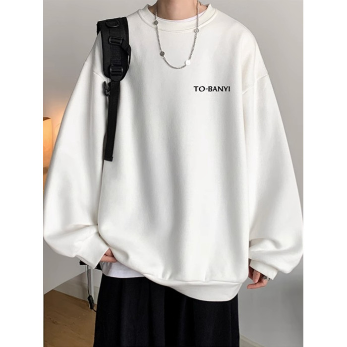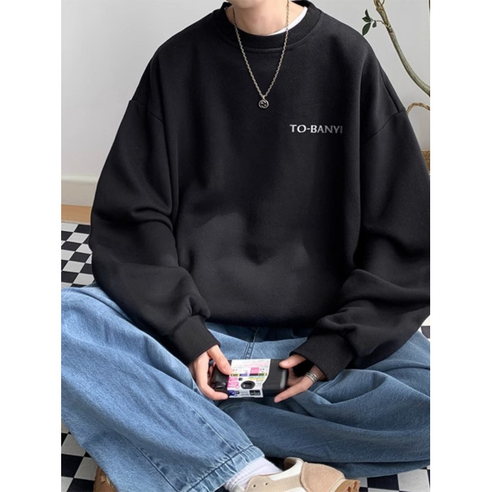 重磅棉簡約無帽圓領衛衣男士秋冬潮流牌字母港風Oversize寬松套頭