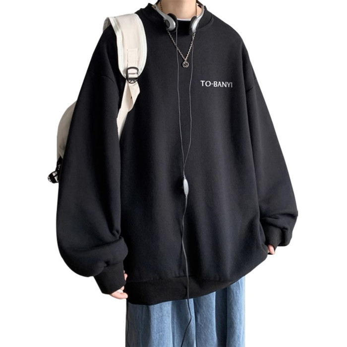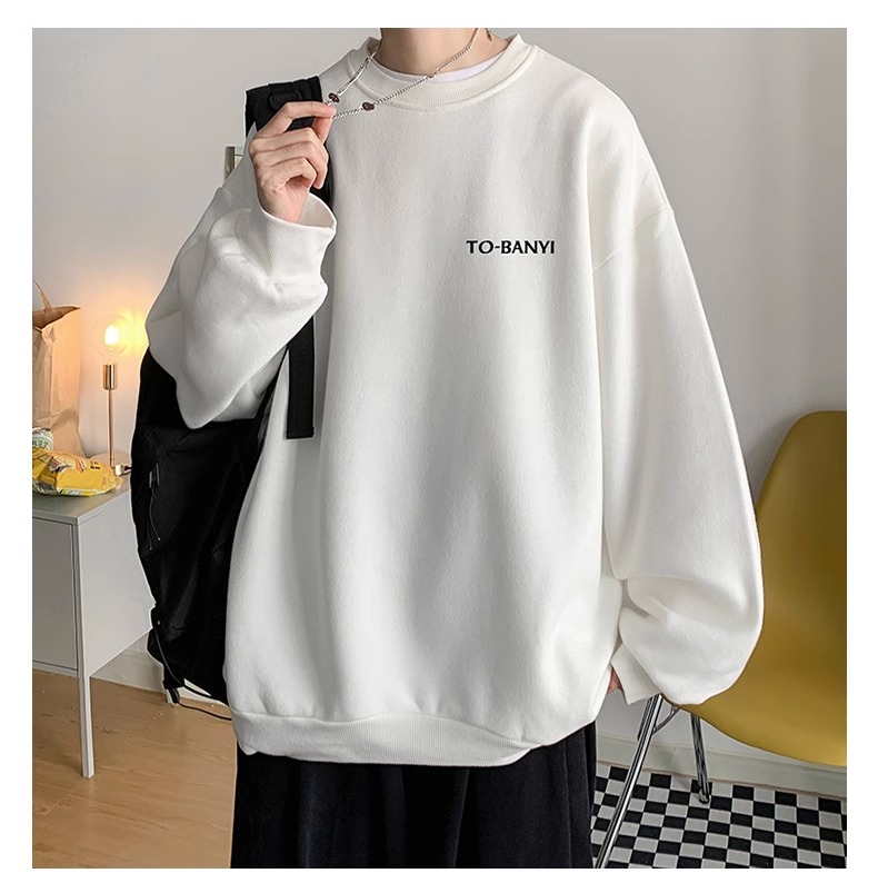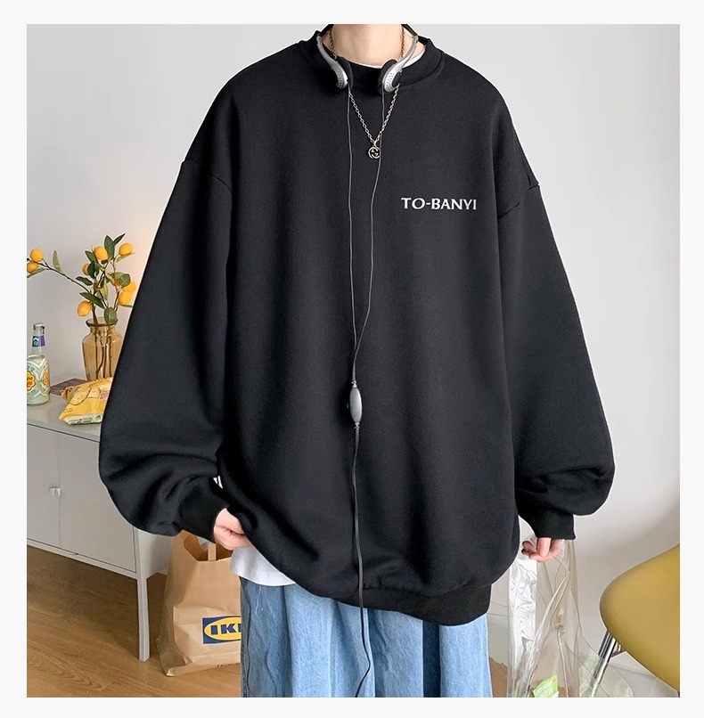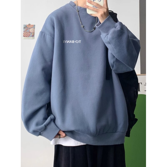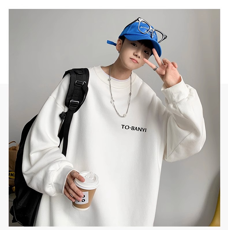 重磅棉簡約無帽圓領衛衣男士秋冬潮流牌字母港風Oversize寬松套頭