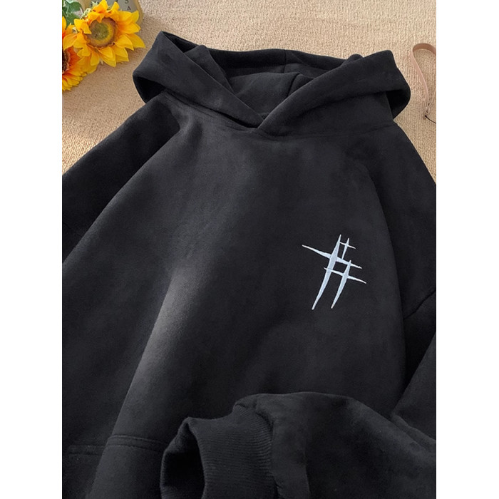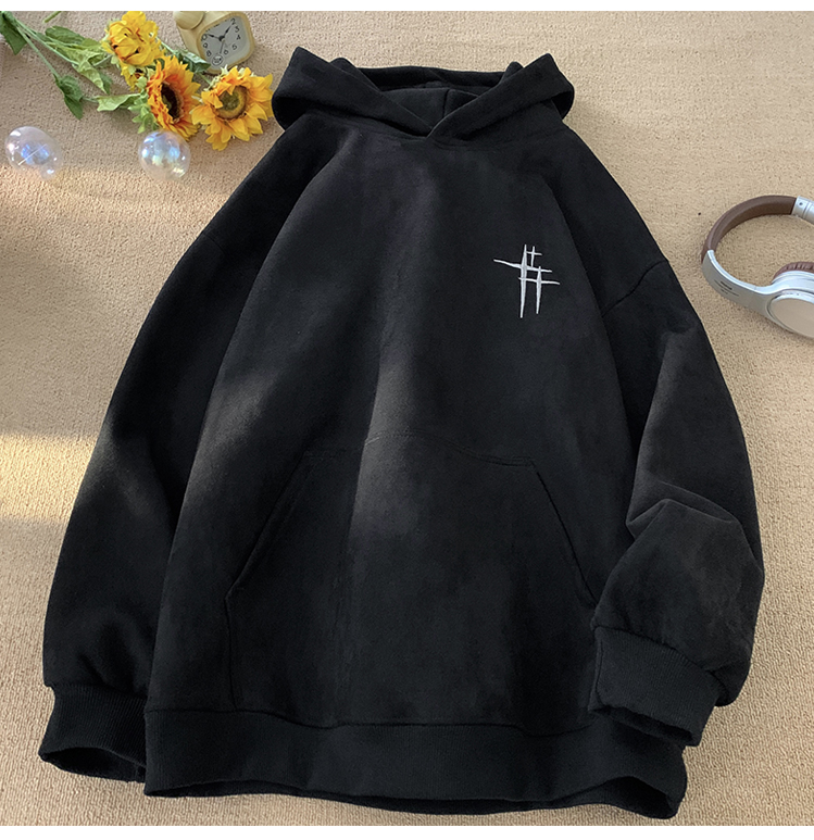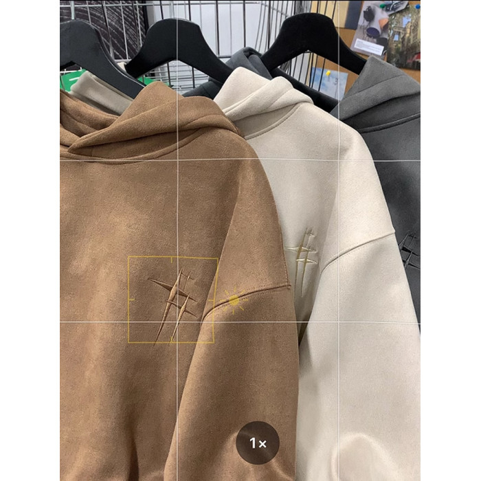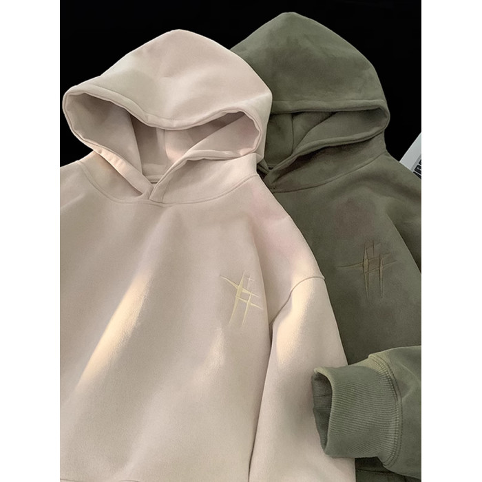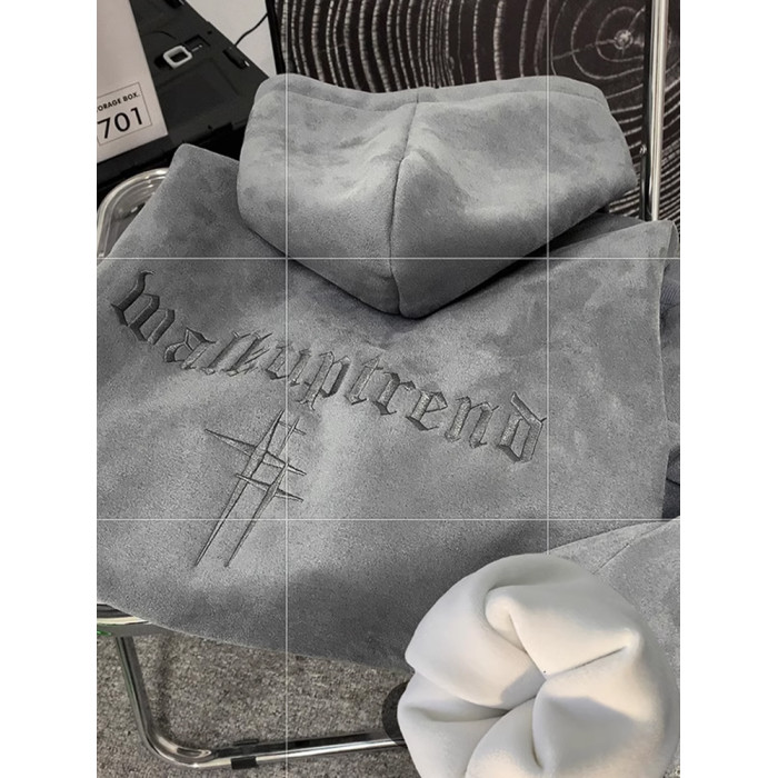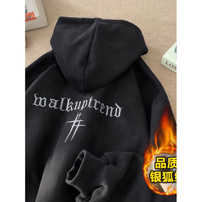 麂皮銀狐絨刺綉衛衣男加絨加厚連帽600g重磅硬挺oversize潮牌外套