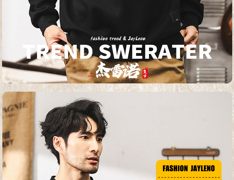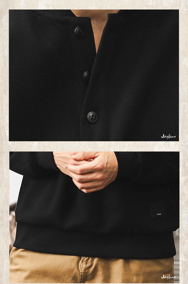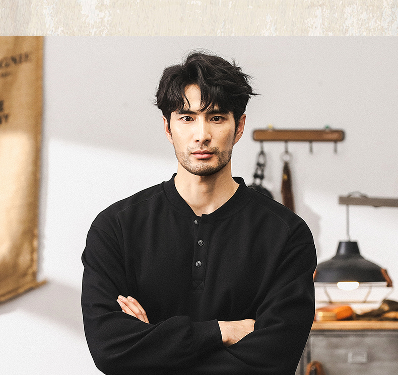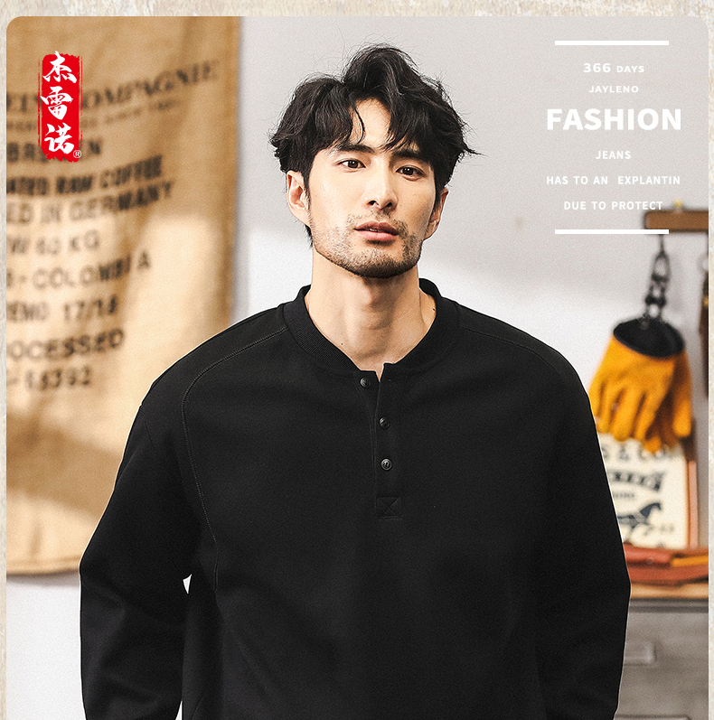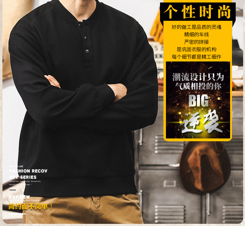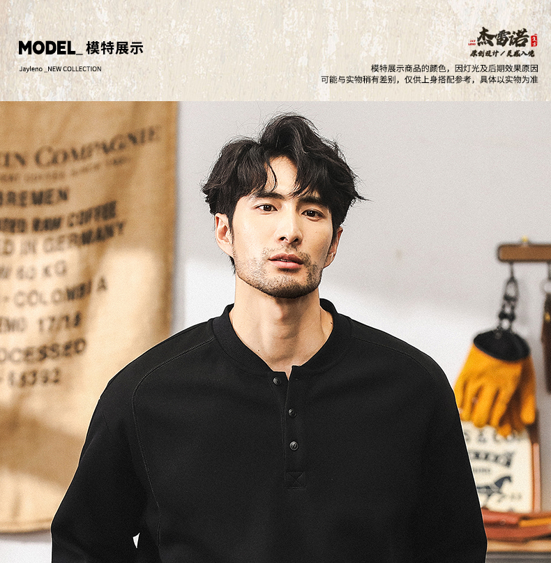 美式復古重磅加絨衛衣男秋季潮牌亨利領半開衫外套男春秋款POLO衫