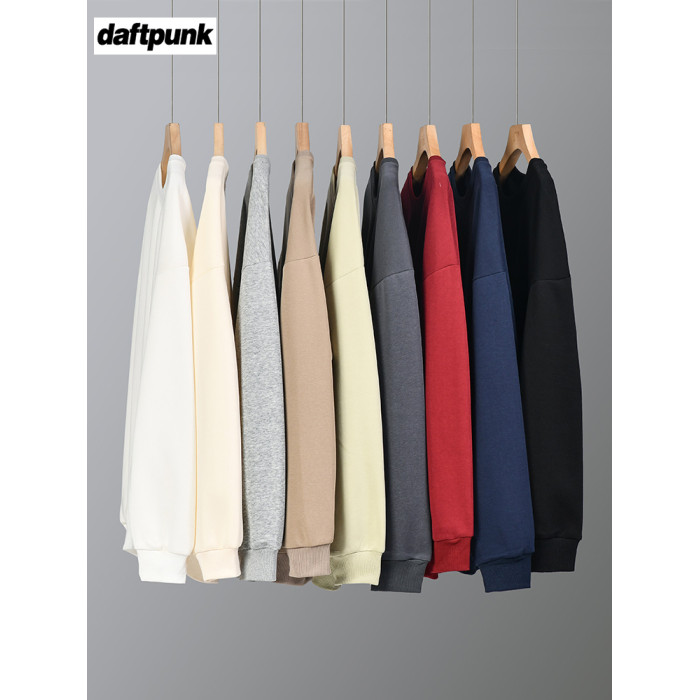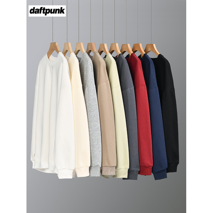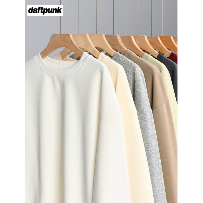 美式320g重磅純色圓領衛衣男女秋季ins潮牌寬松休閒簡約情侶上衣