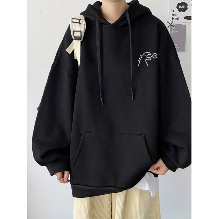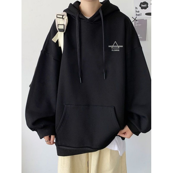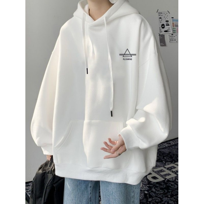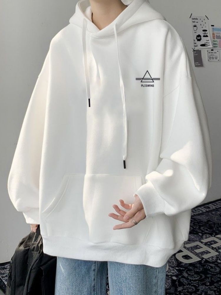 潮牌重磅純棉白色連帽衛衣男款春秋美式休閒印花學生寬松百搭外套