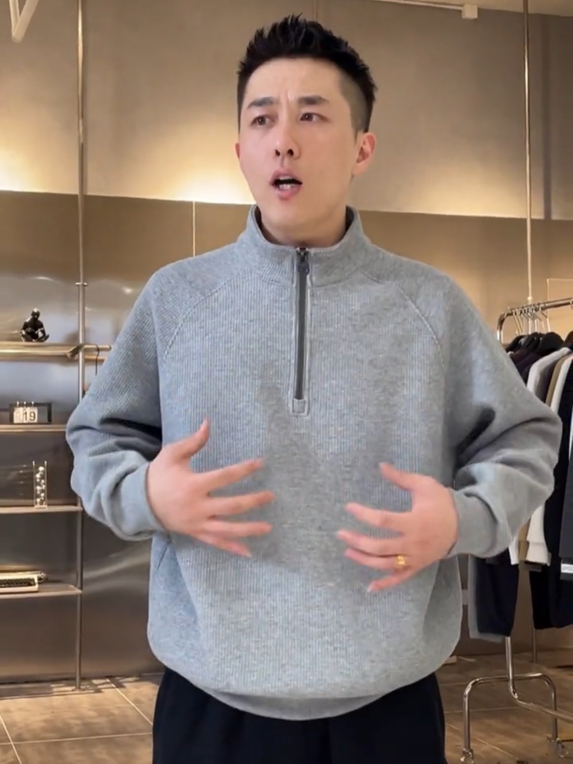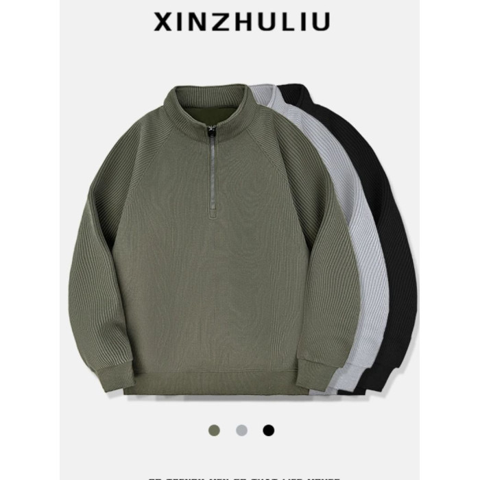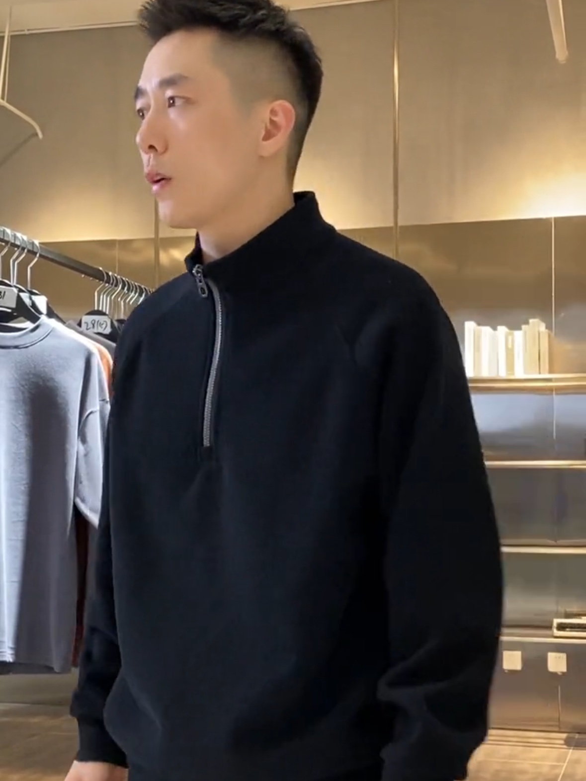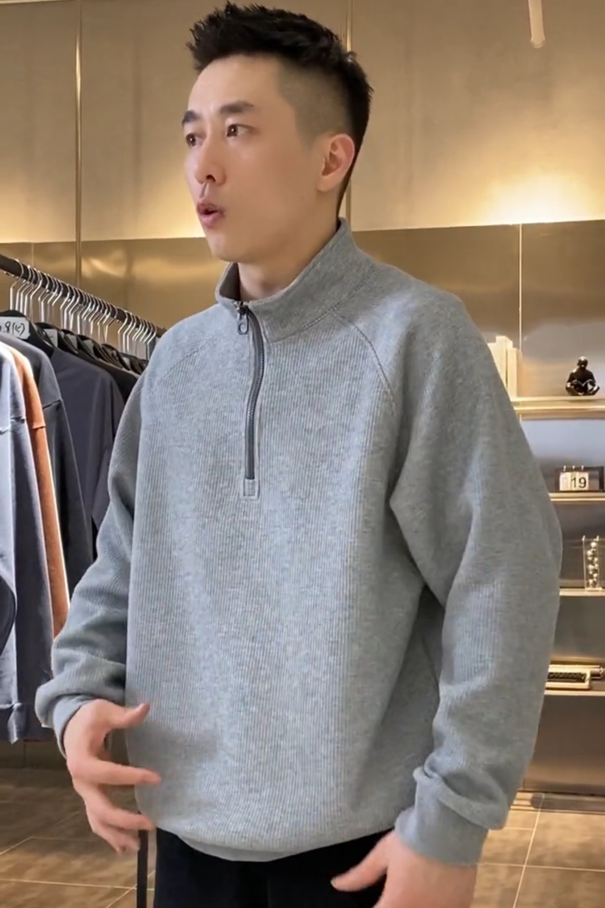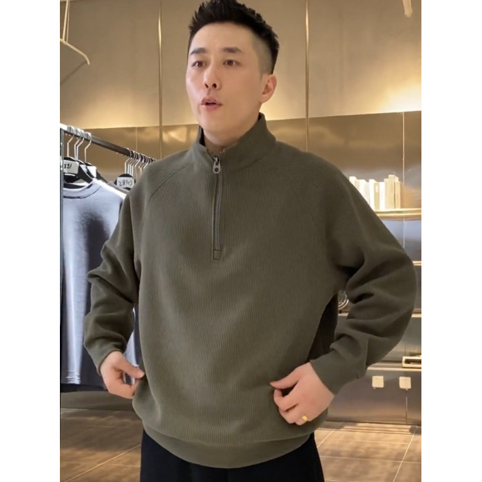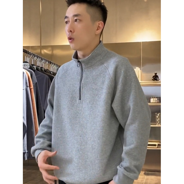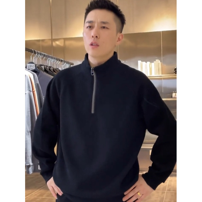 肌理半拉鍊立領衛衣男秋冬新款重磅純色簡約百搭寬松休閒內搭上衣