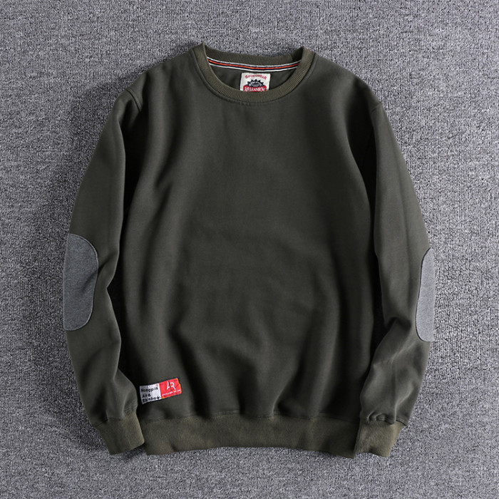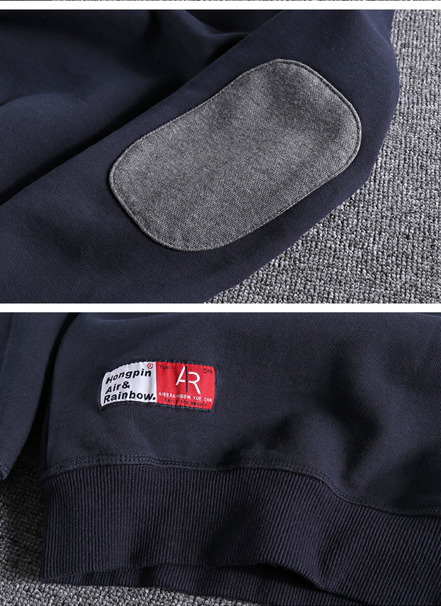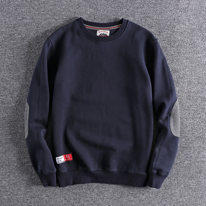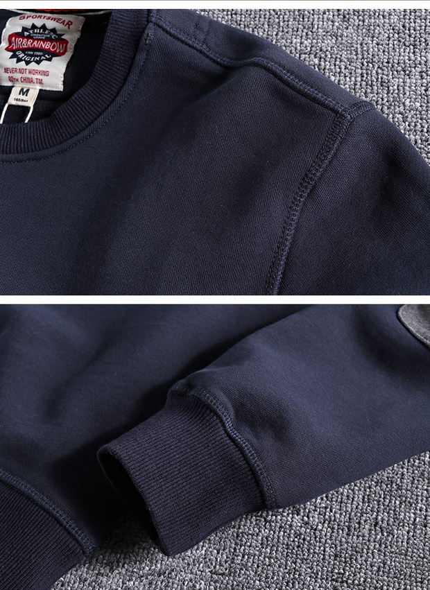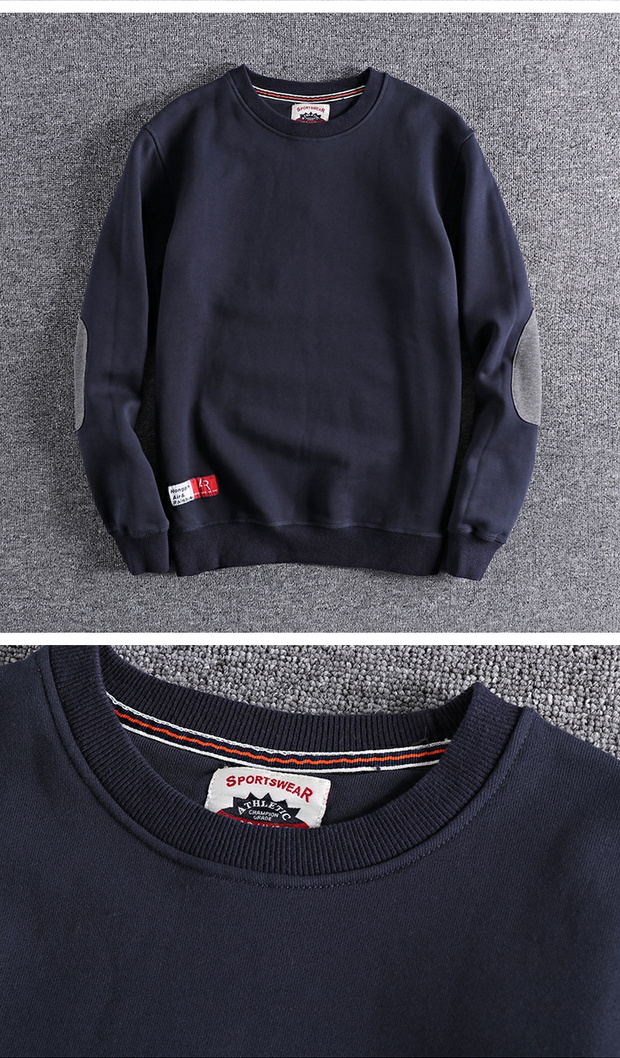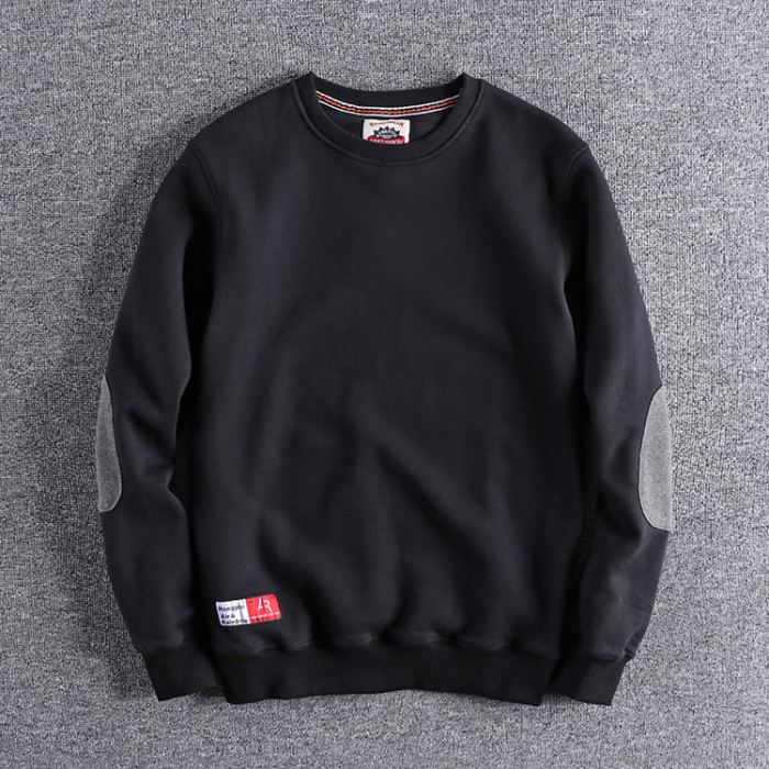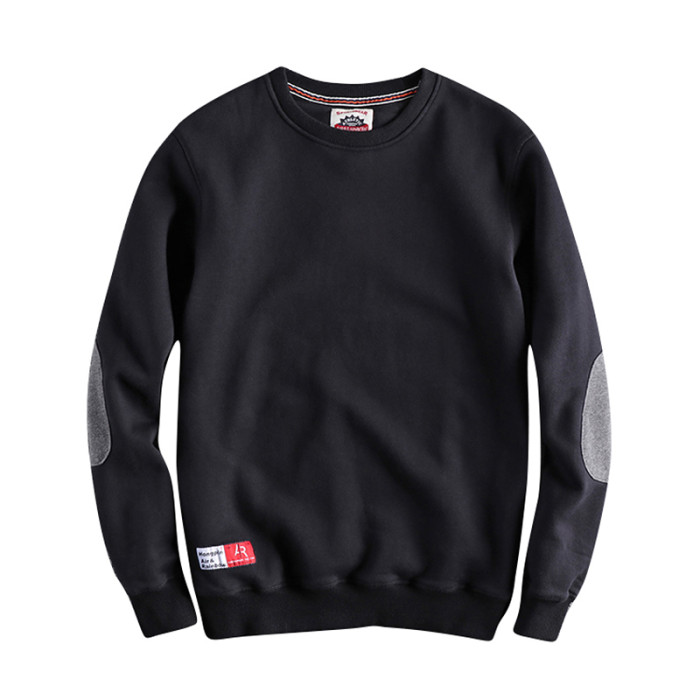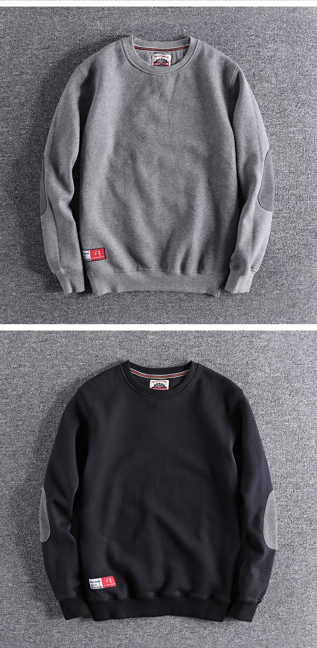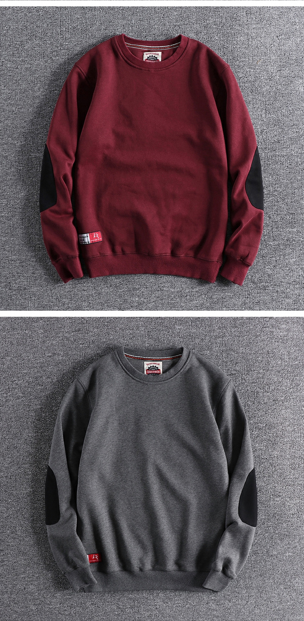 春秋加絨寬松舒適純棉面料袖子拼接潮款男士圓領套頭衛衣