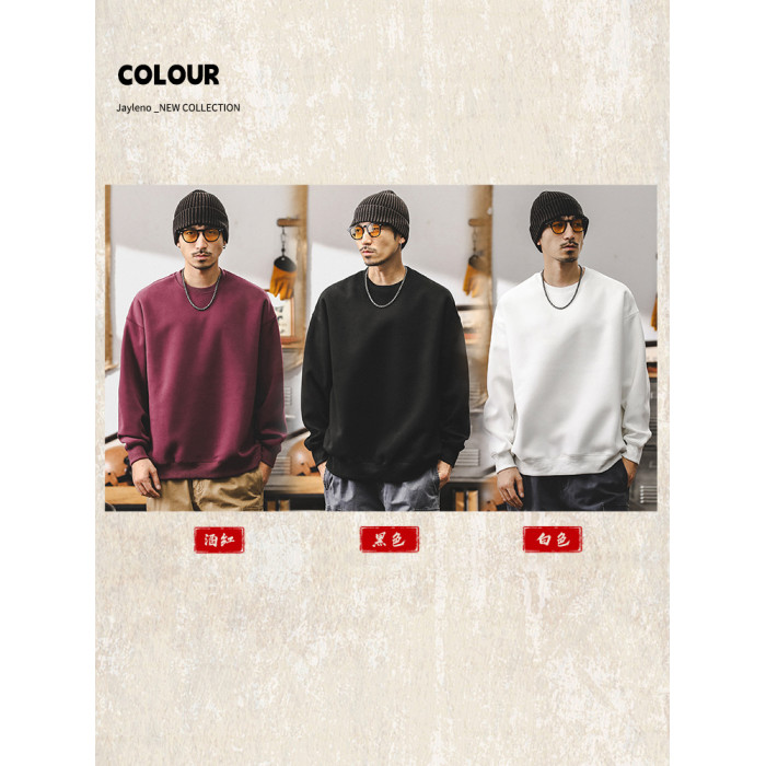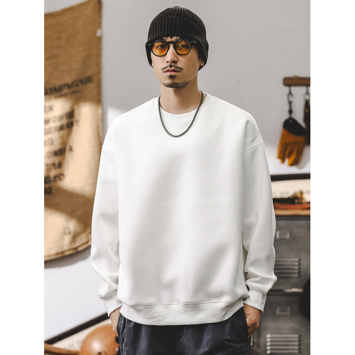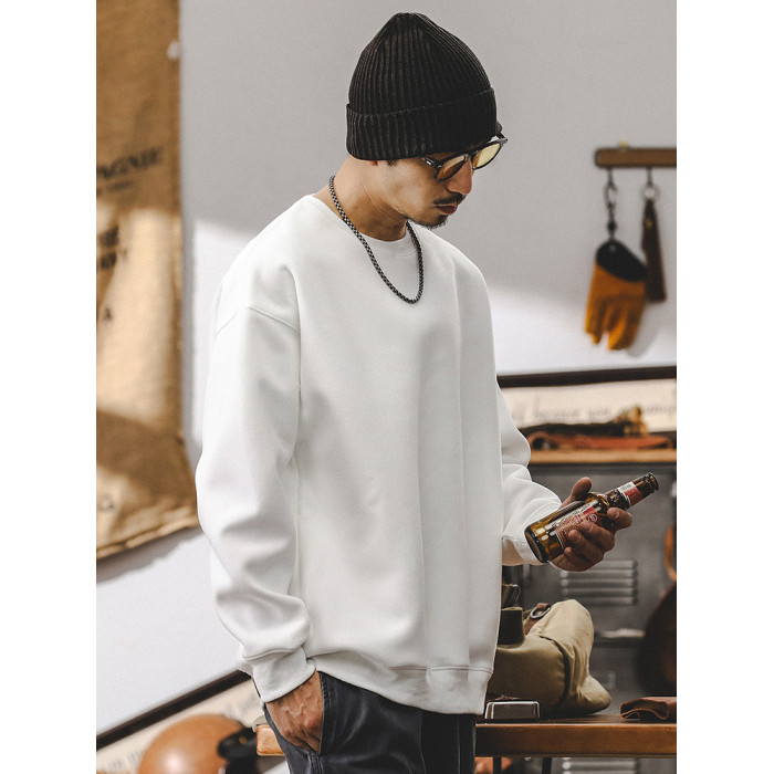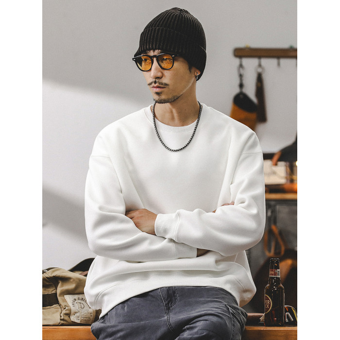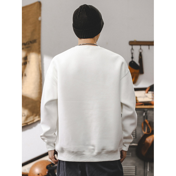 美式復古重磅衛衣男春秋款寬松潮牌2025新款簡約百搭秋季白色上衣