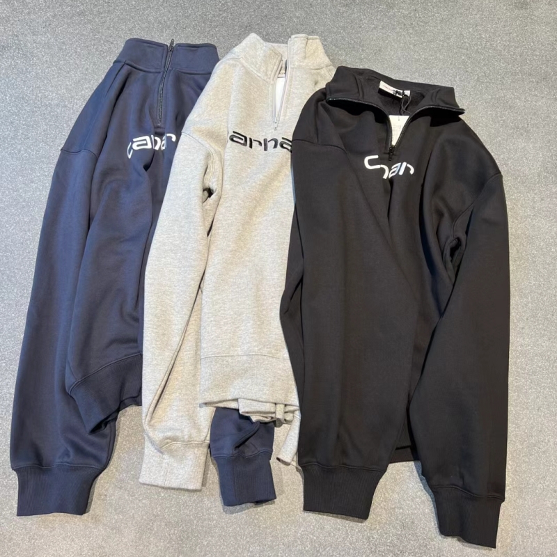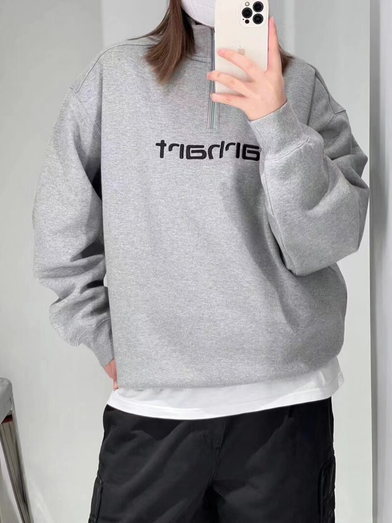 半拉鍊衛衣純棉半高立領男女春秋情侶款字母刺綉寬松大碼套頭外套