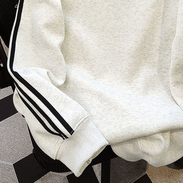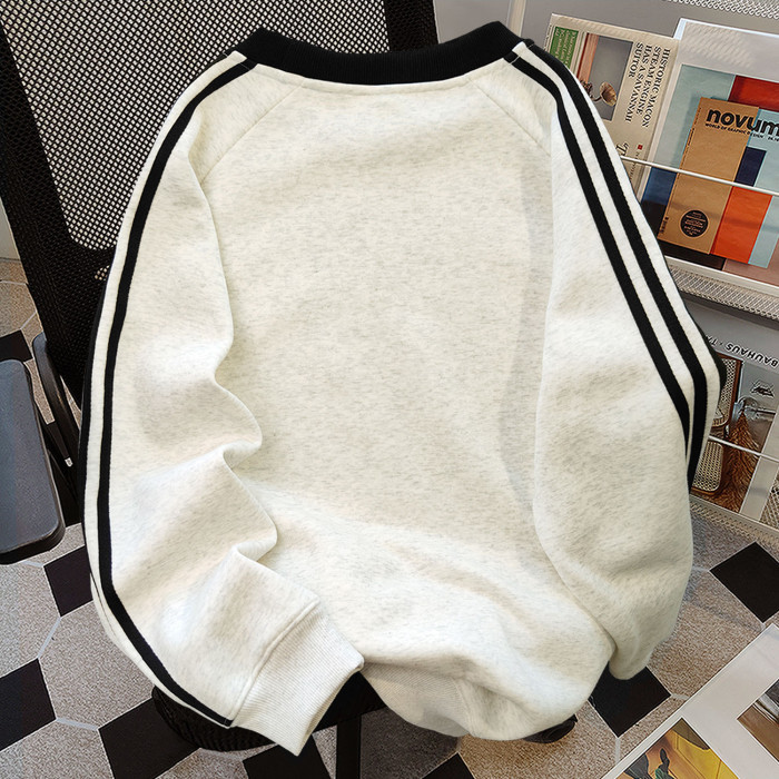 美式高街三條杠小衆設計感圓領衛衣男2024秋冬季加絨寬松上衣外套