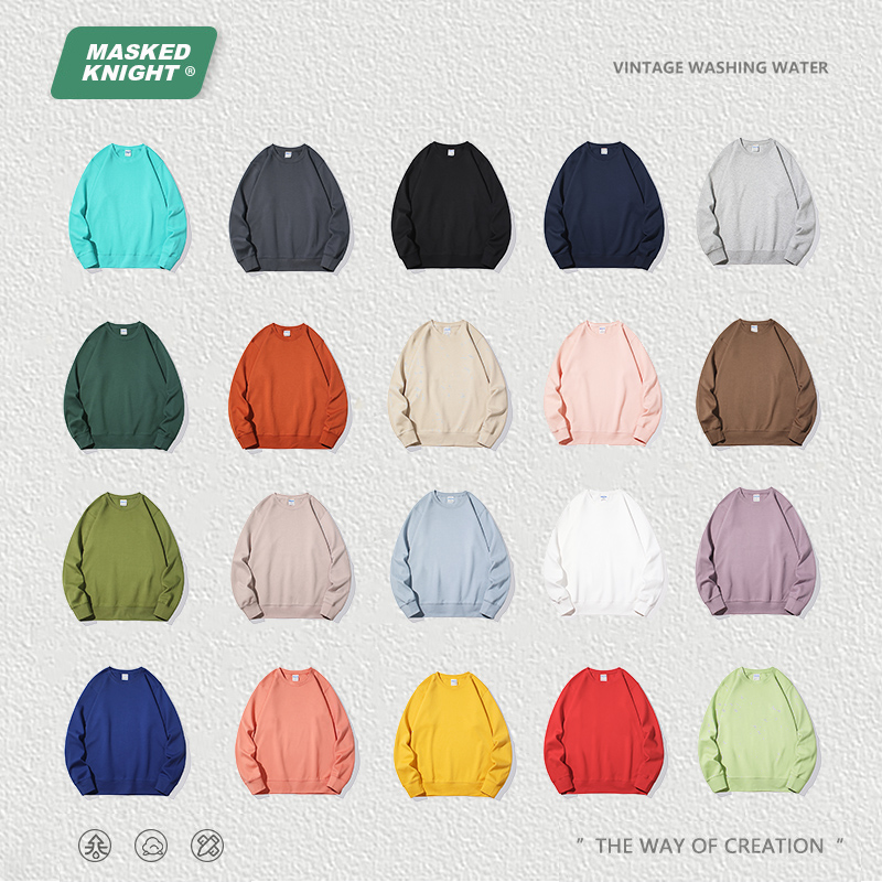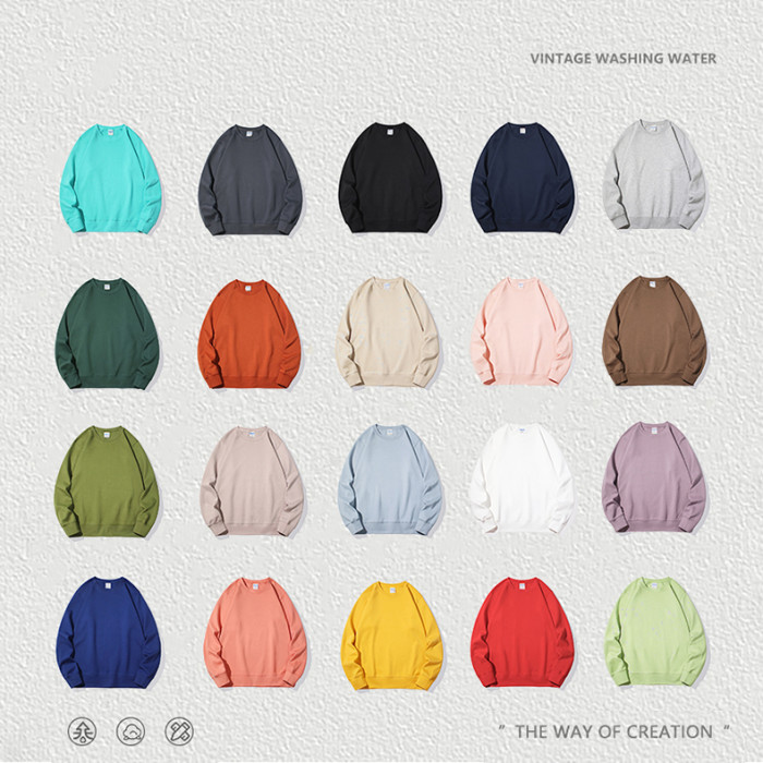 港風潮牌秋季純色薄款套頭圓領衛衣男潮寬松休閒情侶裝淨版上衣