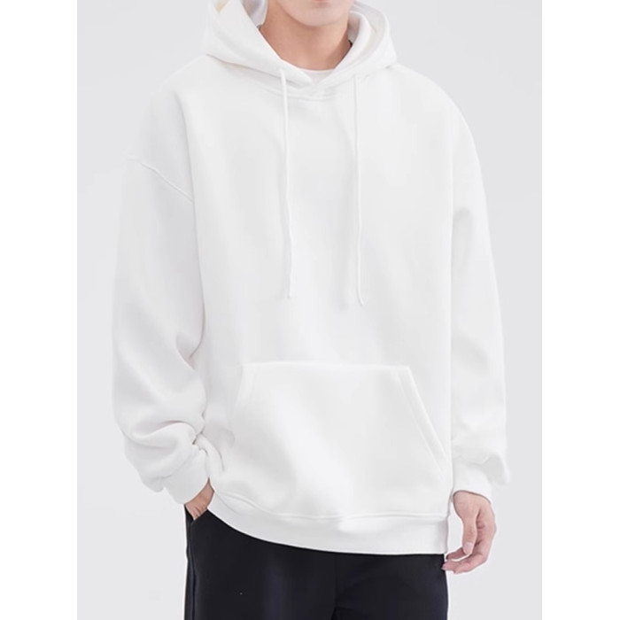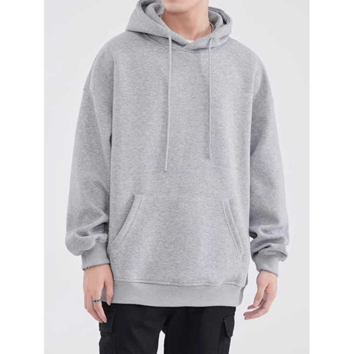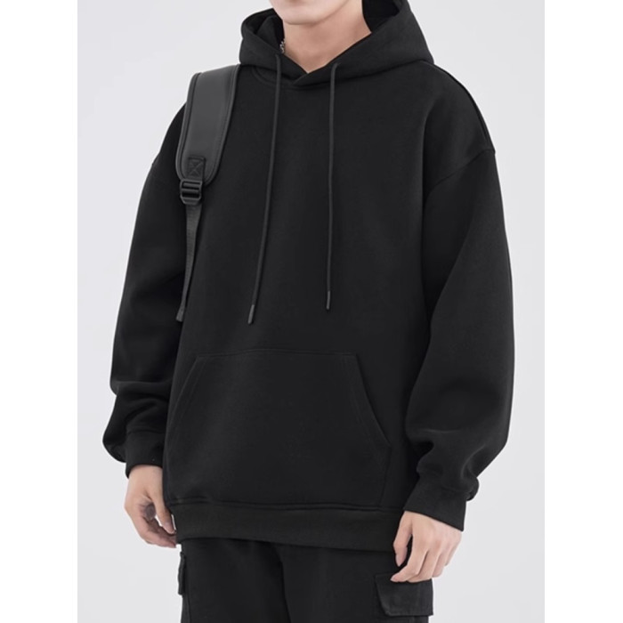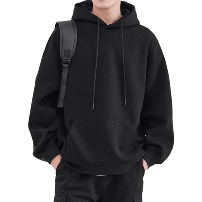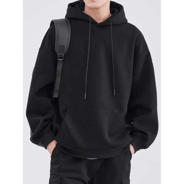 美式潮牌日系純棉重磅連帽衫寬松休閒加絨加厚純色衛衣男秋冬外套
