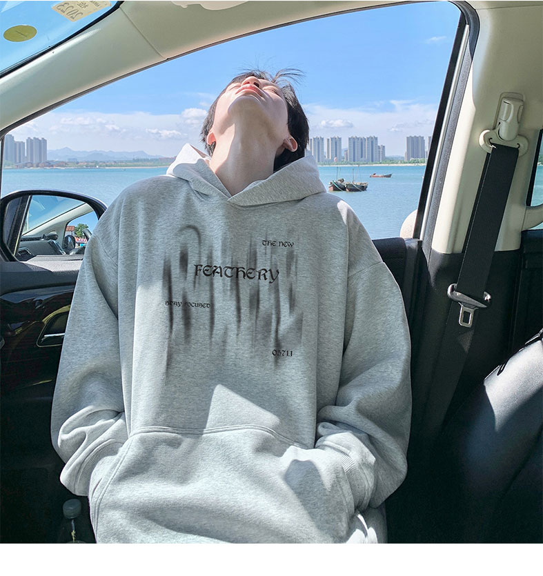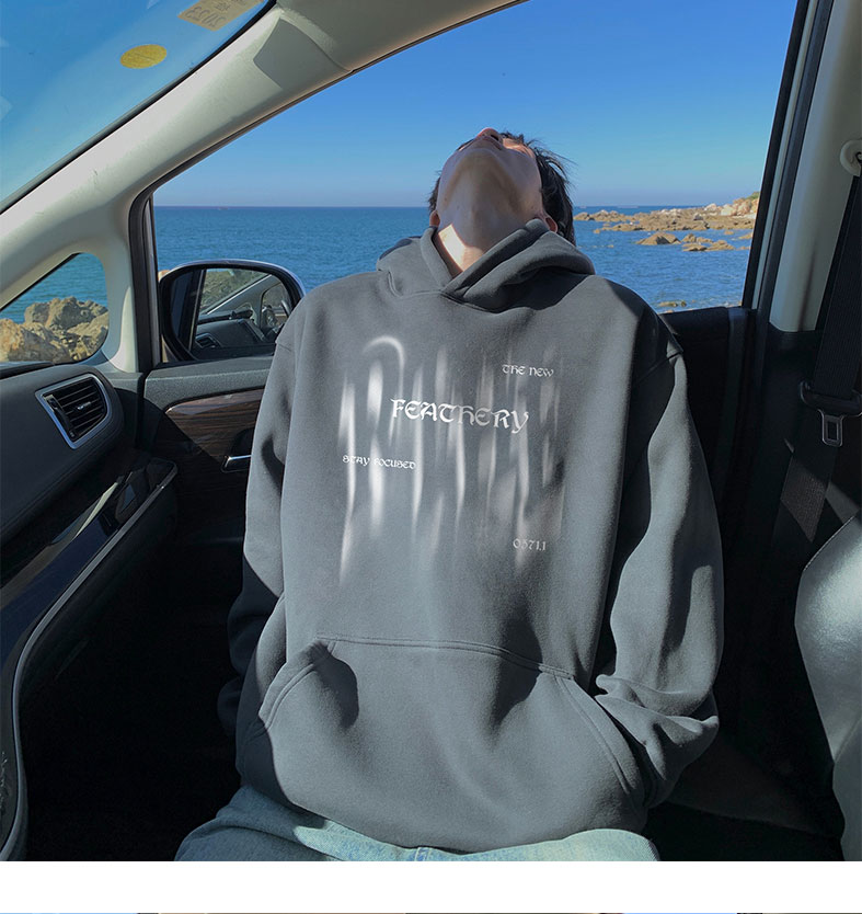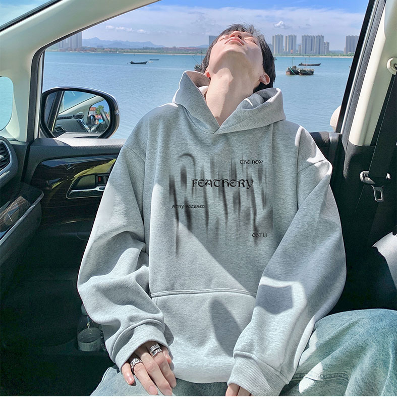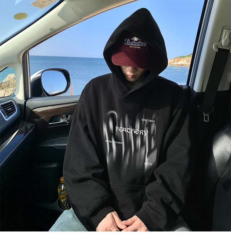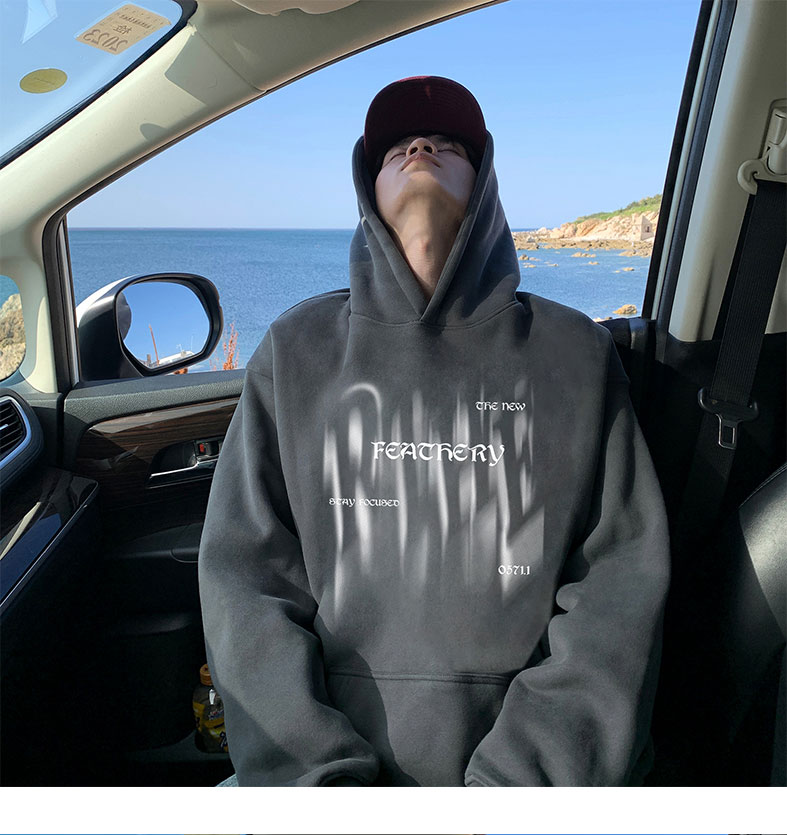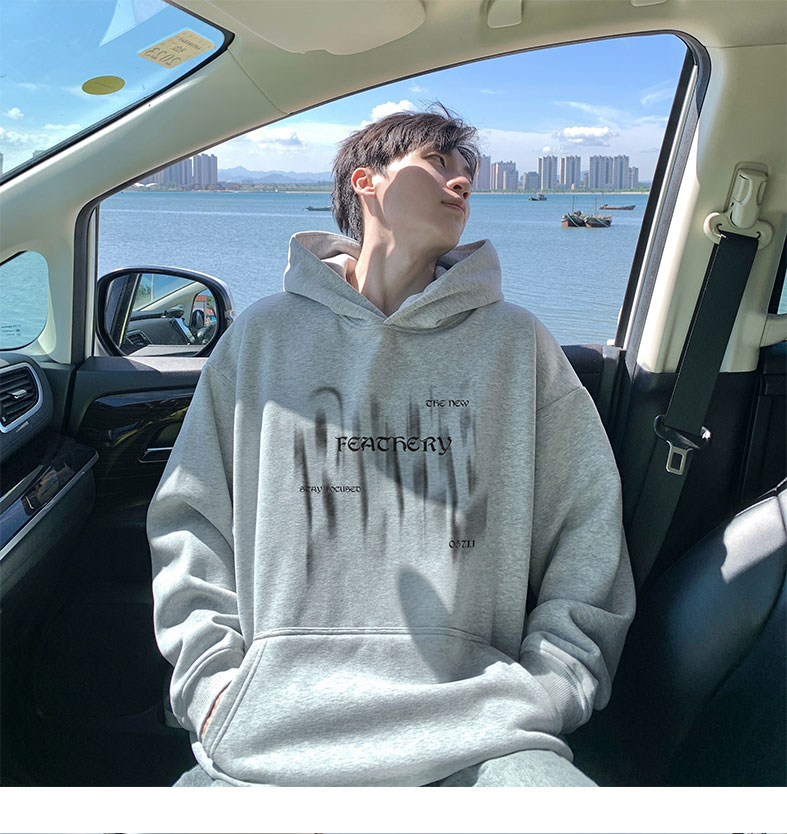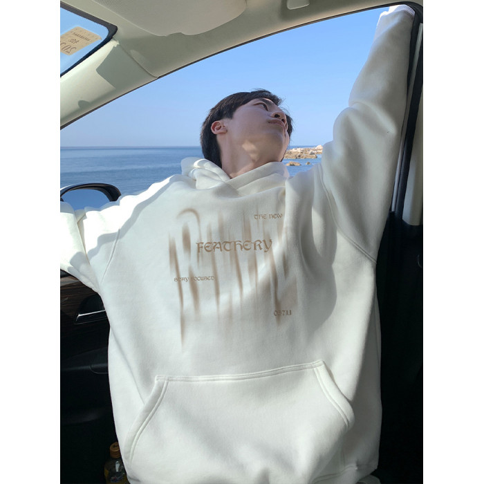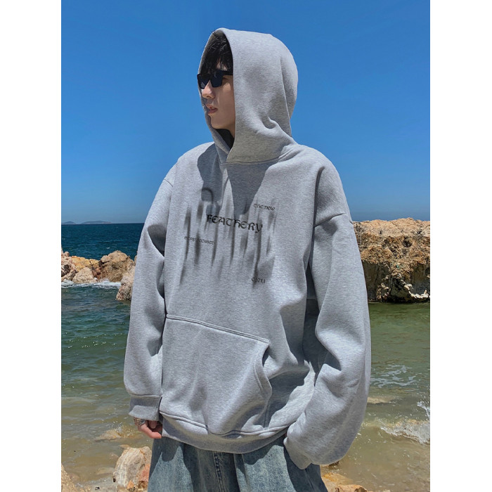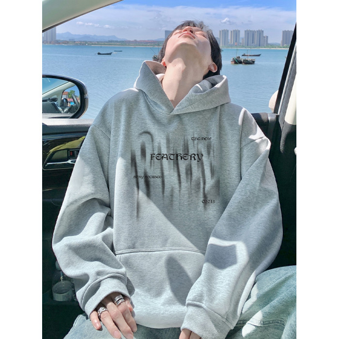 幻影字母花灰色連帽衛衣男款春秋冬季加絨加厚寬松大碼男生上衣服