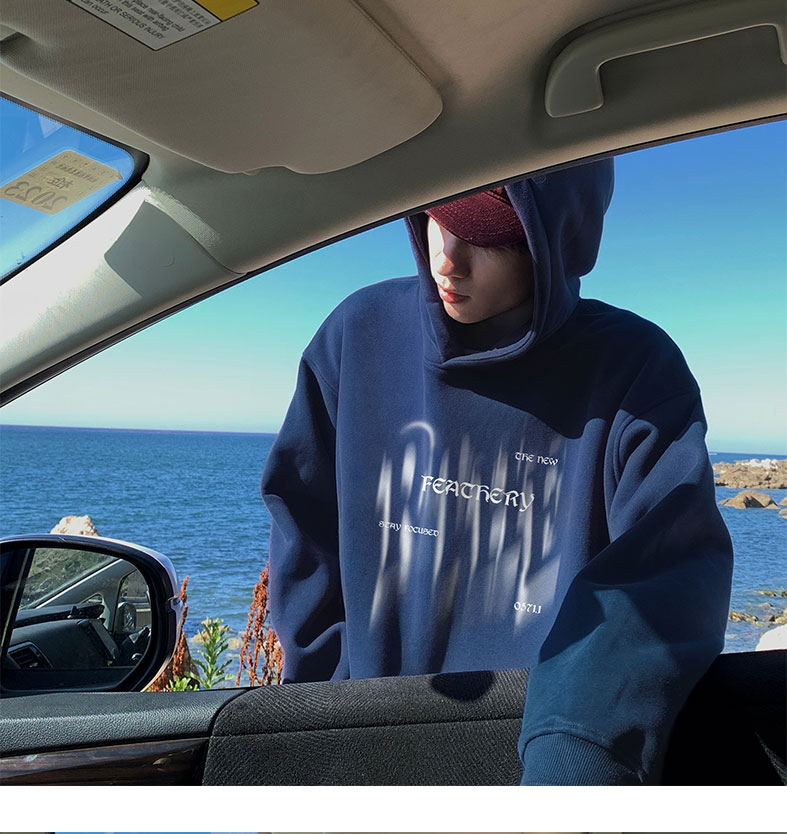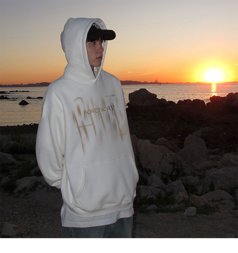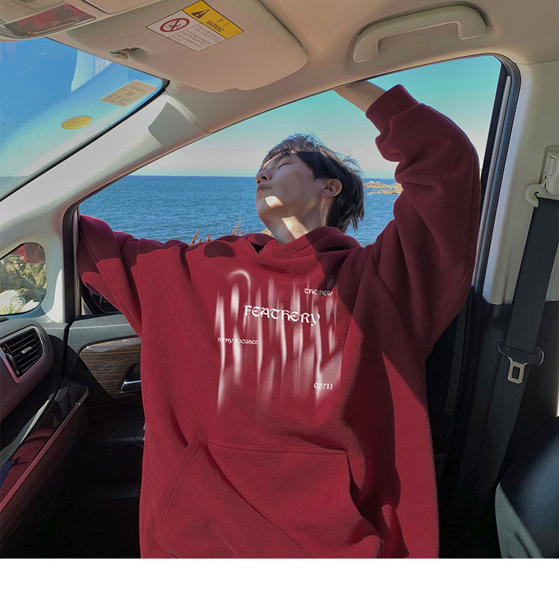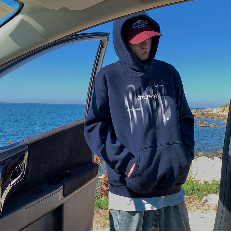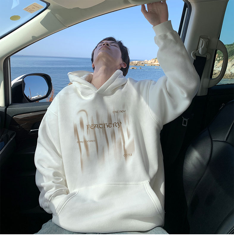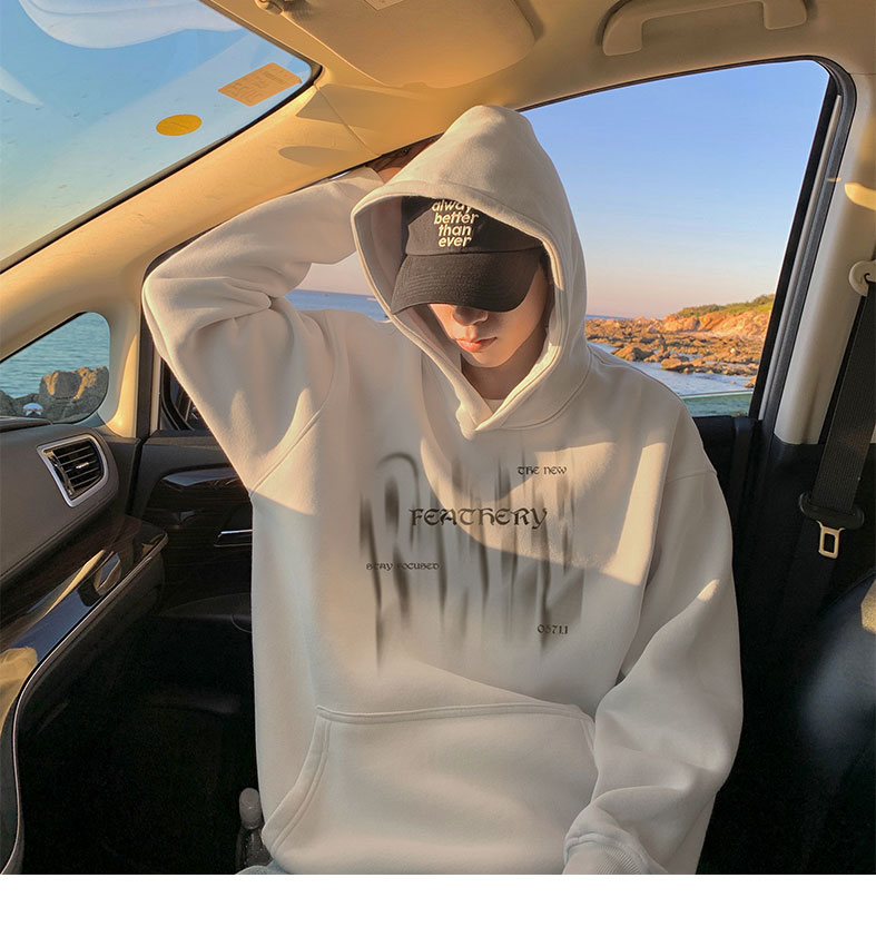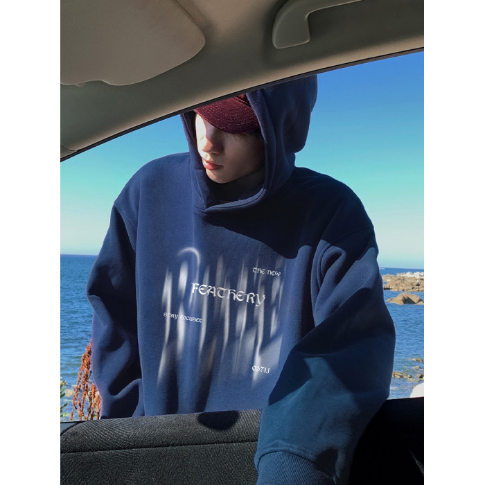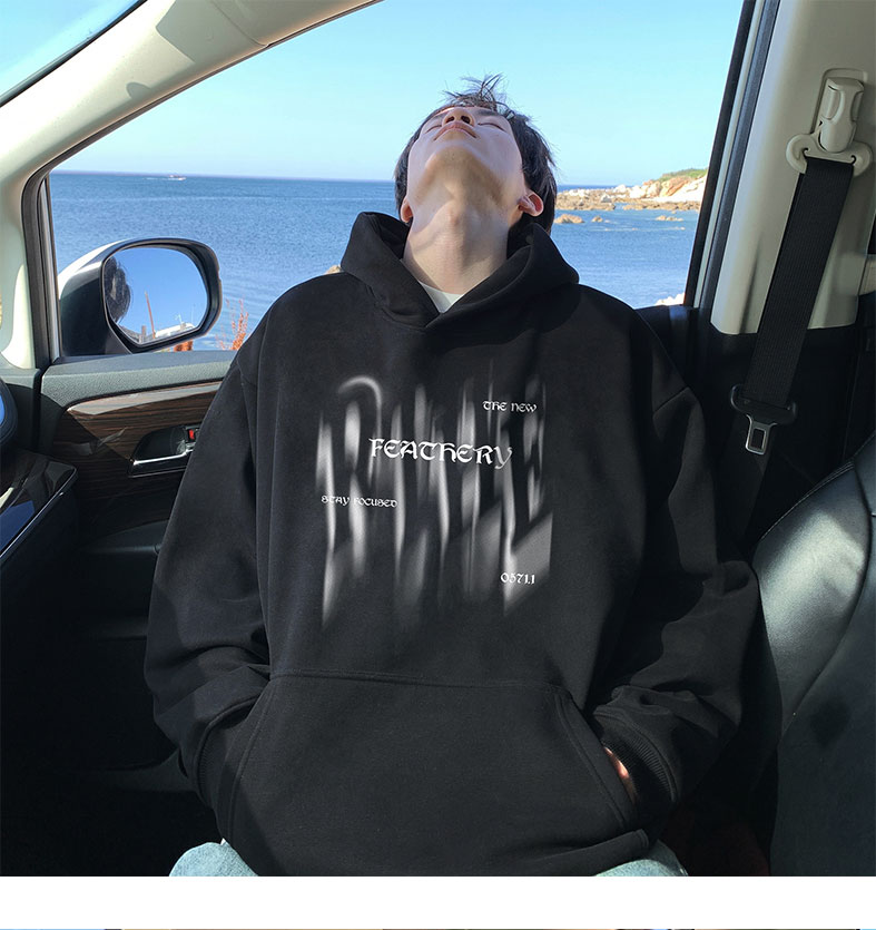 幻影字母花灰色連帽衛衣男款春秋冬季加絨加厚寬松大碼男生上衣服