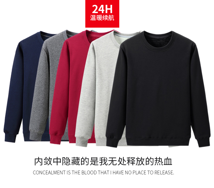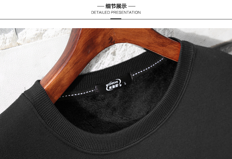 秋冬季加絨加厚保暖衛衣男加肥加大碼圓領套頭上衣純棉帶絨打底衫
