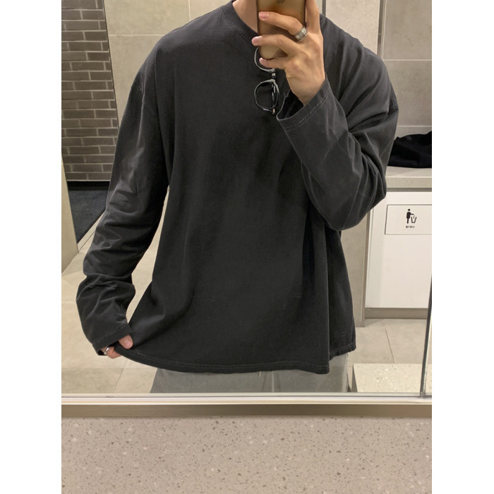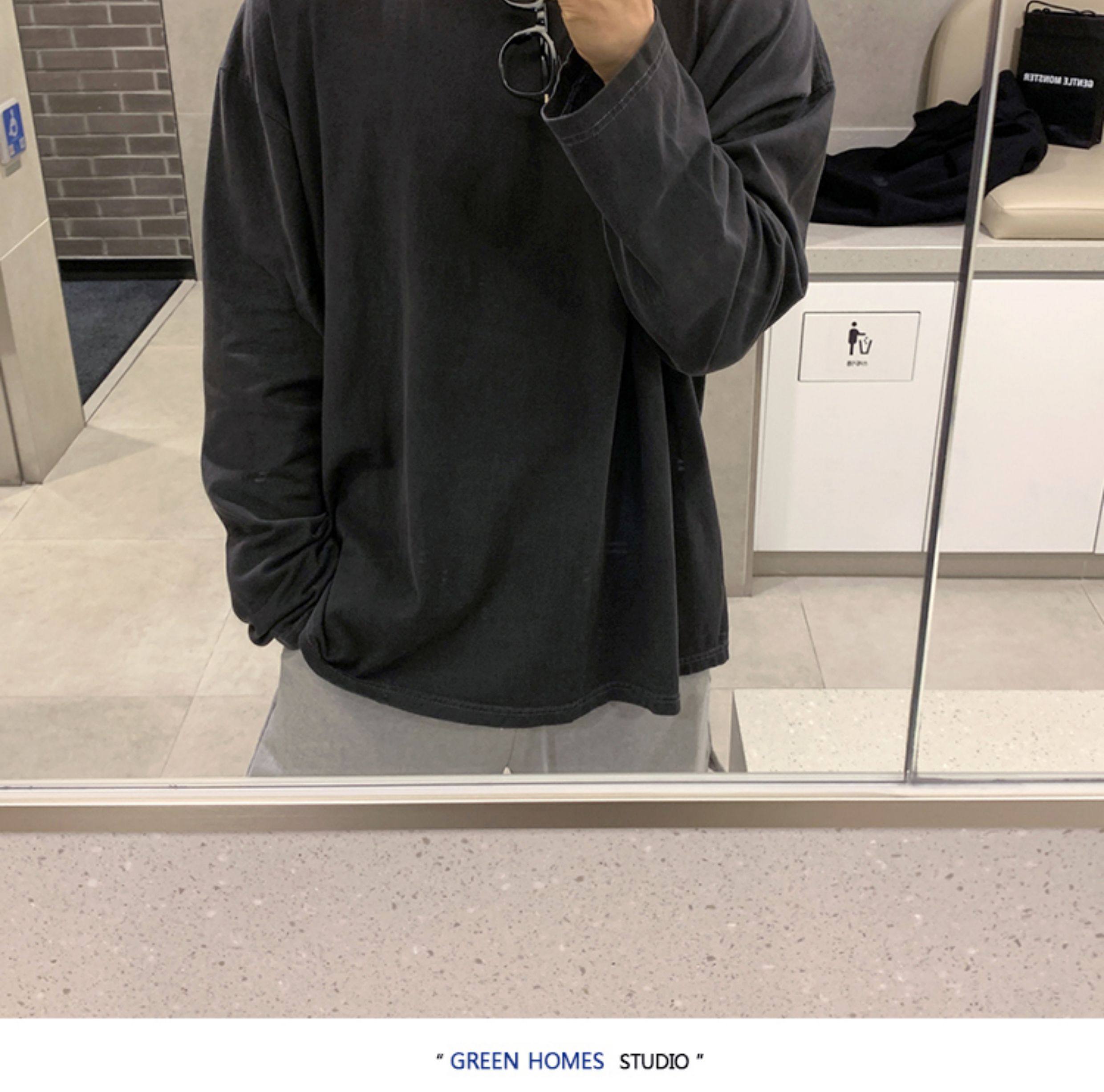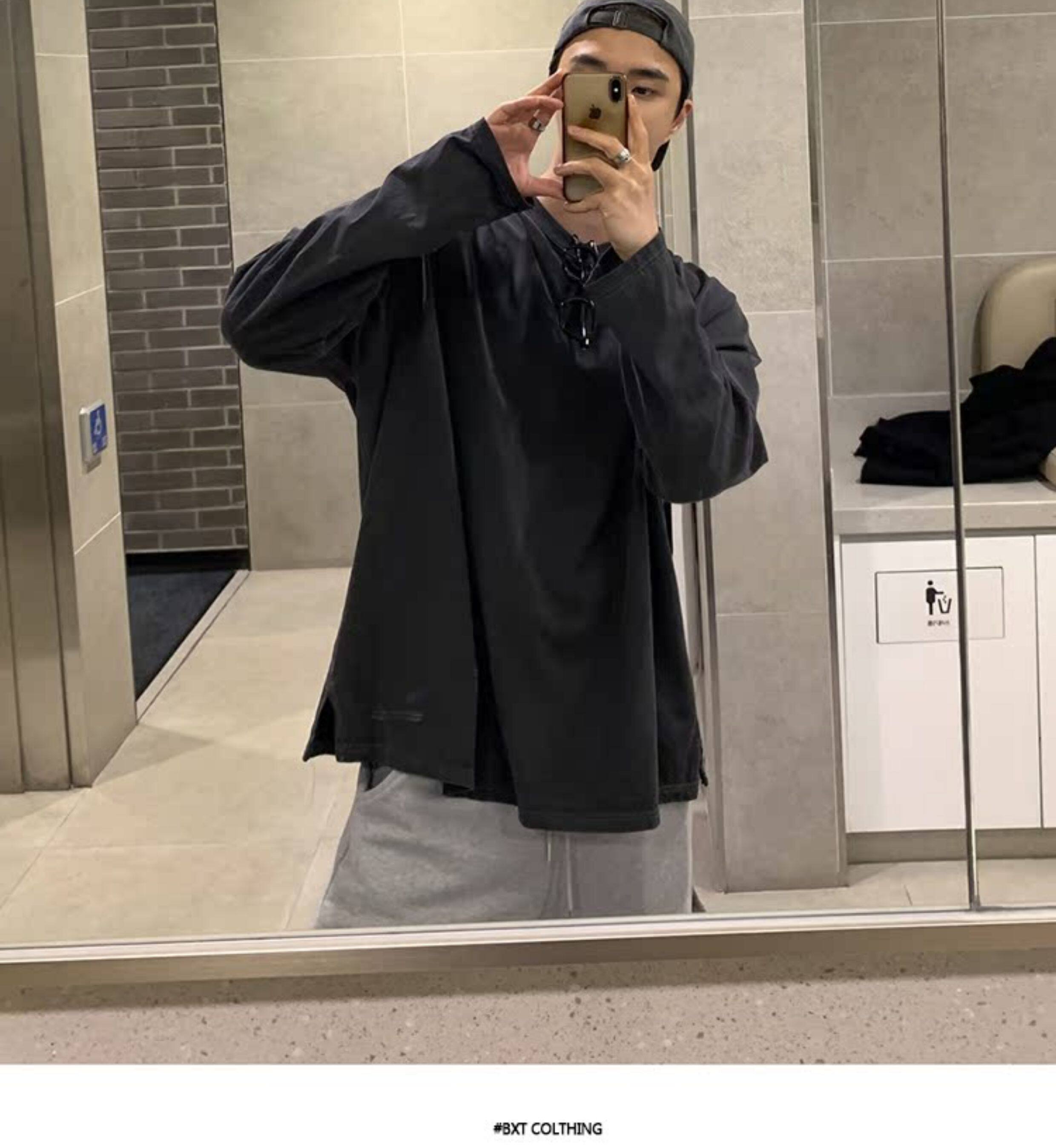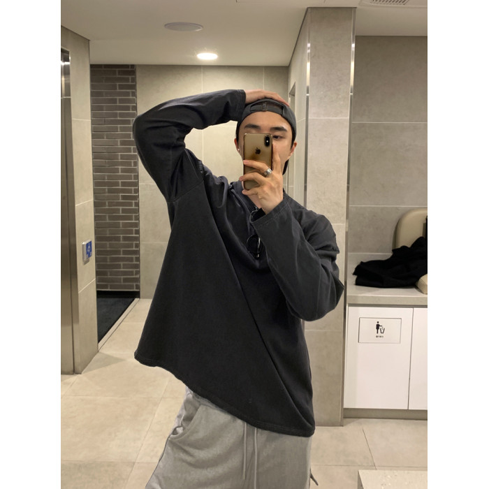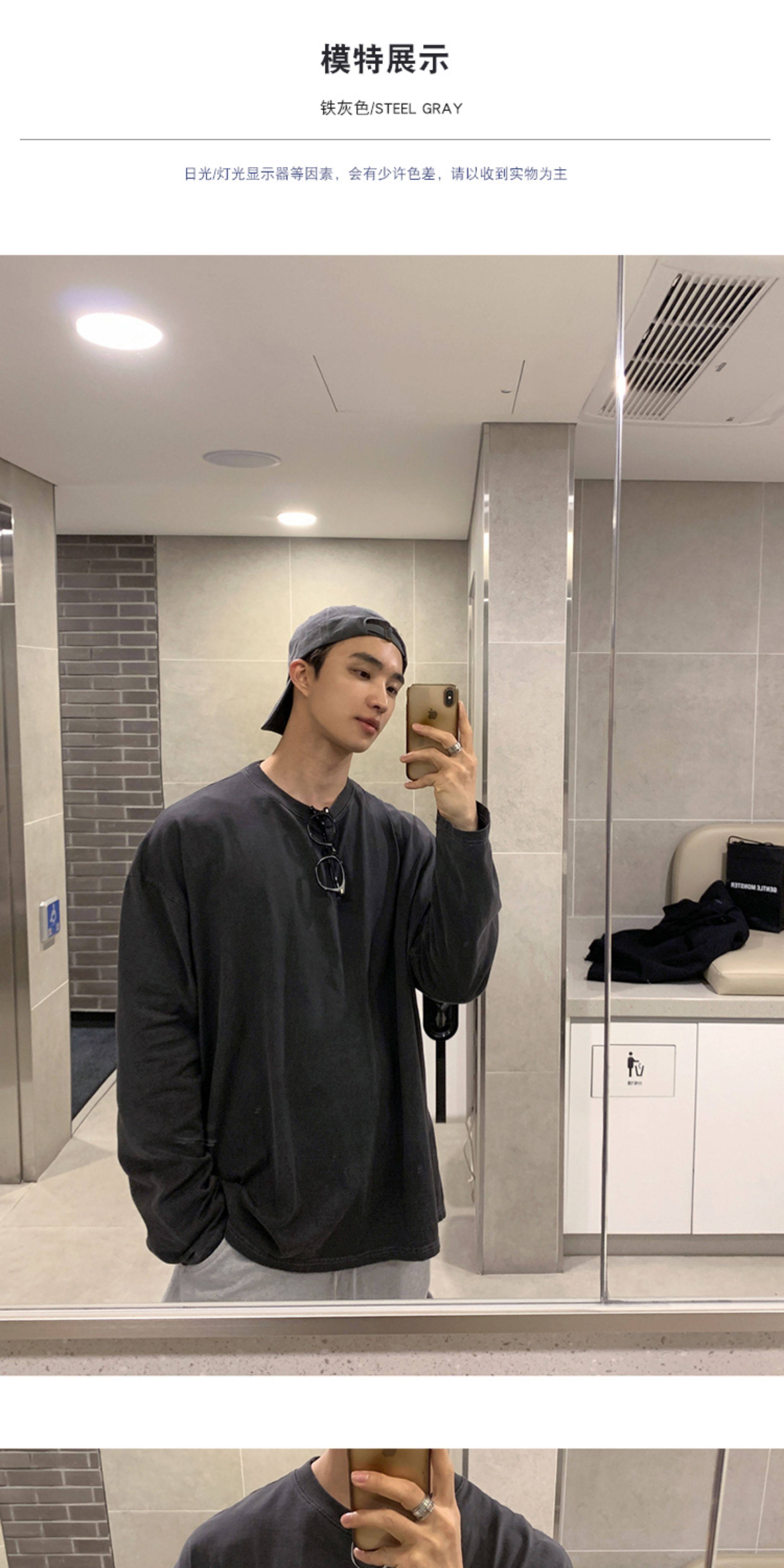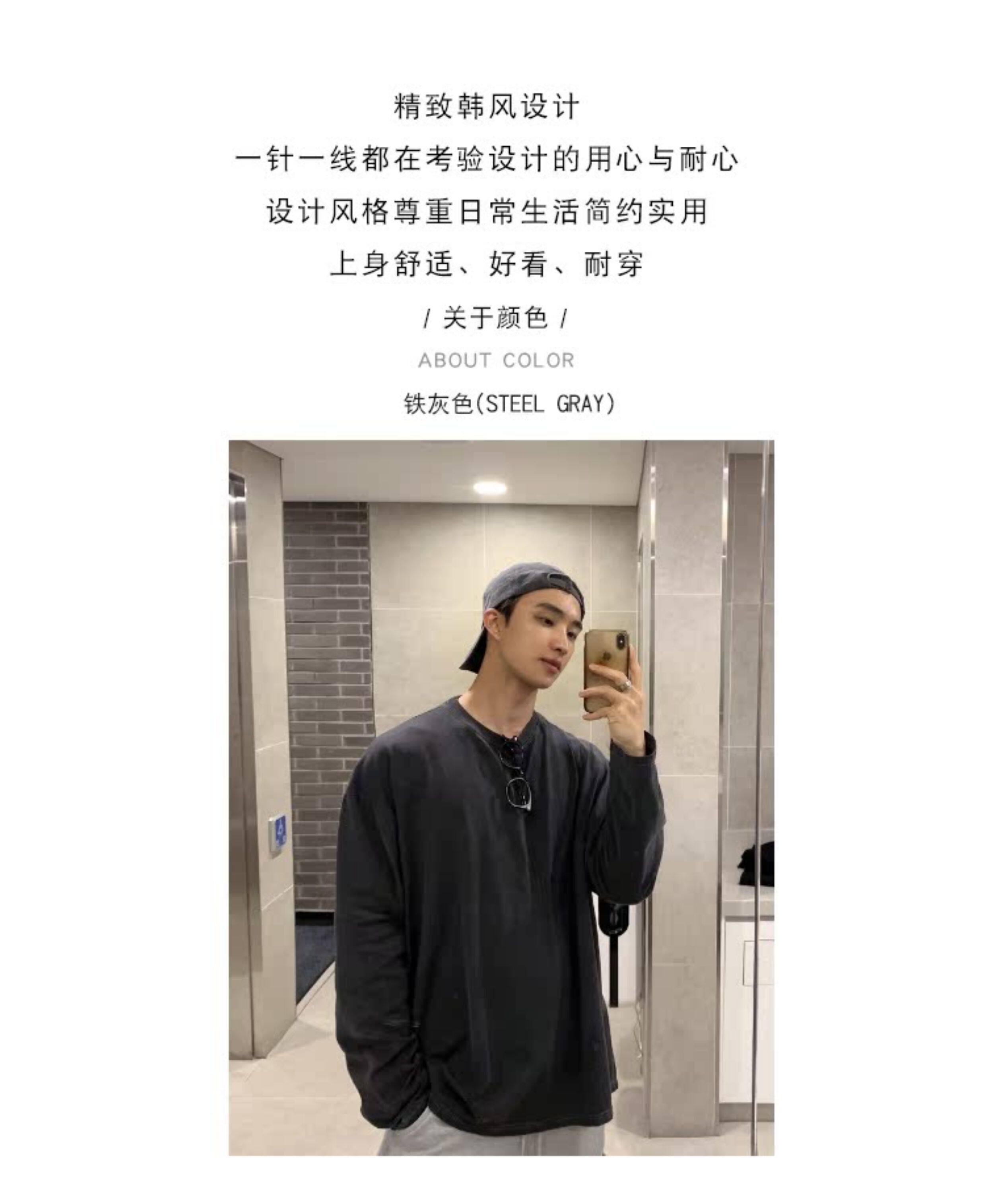 碧捨男士秋冬純色打底衫韓版潮流寬松T恤灰色做舊百搭ins休閒上衣