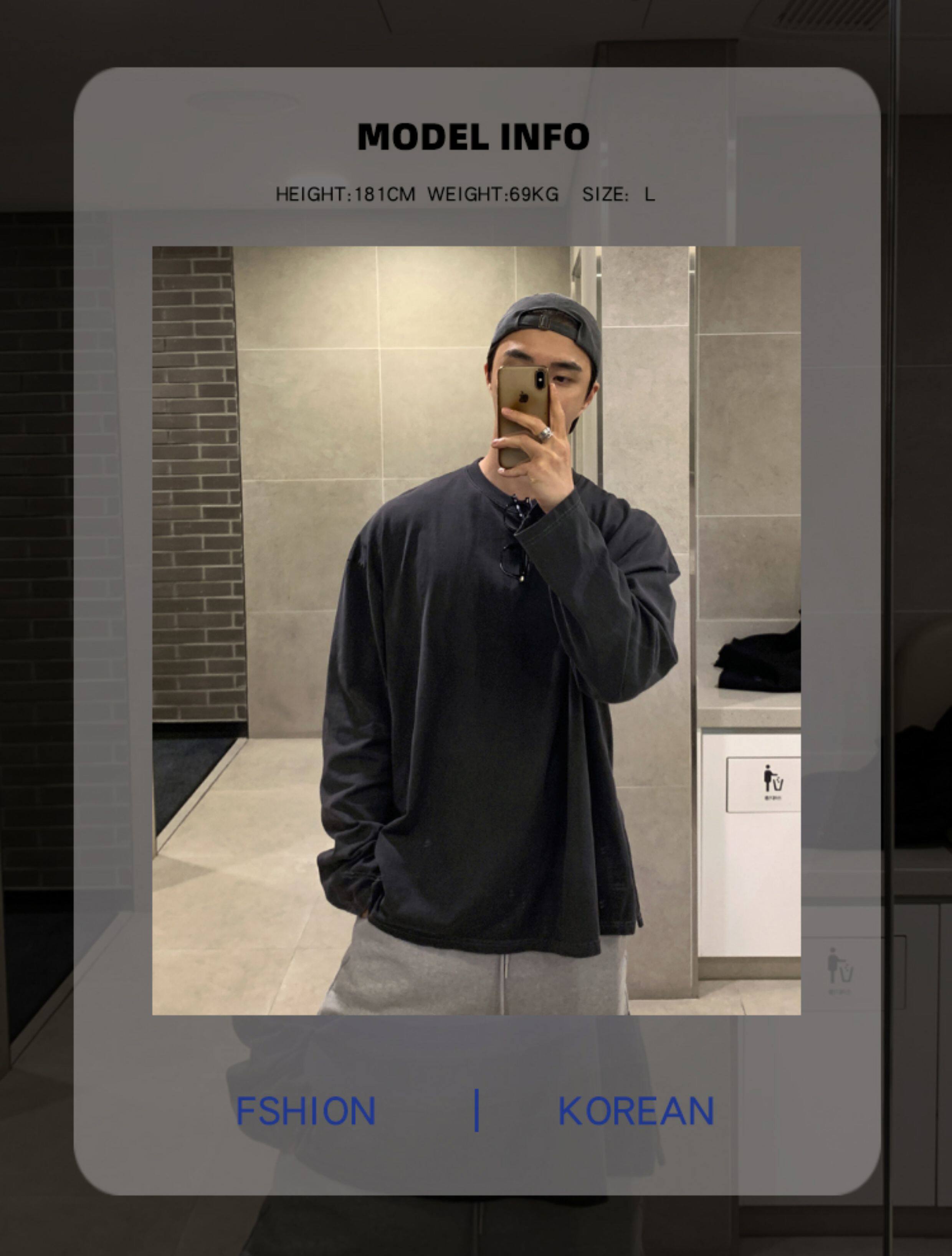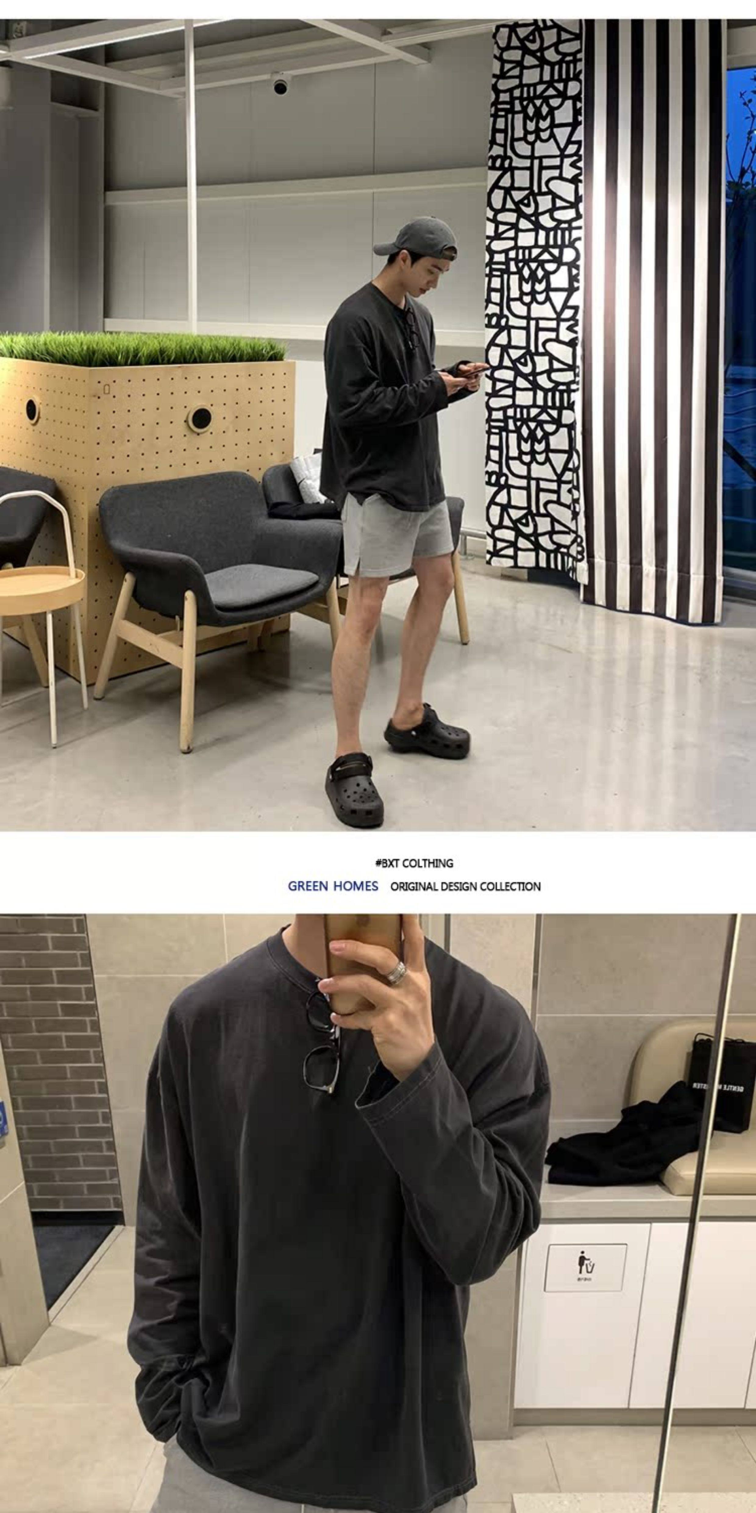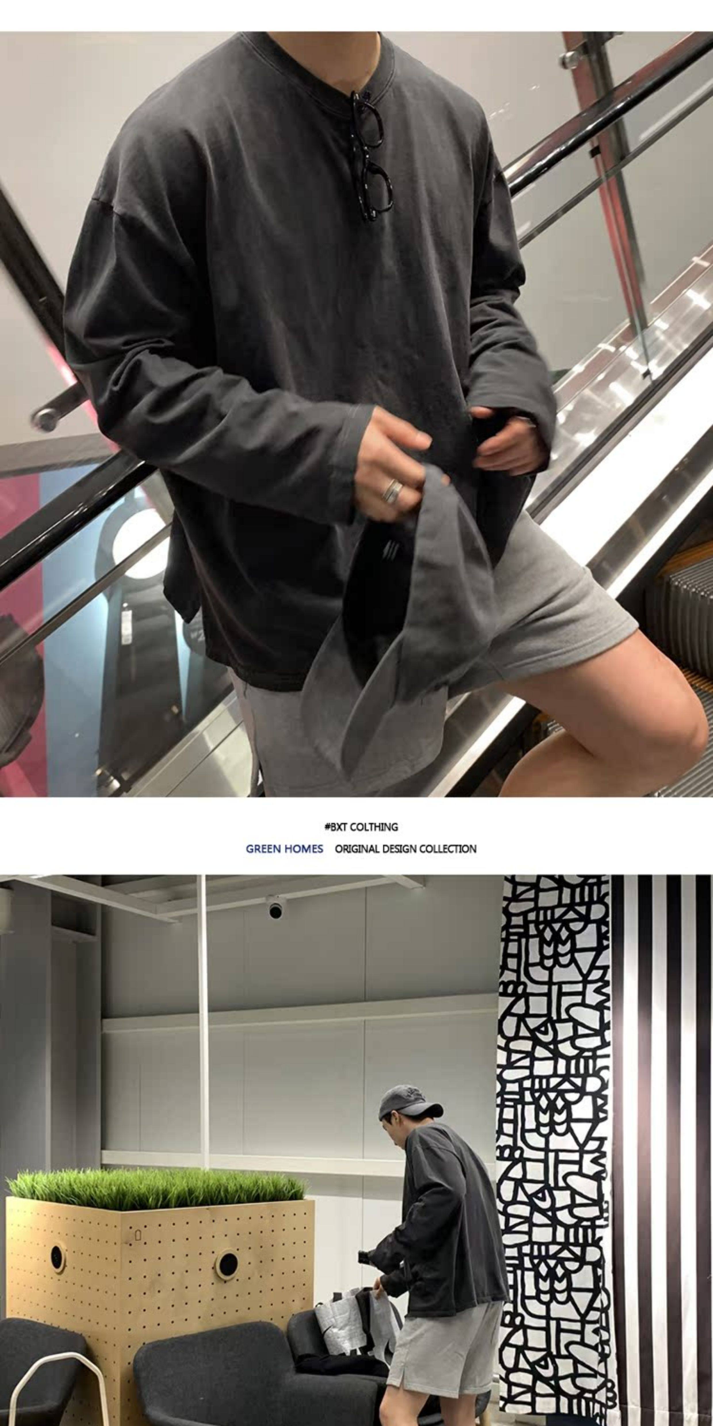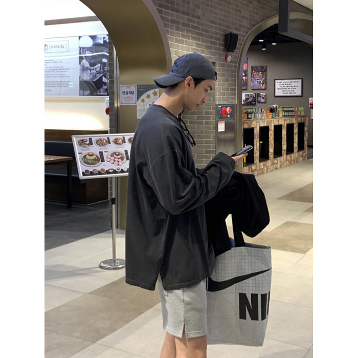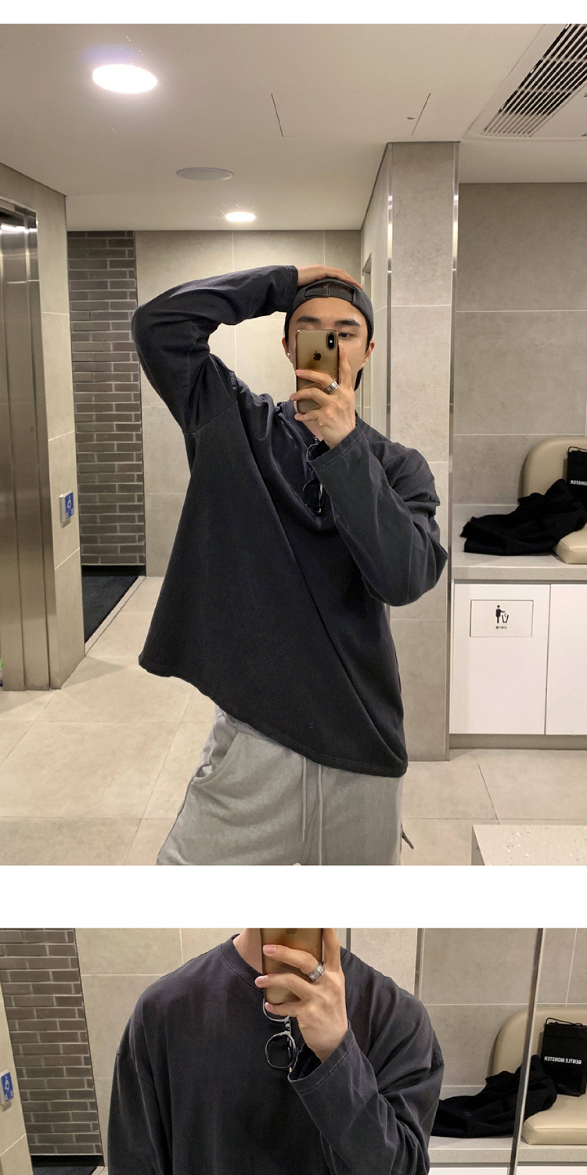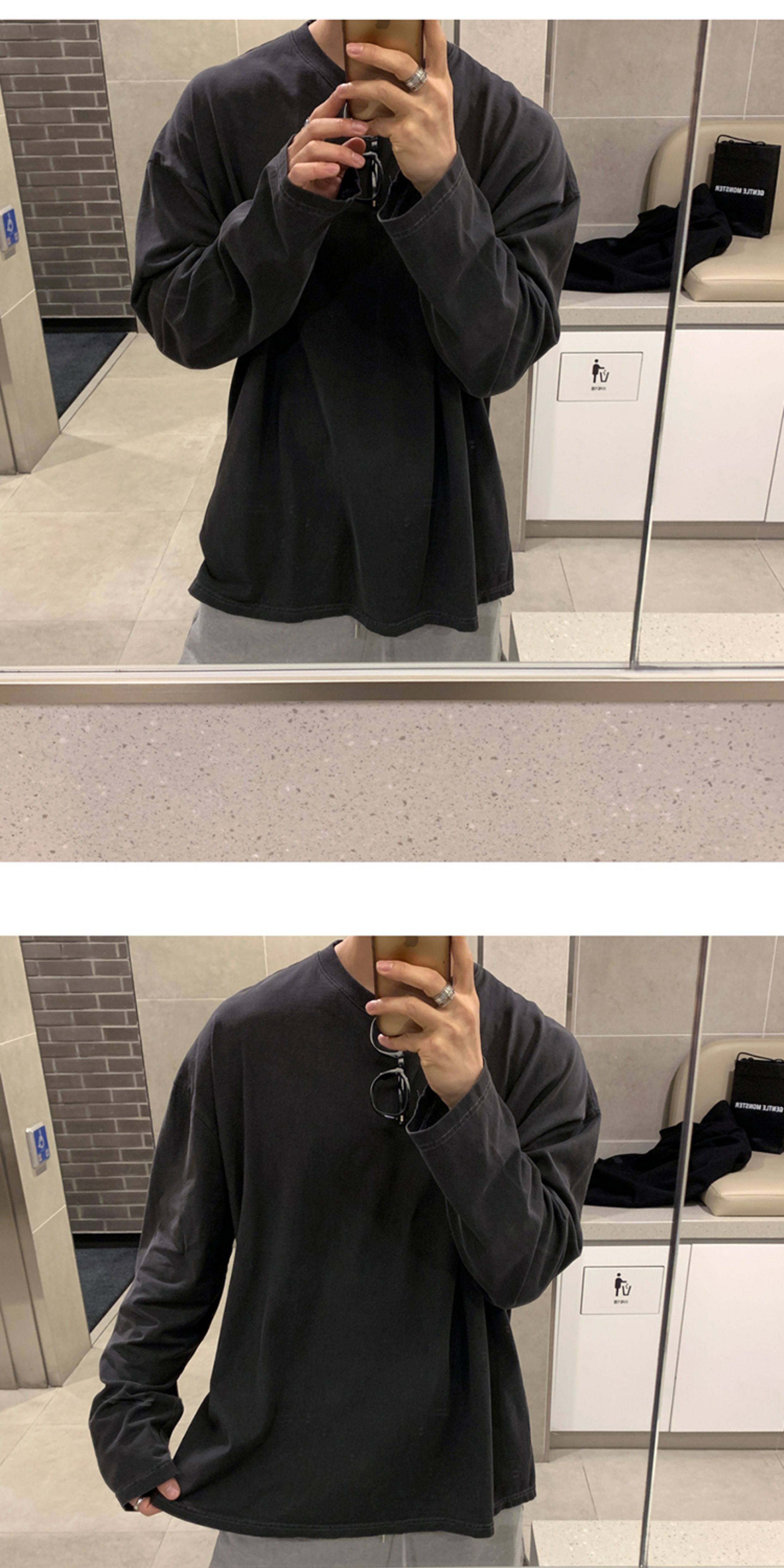 碧捨男士秋冬純色打底衫韓版潮流寬松T恤灰色做舊百搭ins休閒上衣