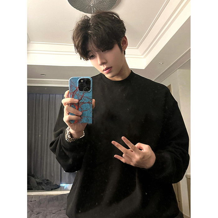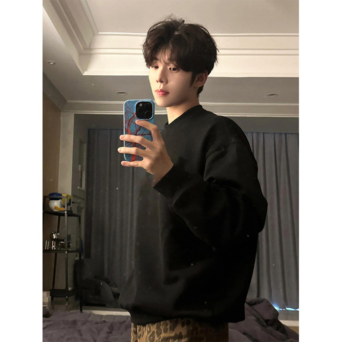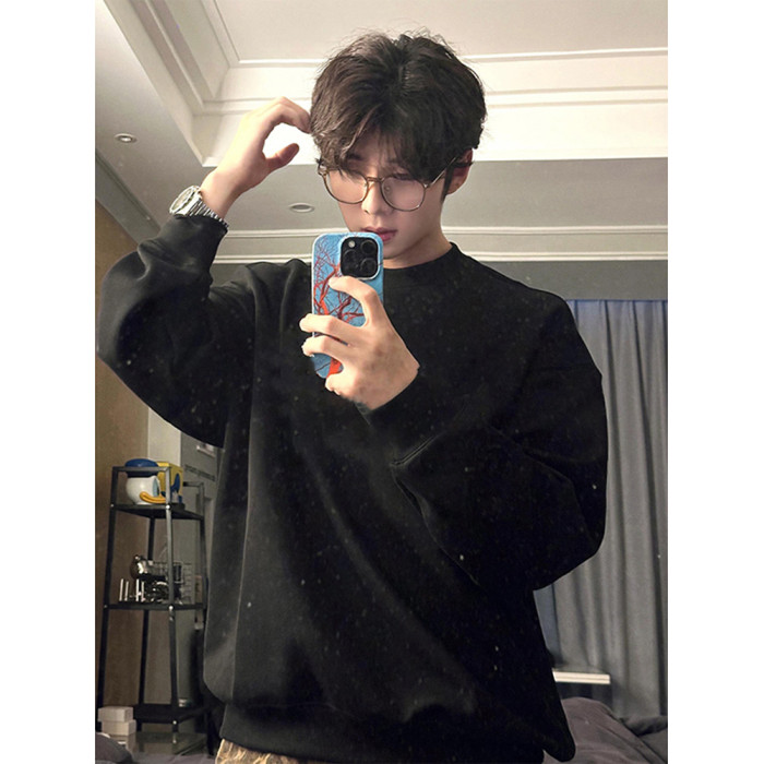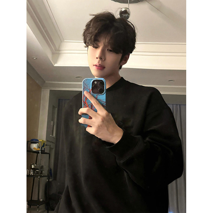 cleanfit美式重磅圓領衛衣男款秋季ootd加絨長袖t恤內搭打底上衣