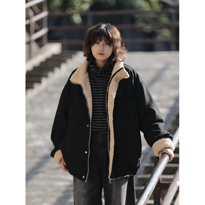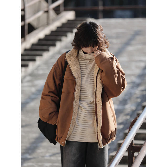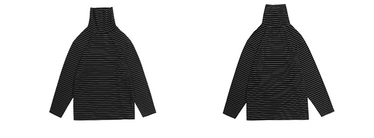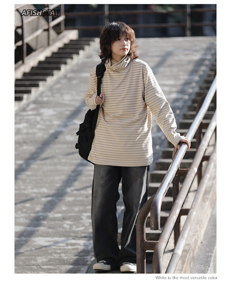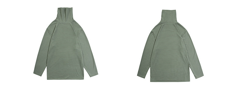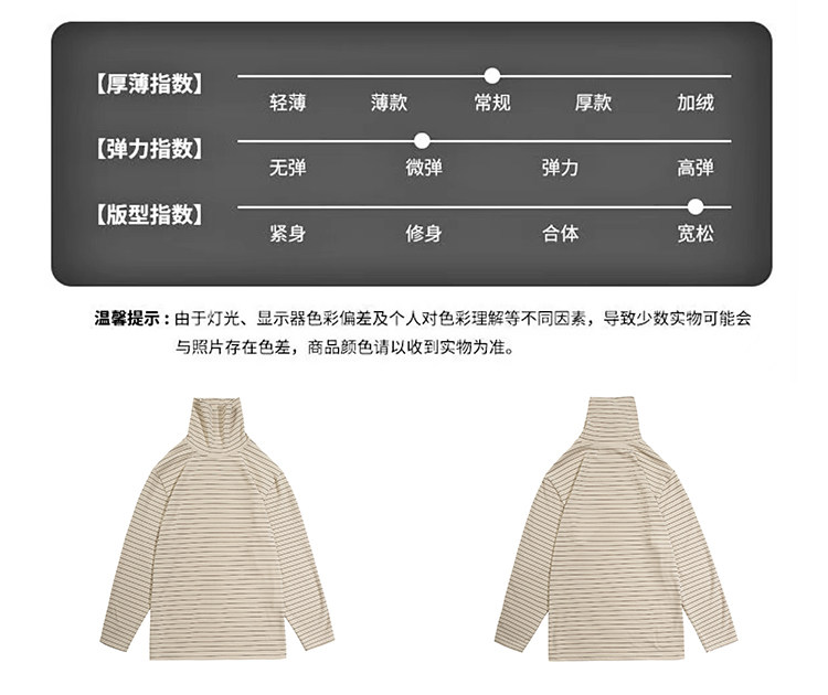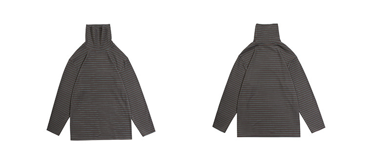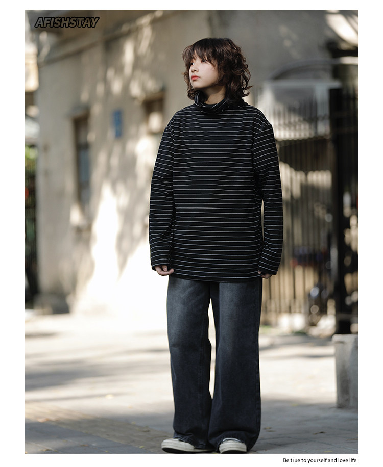 阿於呆 秋冬日系復古條紋高領打底衫男德絨內搭保暖堆堆領長袖T恤