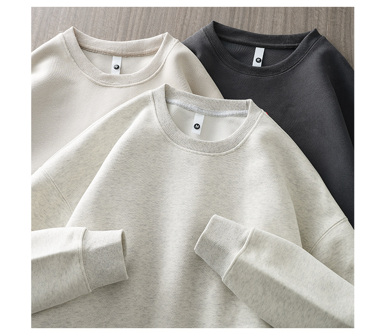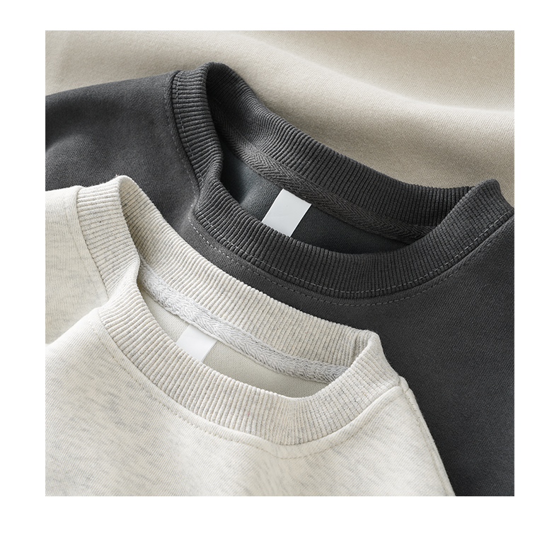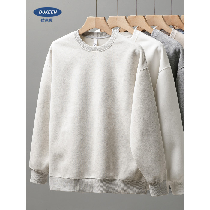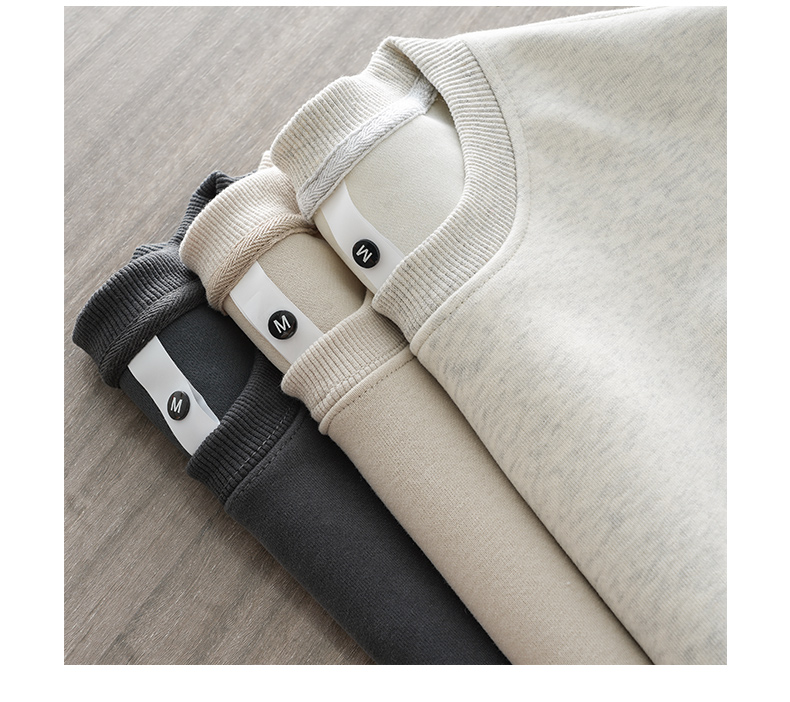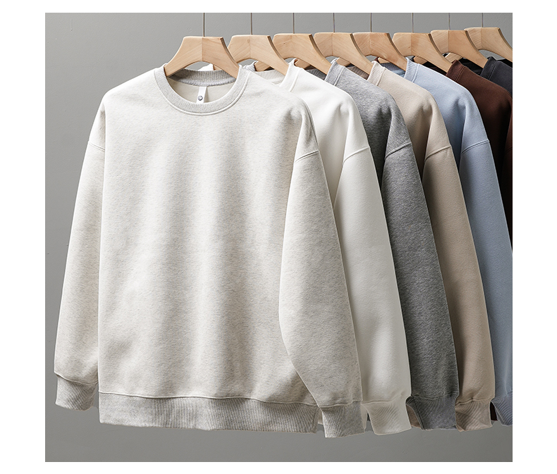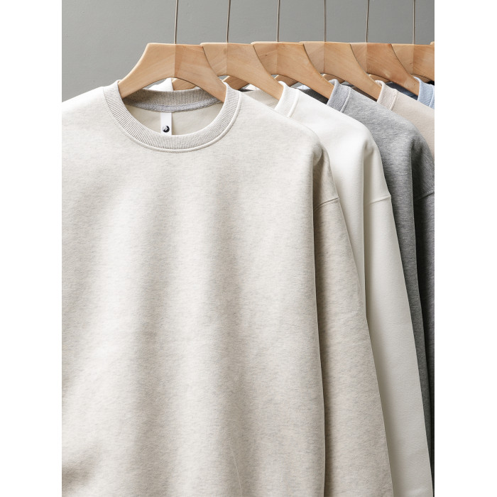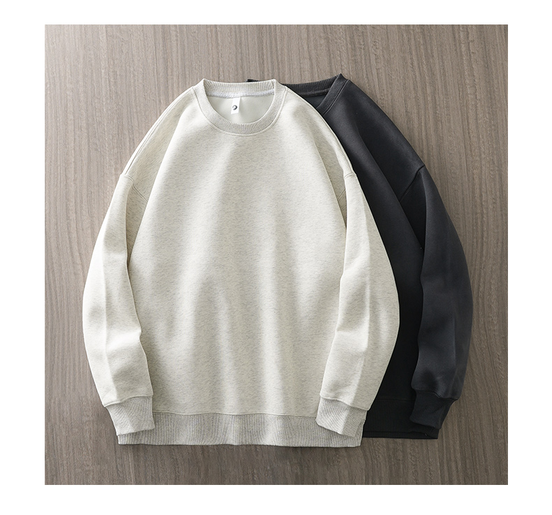 460G重磅加絨衛衣男2025秋冬款美式寬松純色圓領打底衫長袖外套潮